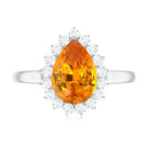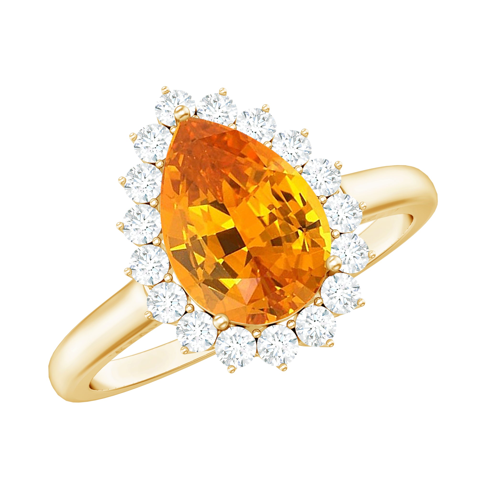 Pear Cut Created Orange Sapphire and Diamond Halo Engagement Ring