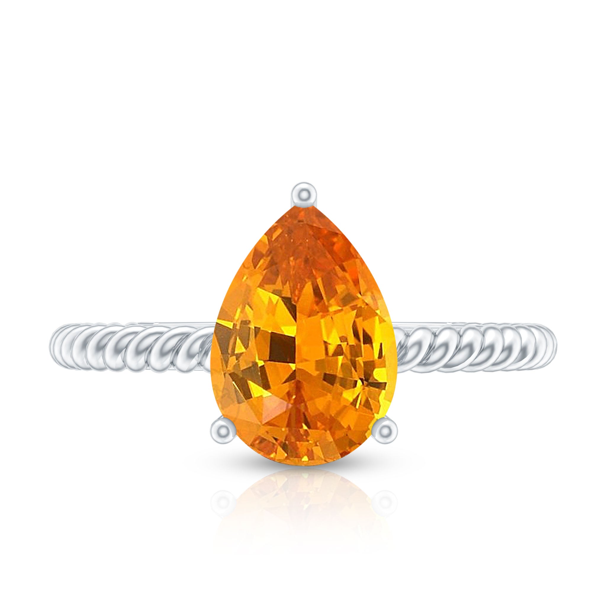 Pear Cut Created Orange Sapphire Solitaire Engagement Ring