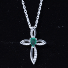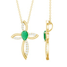 Pear Cut Emerald Cross Pendant With Lab Grown Diamond