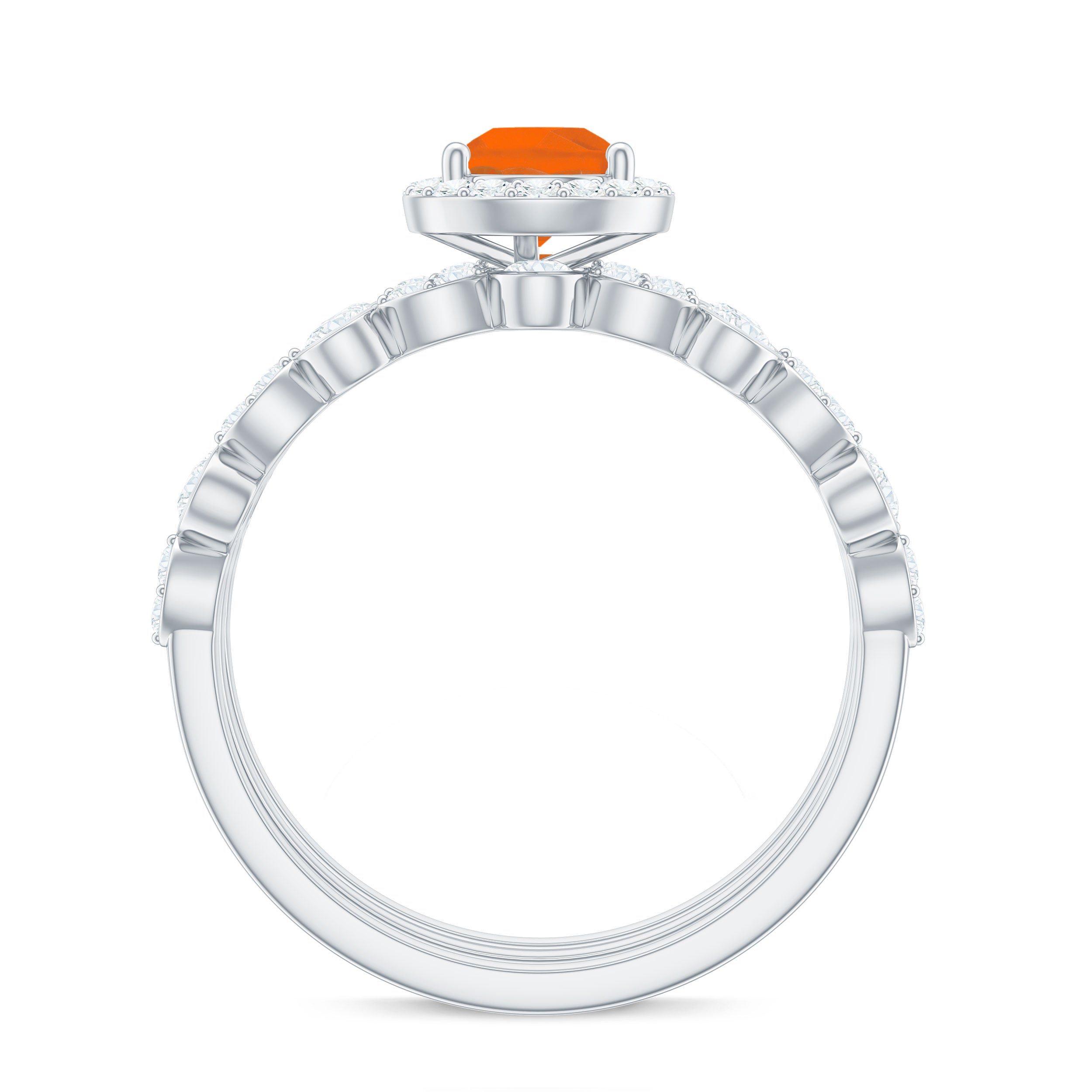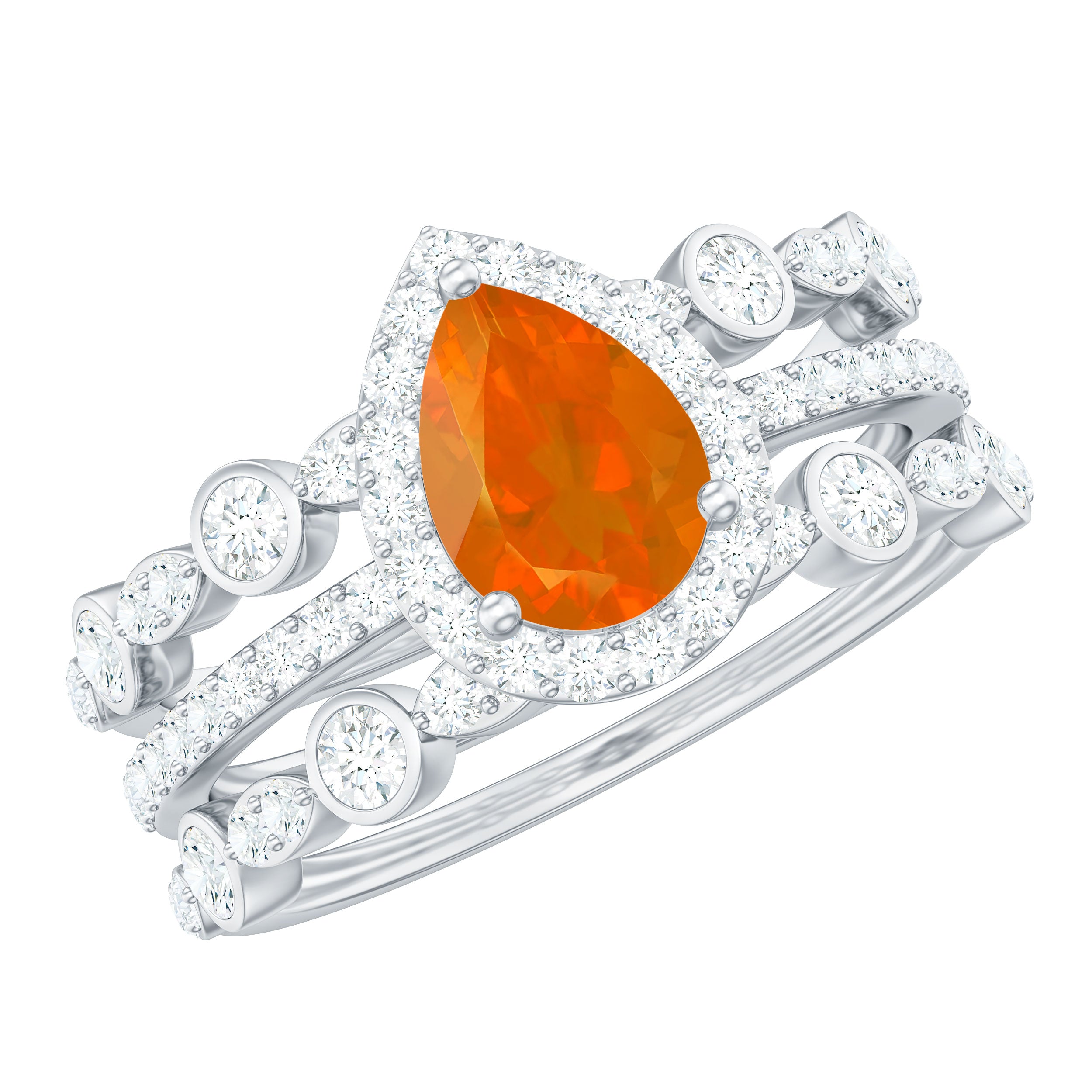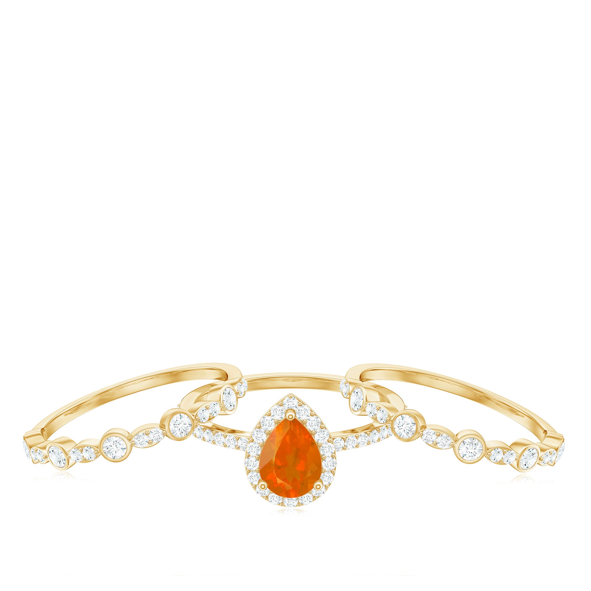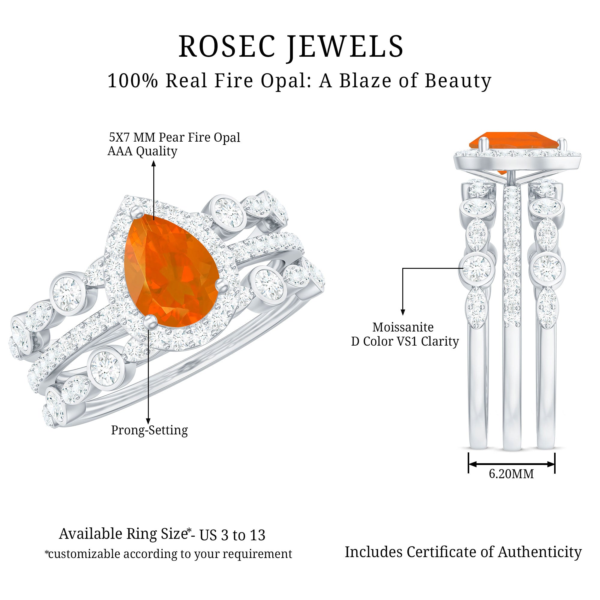 Pear Cut Fire Opal Bridal Trio Ring Set with Moissanite Band
