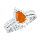 Pear Cut Fire Opal Trio Wedding Ring Set with Moissanite