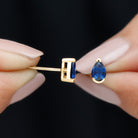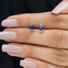 Pear Cut Lab Grown Blue Sapphire Solitaire Stud Earrings