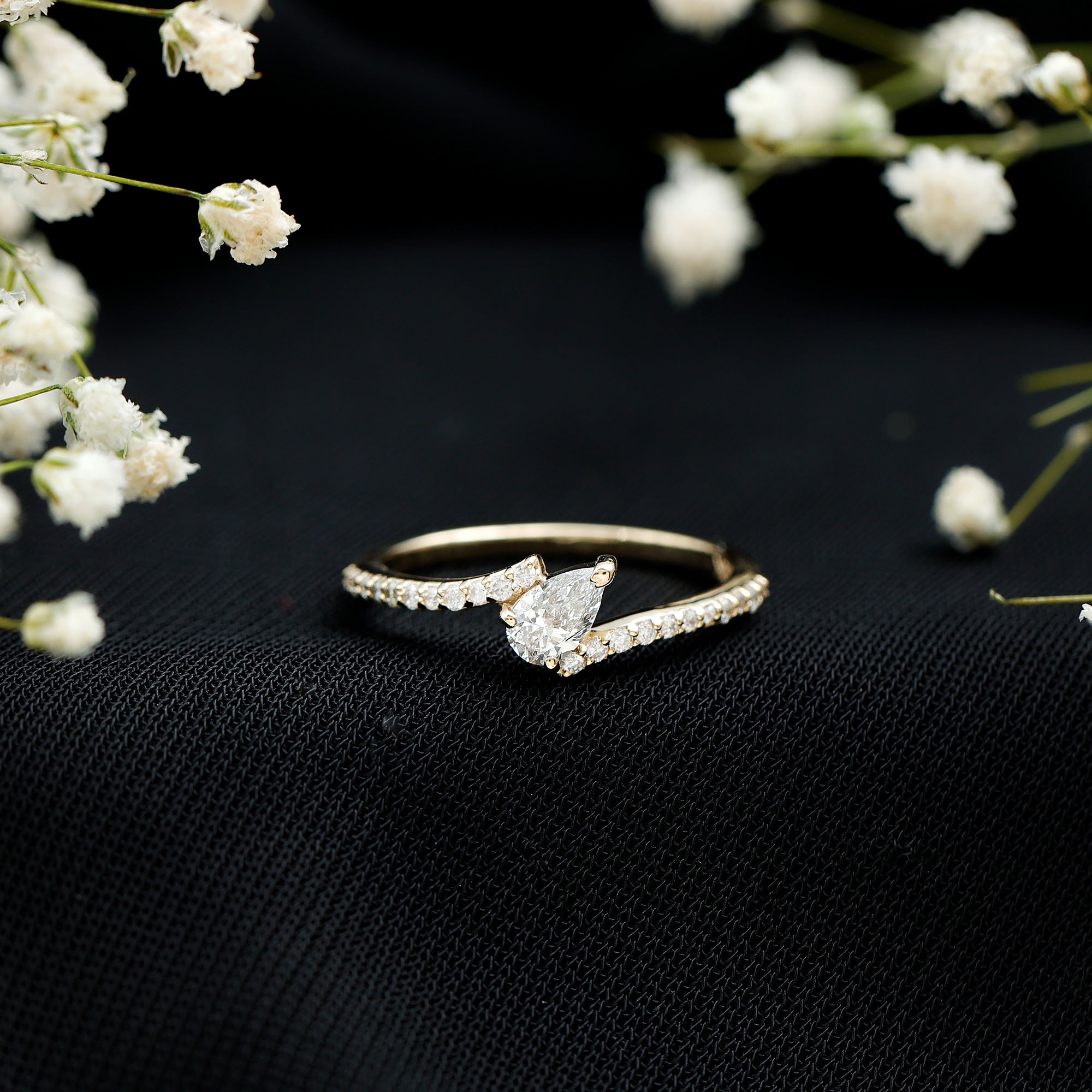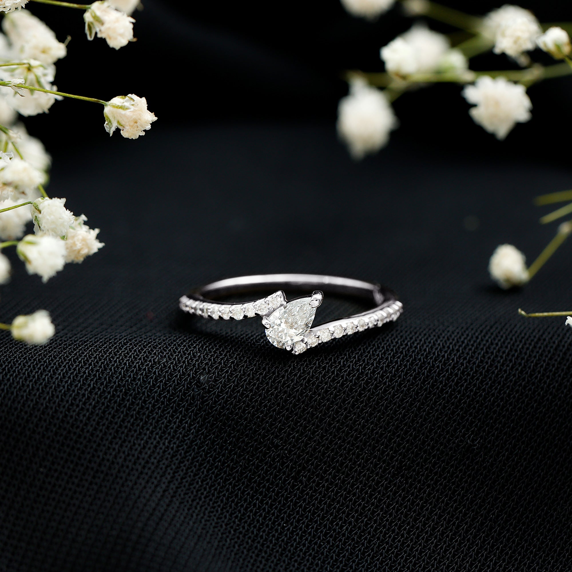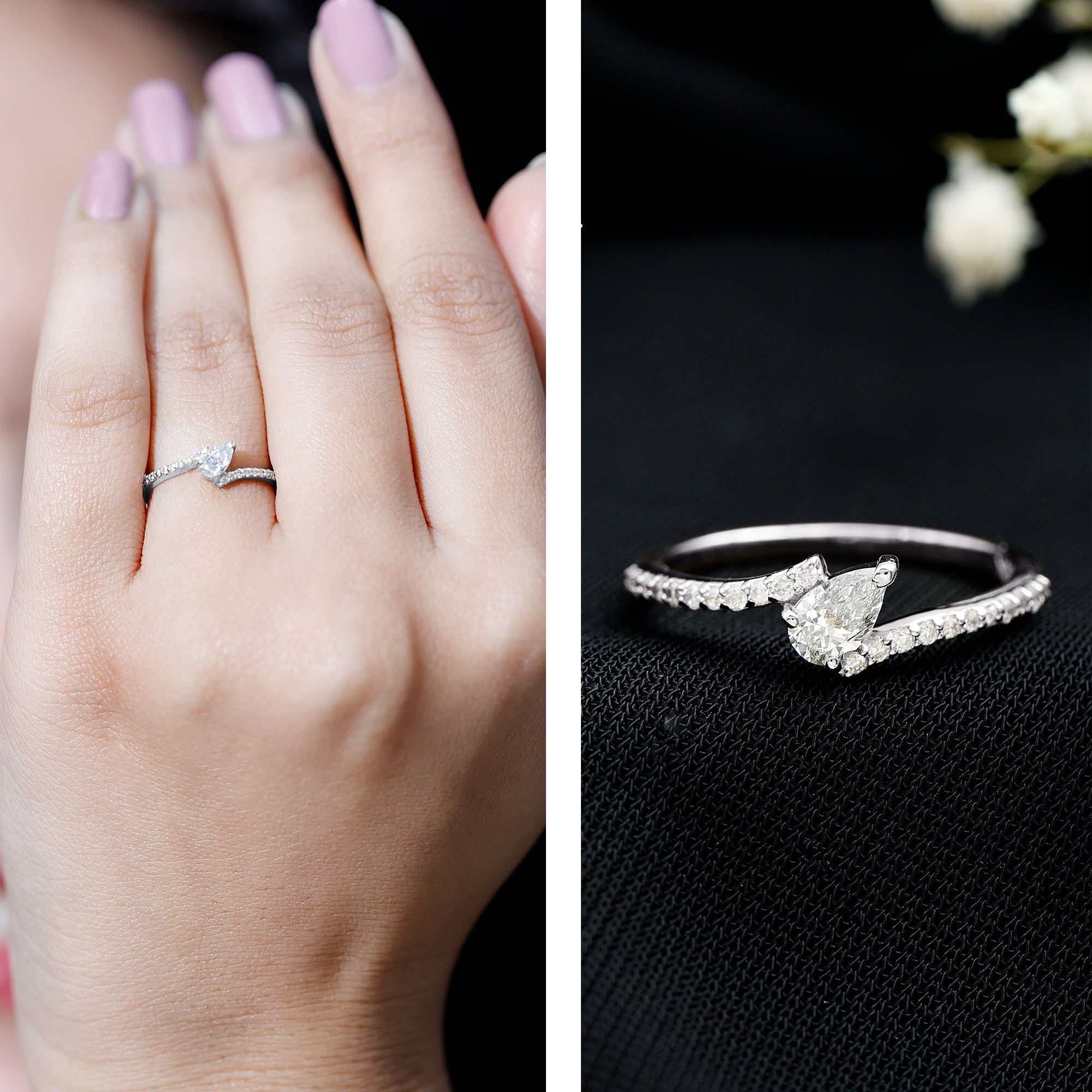 This stunning Pear Shaped Promise Ring beautifully combines classic design with a growing commitment. Show your deepening love with this Diamond Promise Ring for Her, which features a simple yet lasting design, gracefully complemented by a unique diamond-studded bypass shank that symbolizes the wonderful journey of two souls coming together. This delightful Commitment Ring showcases a 3X5 MM pear cut lab-grown diamond set in prong setting at a slightly tilted angle. Emphasizing the clarity and brilliant cut of an EF-VS Quality Lab Grown Diamond, it truly shines with stunning beauty, making it ideal for an unconventional romance. Celebrate your commitment with this Diamond Bypass Ring, whose elegant design draws attention while keeping a subtle and enchanting glow. This beautiful Lab Grown Diamond Ring will elevate any outfit, adding a touch of sophisticated shine and elegance. Additionally, it is available in various metal colors and purity options, allowing you to choose what best suits your style.