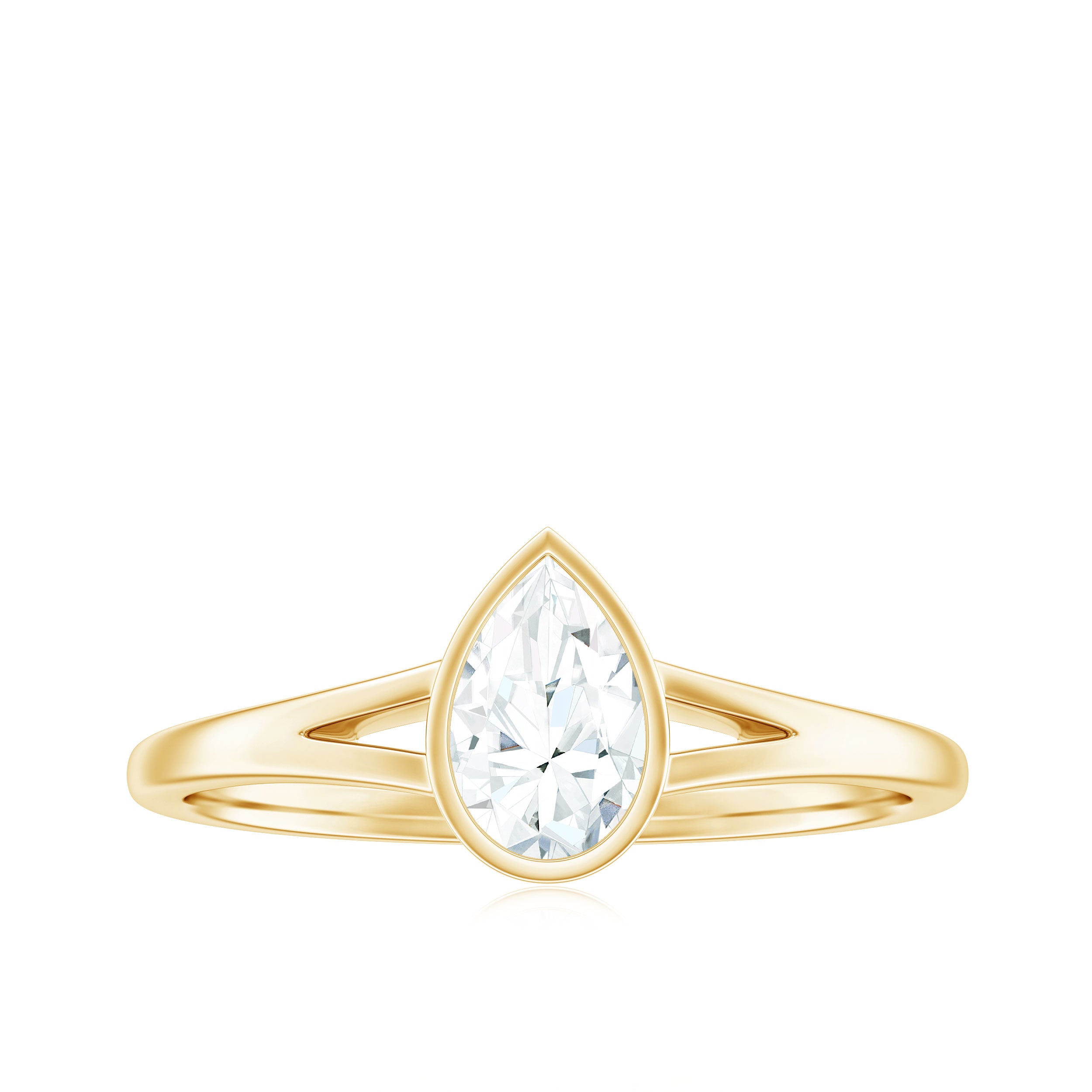 Create a lasting memory with this captivating Solitaire Ring, destined to make her day truly special. It boasts a Pear Cut Lab Grown Diamond elegantly nestled within a secure bezel setting, while the Split Shank design adds a unique touch to this timeless piece, symbolizing your special connection.
