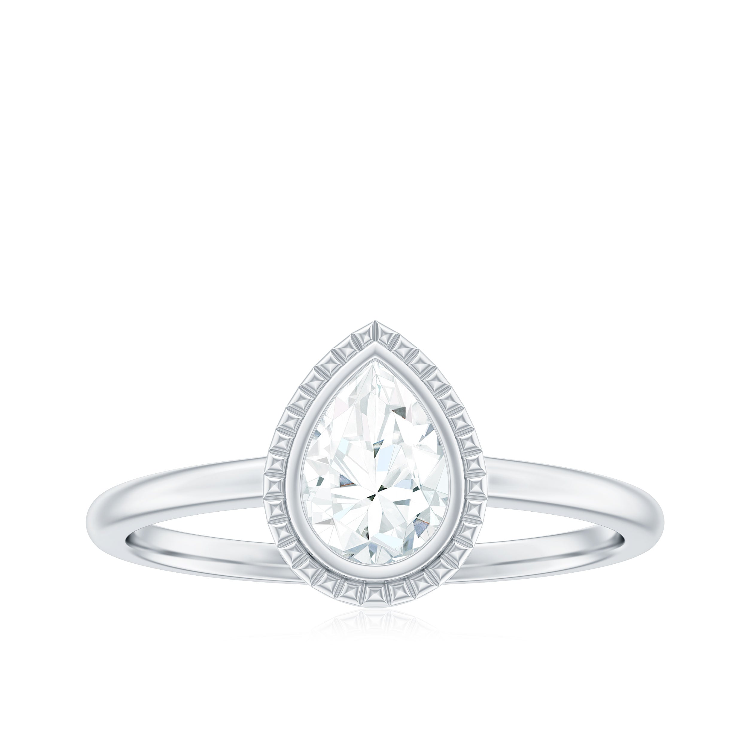 Pear Cut Lab Grown Diamond Solitaire Ring with Engraved Details
