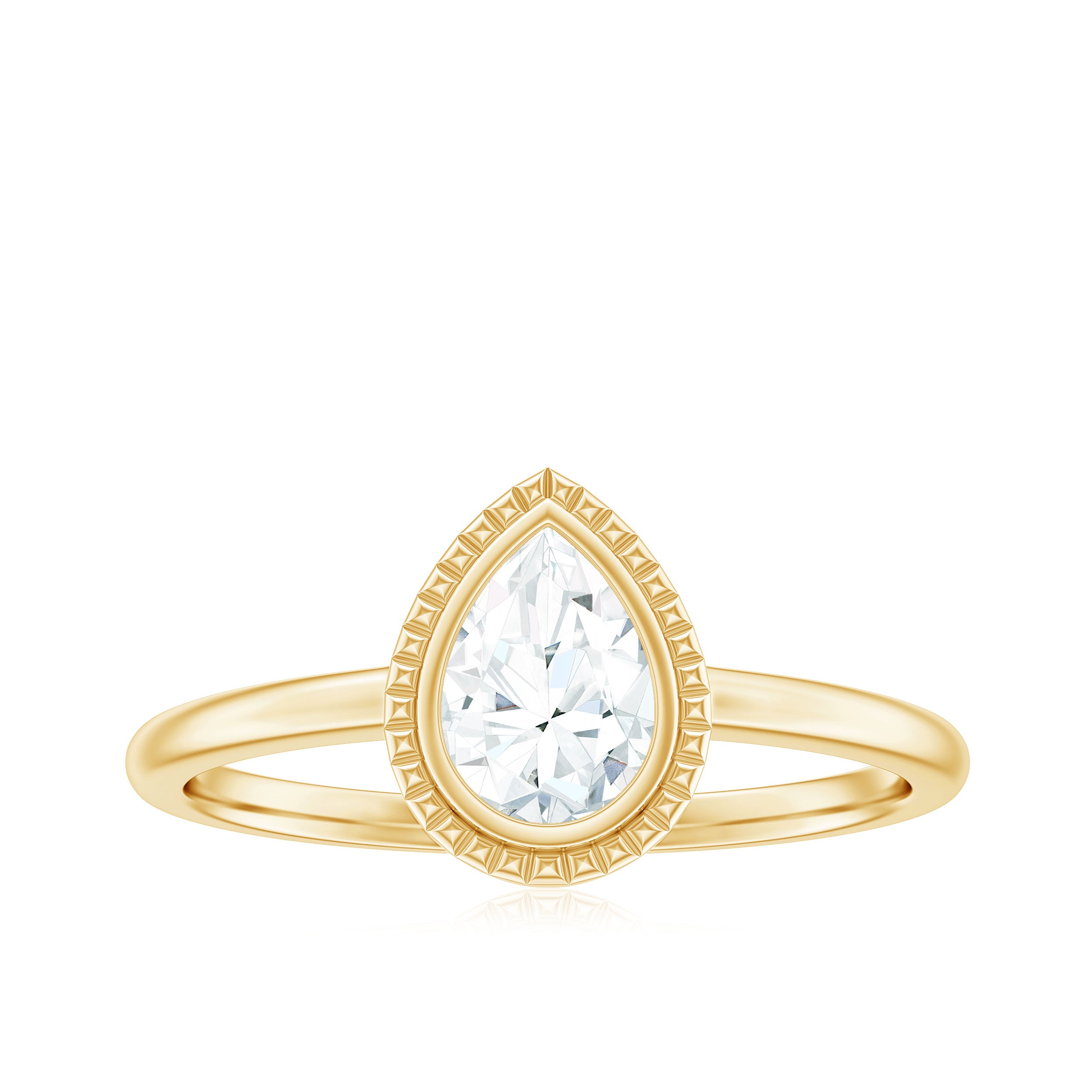 Jewelry has the power to be the one little thing that makes you feel unique. This enchanting Solitaire Ring, showcasing a Pear Cut Lab Grown Diamond securely cradled within a bezel setting. What truly distinguishes this promise ring is the intricate engraved detailing that gracefully encircles the created diamond, infusing the design with a touch of intricate artistry that beautifully symbolizes the depth of your affection and commitment.