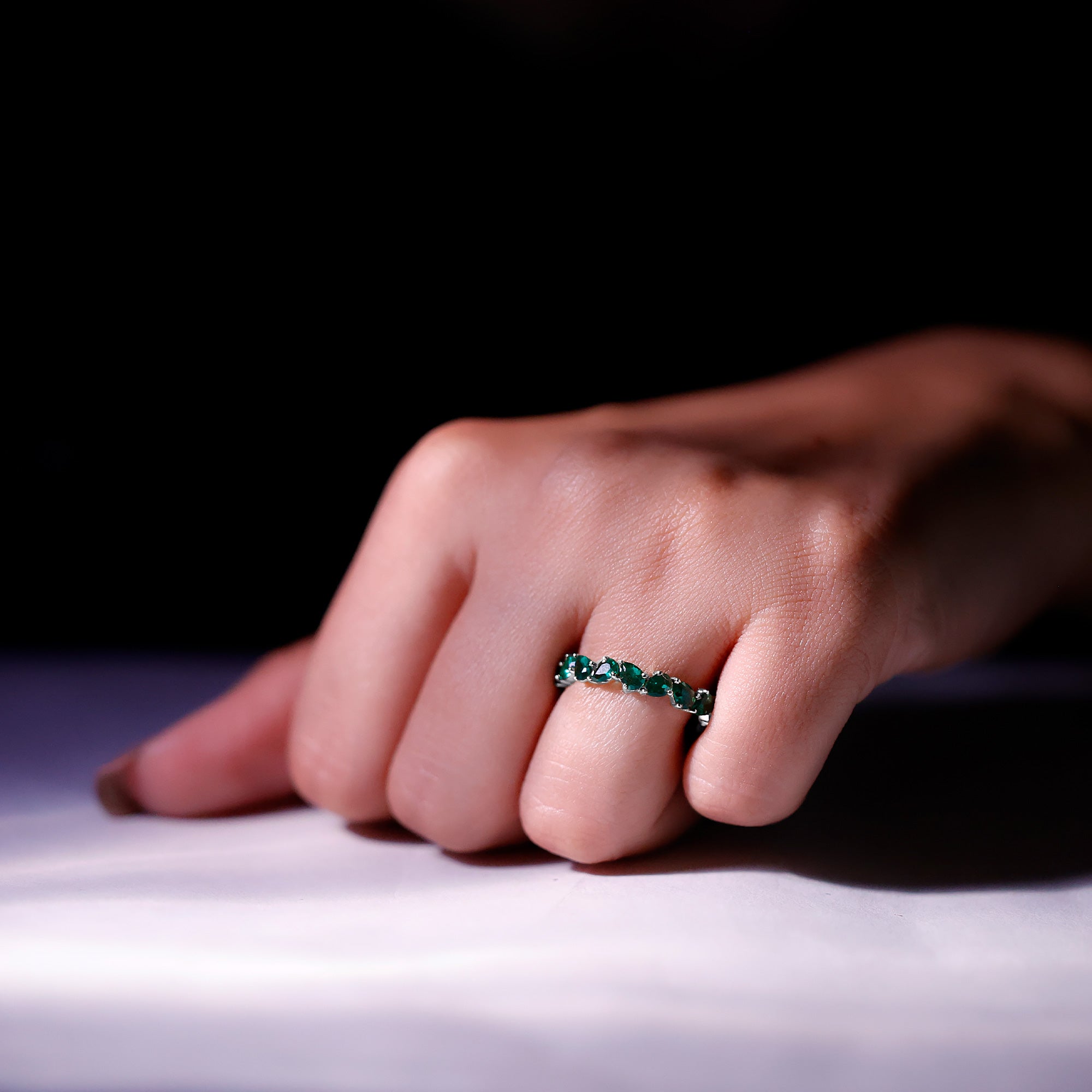 A gentle wave of green beauty shines from this Lab Created Emerald Eternity Ring, catching the eye with its calm and elegant glow. It features a full circle of 3X4 MM pear shaped lab created emeralds, each set securely in claw setting. The smooth band fits comfortably on the finger, making it easy to enjoy all day long. Whether worn alone or paired with other rings, it brings graceful beauty to any hand and makes even simple moments feel a little more special. This Emerald Wedding Band is a lovely choice for celebrating love, marking a personal moment, or surprising someone with a thoughtful gift. The circle of emeralds represents steady connection and lasting feelings, making it a meaningful piece for many occasions. Crafted with AAAA quality lab created emeralds and fine metal, this Wedding Stackable Ring is made to last. Lightweight, elegant, and full of charm, this Full Eternity Ring is perfect for anyone who enjoys jewelry that feels simple yet wonderfully eye-catching.