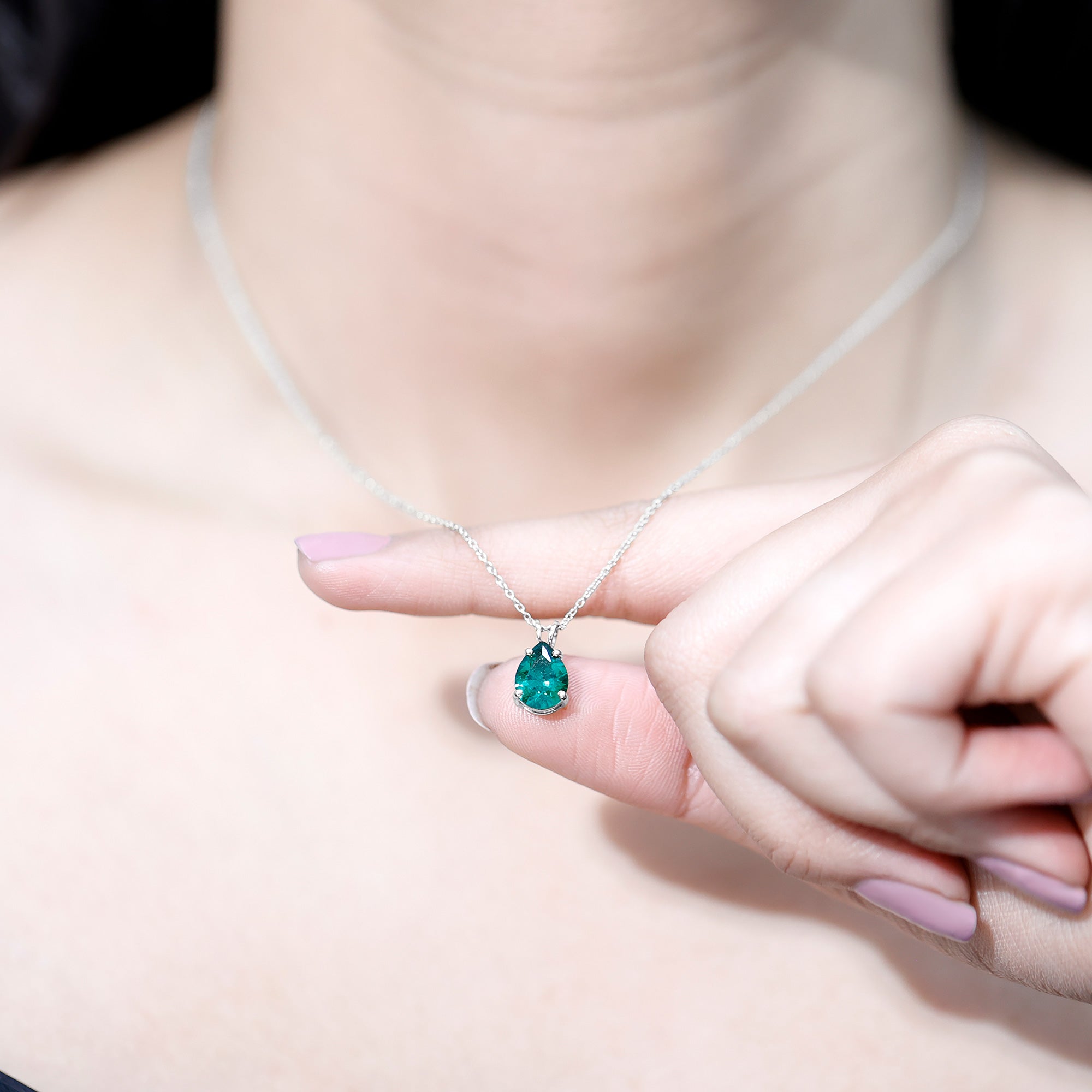 Lights seem to shine a little brighter when this Lab Grown Emerald Necklace rests against the skin, creating a glow that feels both gentle and unforgettable. At the center of this beautiful piece is a 7X9 MM pear shaped lab grown emerald, chosen for its rich color and AAAA quality. The pear shape adds an elegant drop that naturally draws the eye, while the secure prong setting keeps the stone steady and lets it sparkle with ease. The Teardrop Pendant hangs from a well-crafted chain that feels comfortable for all-day wear. Simple yet full of charm, this piece blends classic beauty with modern style, making it easy to pair with many different outfits. The Pear Shaped Necklace moves gently with each step, catching light from different angles and creating a soft sparkle. Its thoughtful design makes it a piece that can be worn again and again, treasured for years to come. Packed carefully in a lovely box, it is ready to be given as a gift or kept as a personal keepsake that marks a special memory.