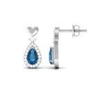 Pear Cut London Blue Topaz Bridal Drop Earrings with Diamond Halo