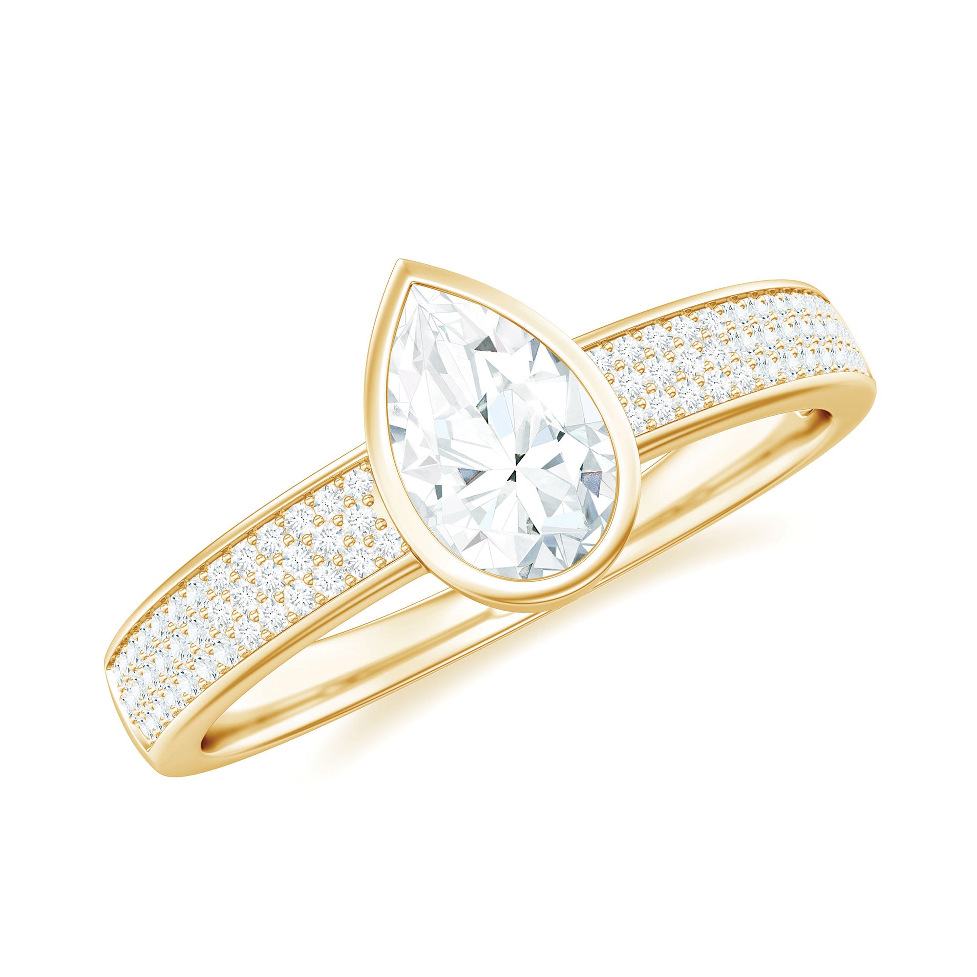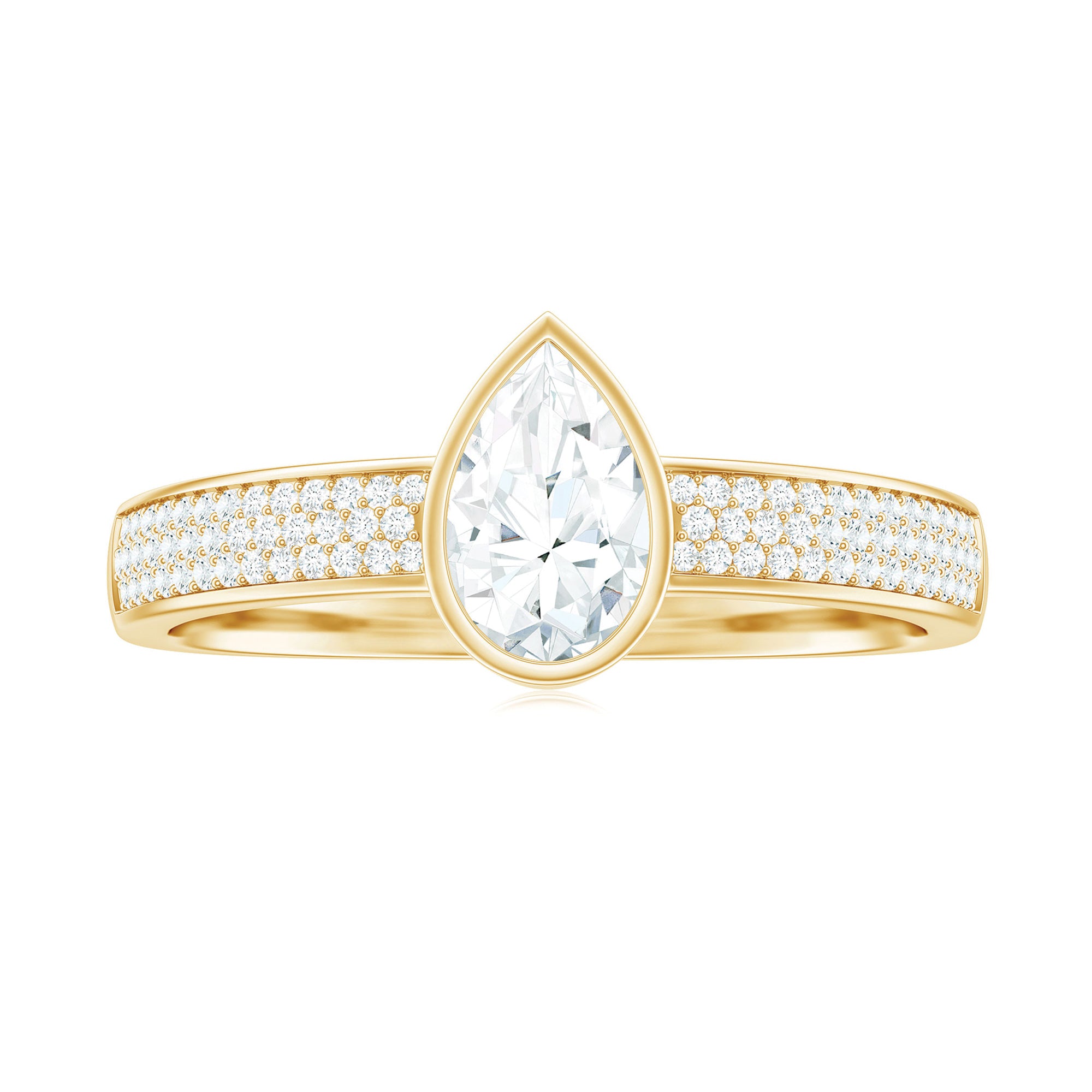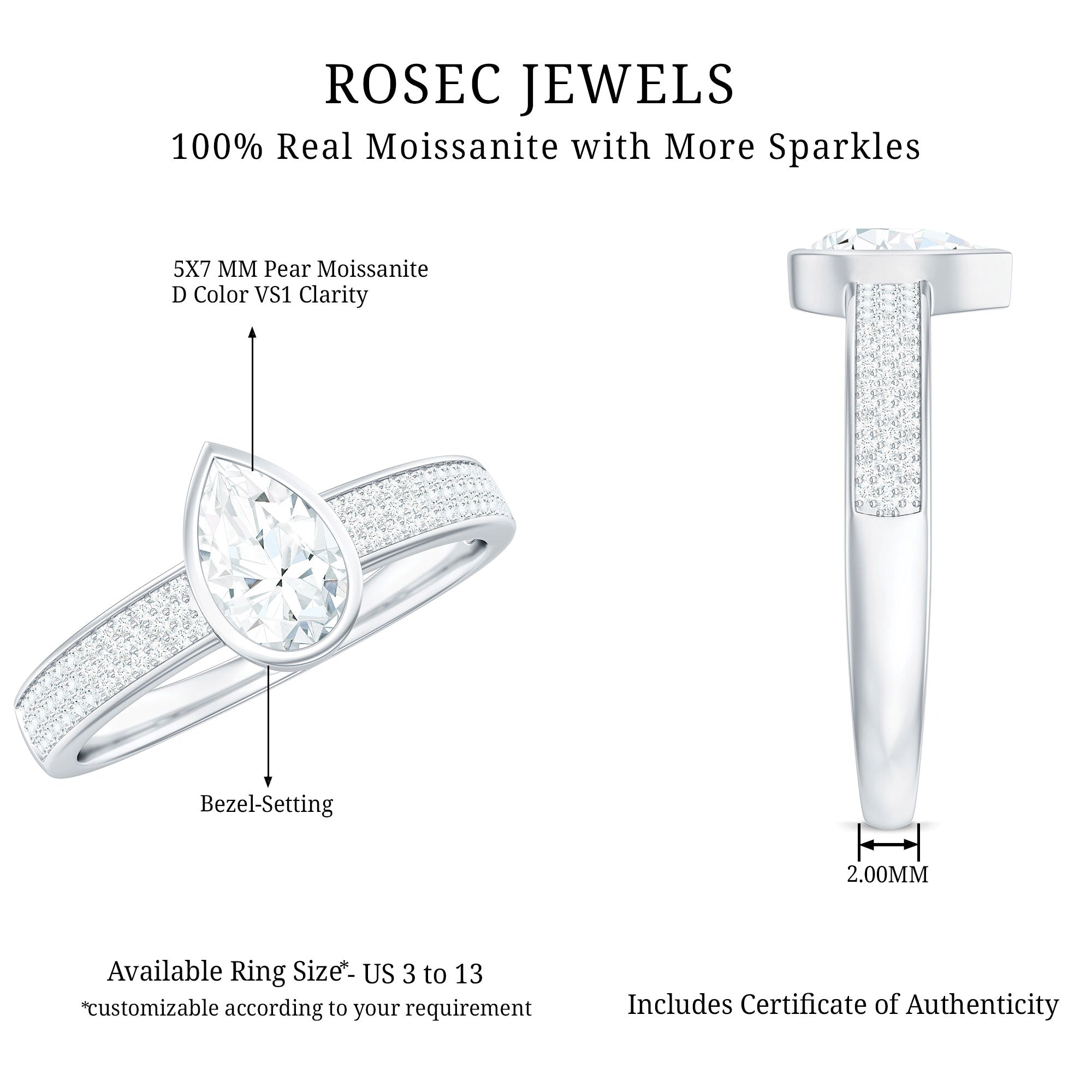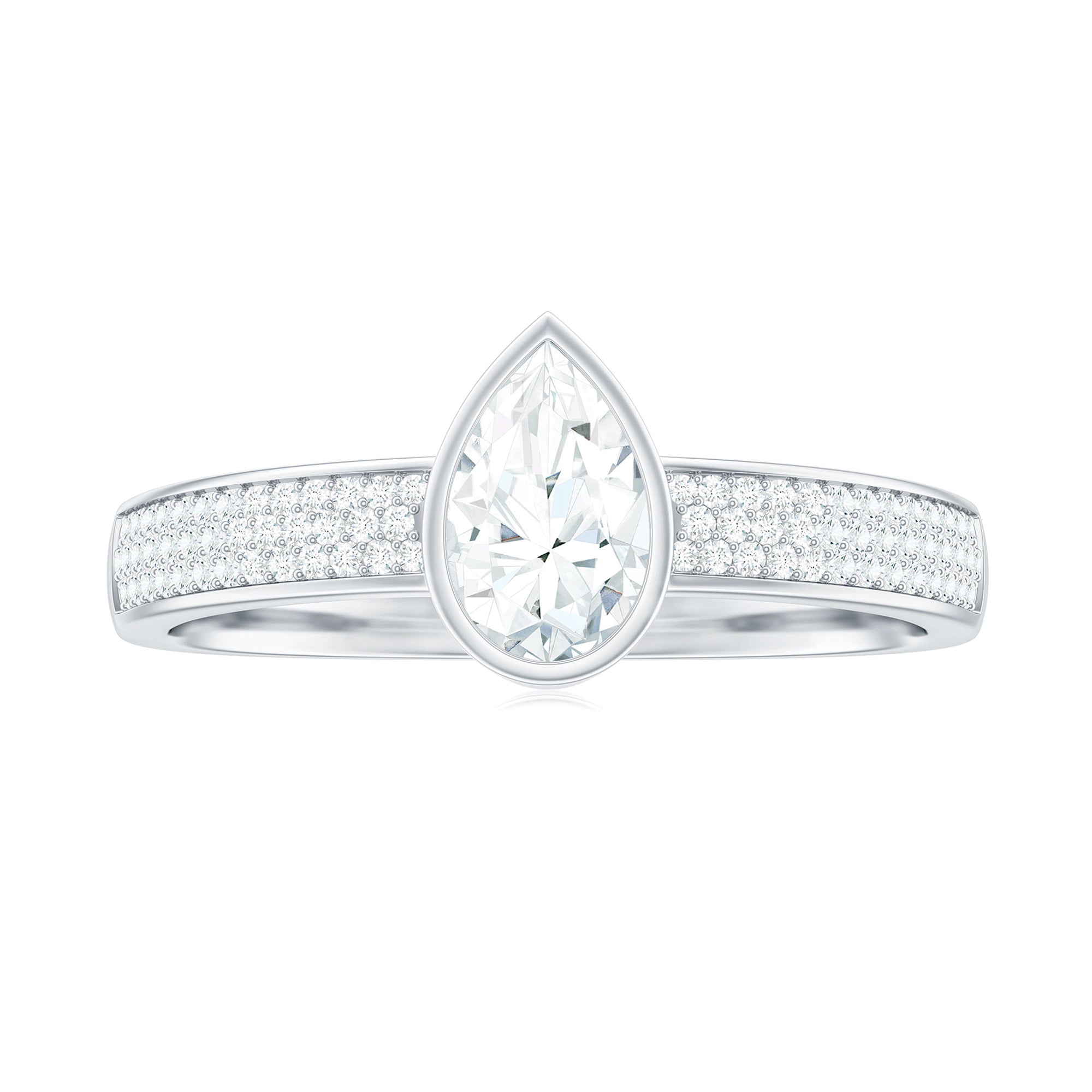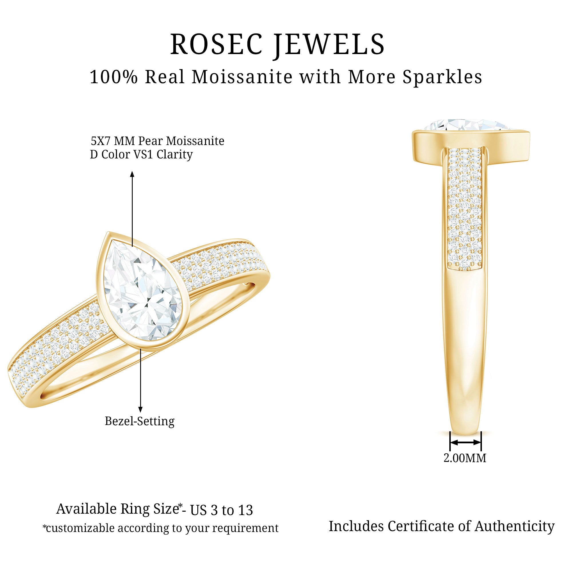 Pear Cut Moissanite Bezel Set Engagement Ring With Side Stones