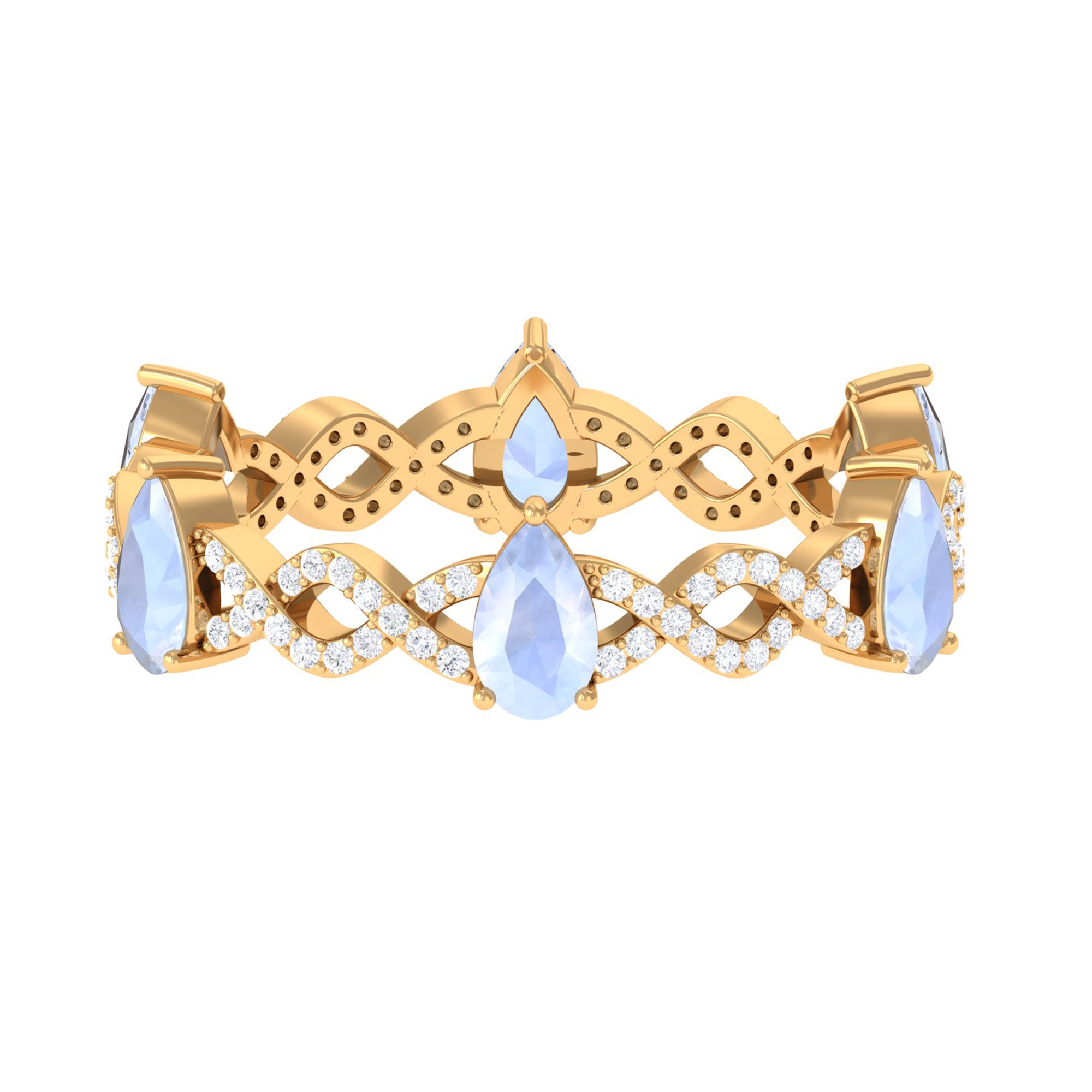 Radiate elegance with this Pear Cut Moonstone and Diamond Crossover Eternity Ring, a captivating blend of sophistication and celestial allure.