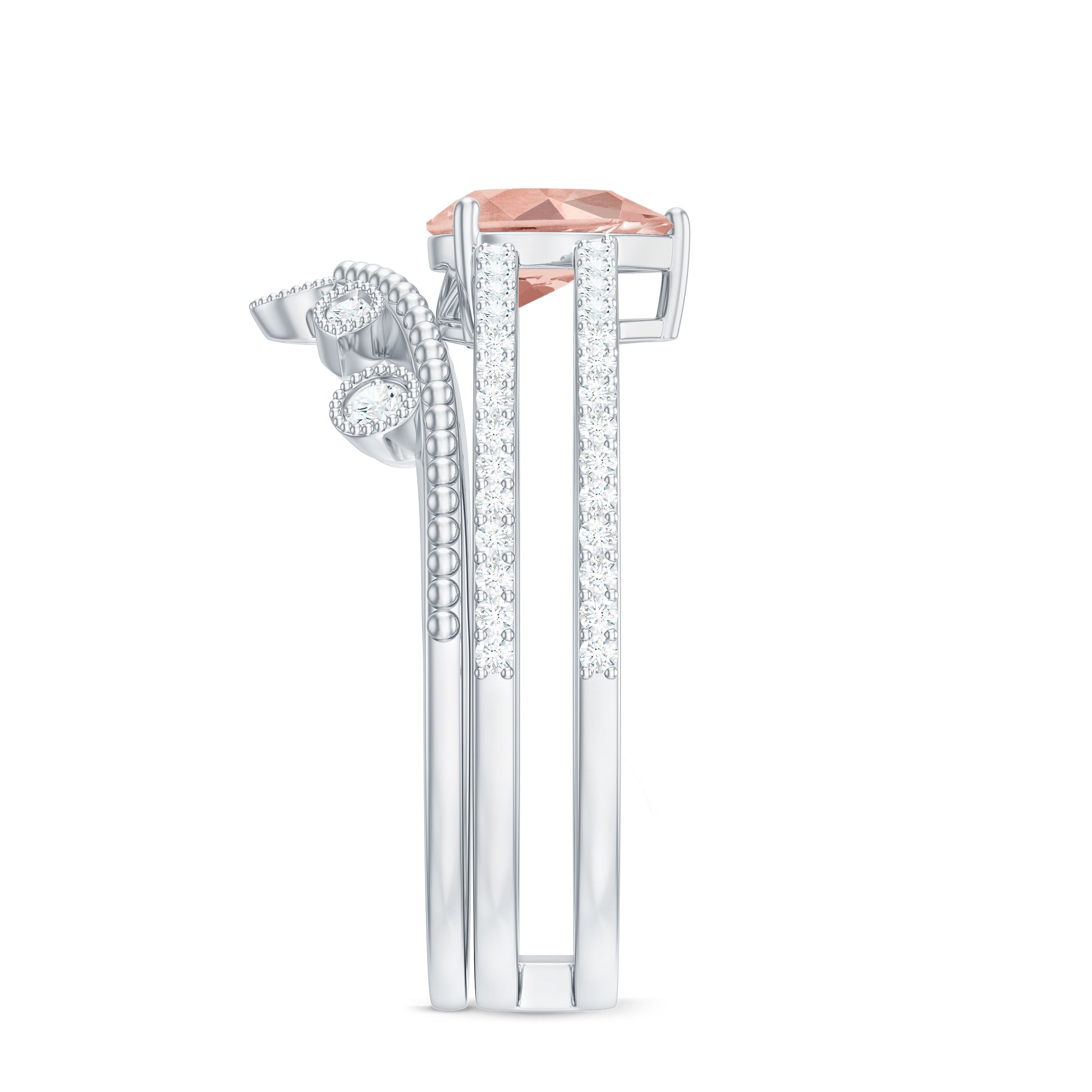 Pear Cut Natural Morganite and Diamond Wedding Ring Set