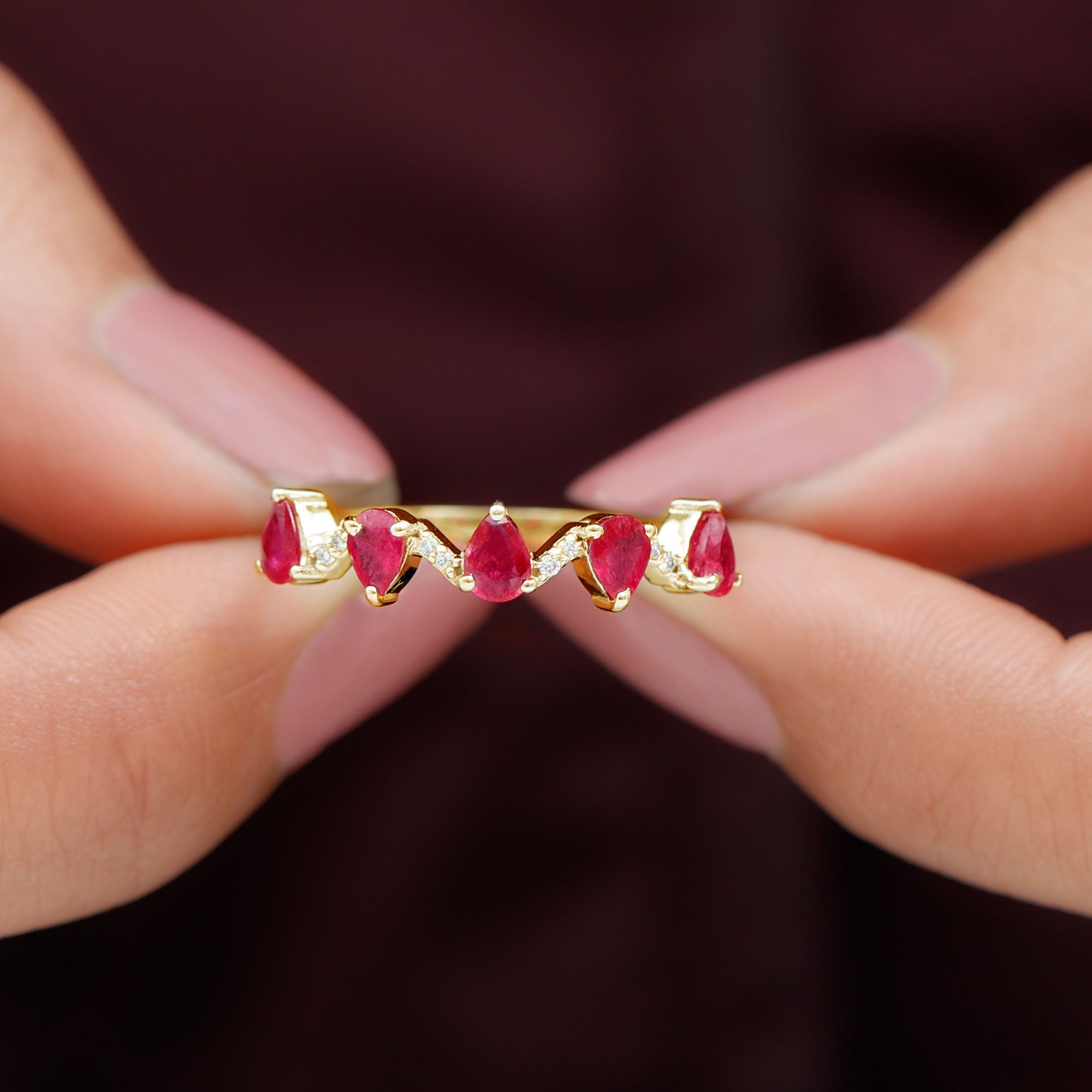 Pear Cut Natural Ruby and Diamond Half Eternity Ring