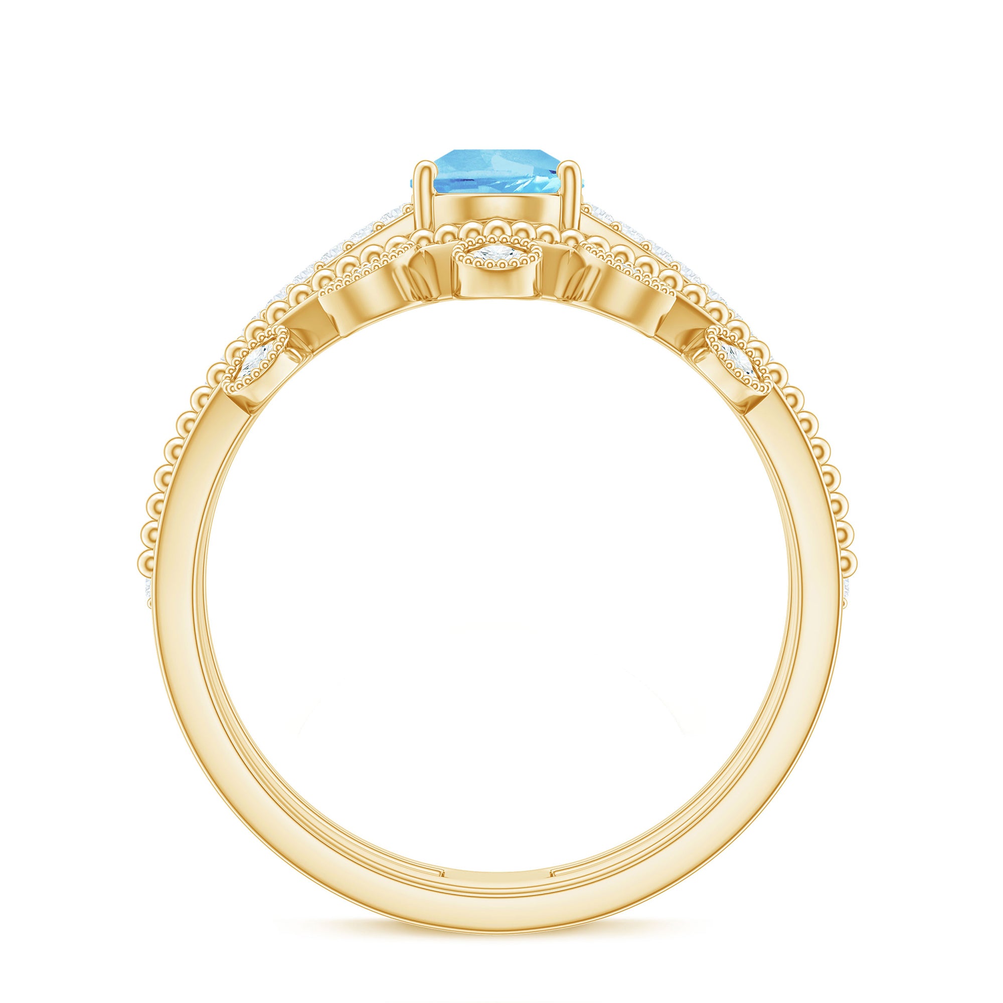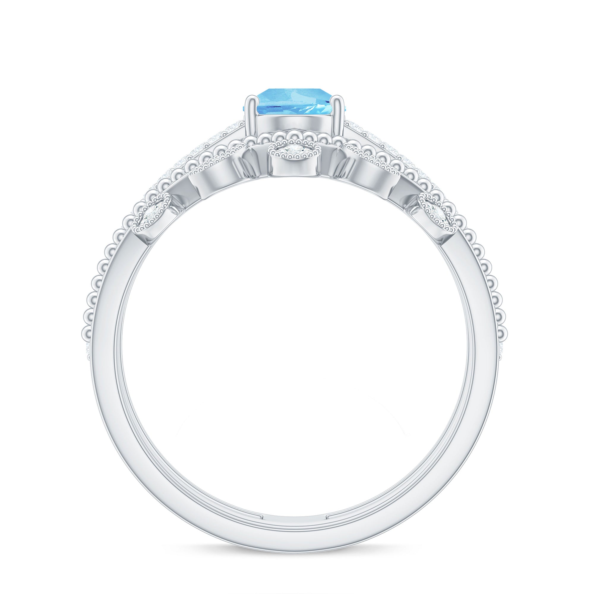 Prepare to be captivated by the mesmerizing beauty of this Bridal Ring Set. The centerpiece of this set is a stunning 6X8 MM Pear Cut Aquamarine, delicately set in a prong setting to showcase its brilliance and clarity. The solitaire ring is complemented by a Moissanite band, creating a perfect blend of uniqueness and brilliance. This ring set is a true statement of refined taste and style. Let its beauty and charm adorn your finger and leave a lasting impression on all who behold it.