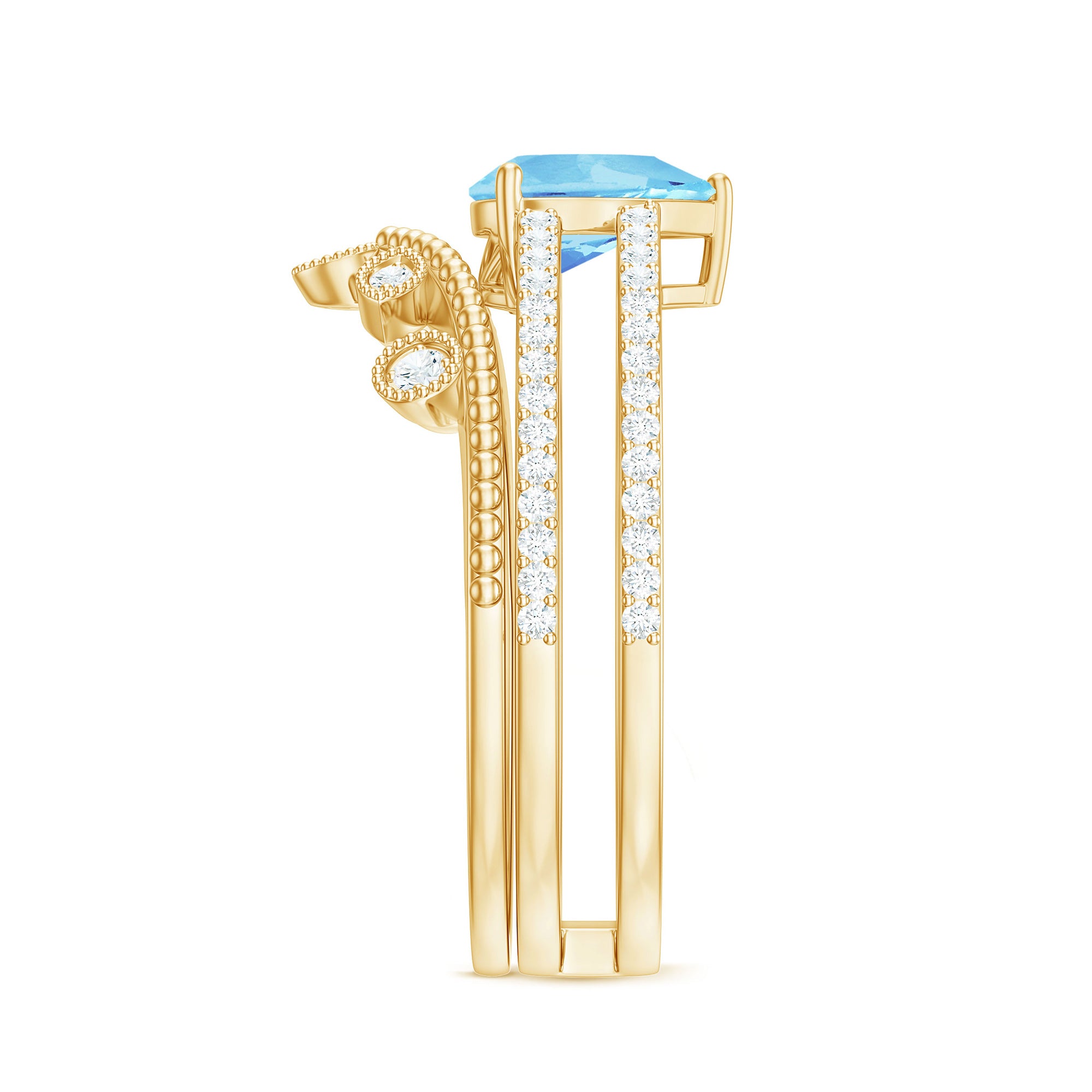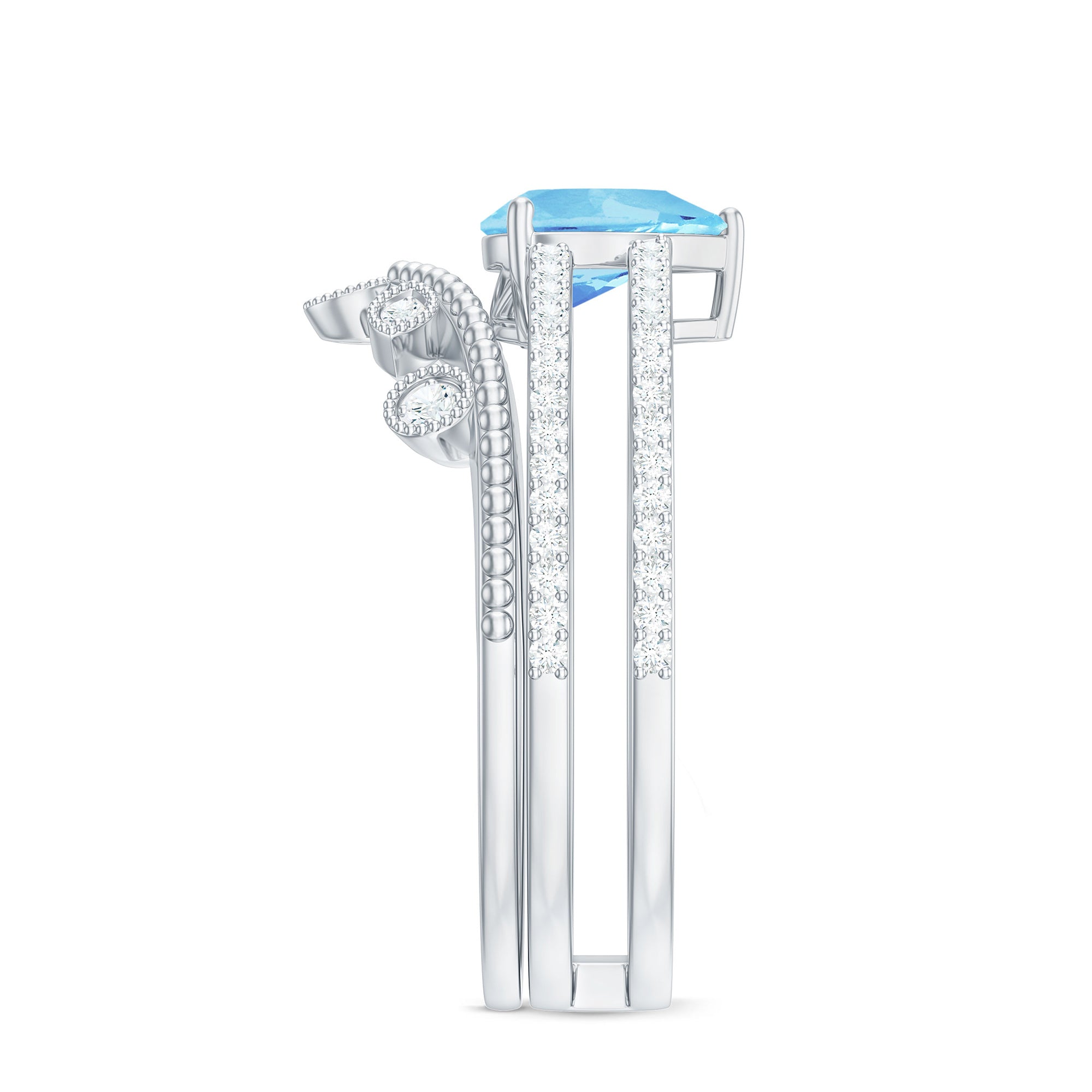 Pear Cut Real Aquamarine and Moissanite Wedding Ring Set