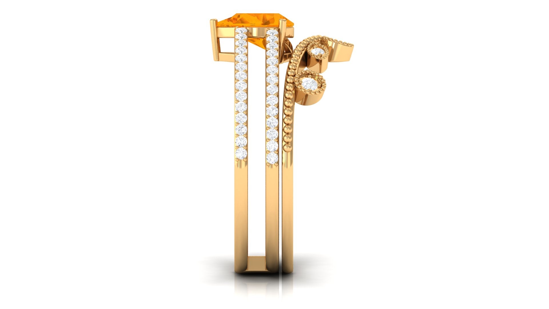 Prepare to be captivated by the mesmerizing beauty of this Bridal Ring Set. The centerpiece of this set is a stunning 5X7 MM Pear Cut Fire Opal, delicately set in a prong setting to showcase its brilliance and clarity. The solitaire ring is complemented by a Moissanite band, creating a perfect blend of uniqueness and brilliance. This ring set is a true statement of refined taste and style. Let its beauty and charm adorn your finger and leave a lasting impression on all who behold it.