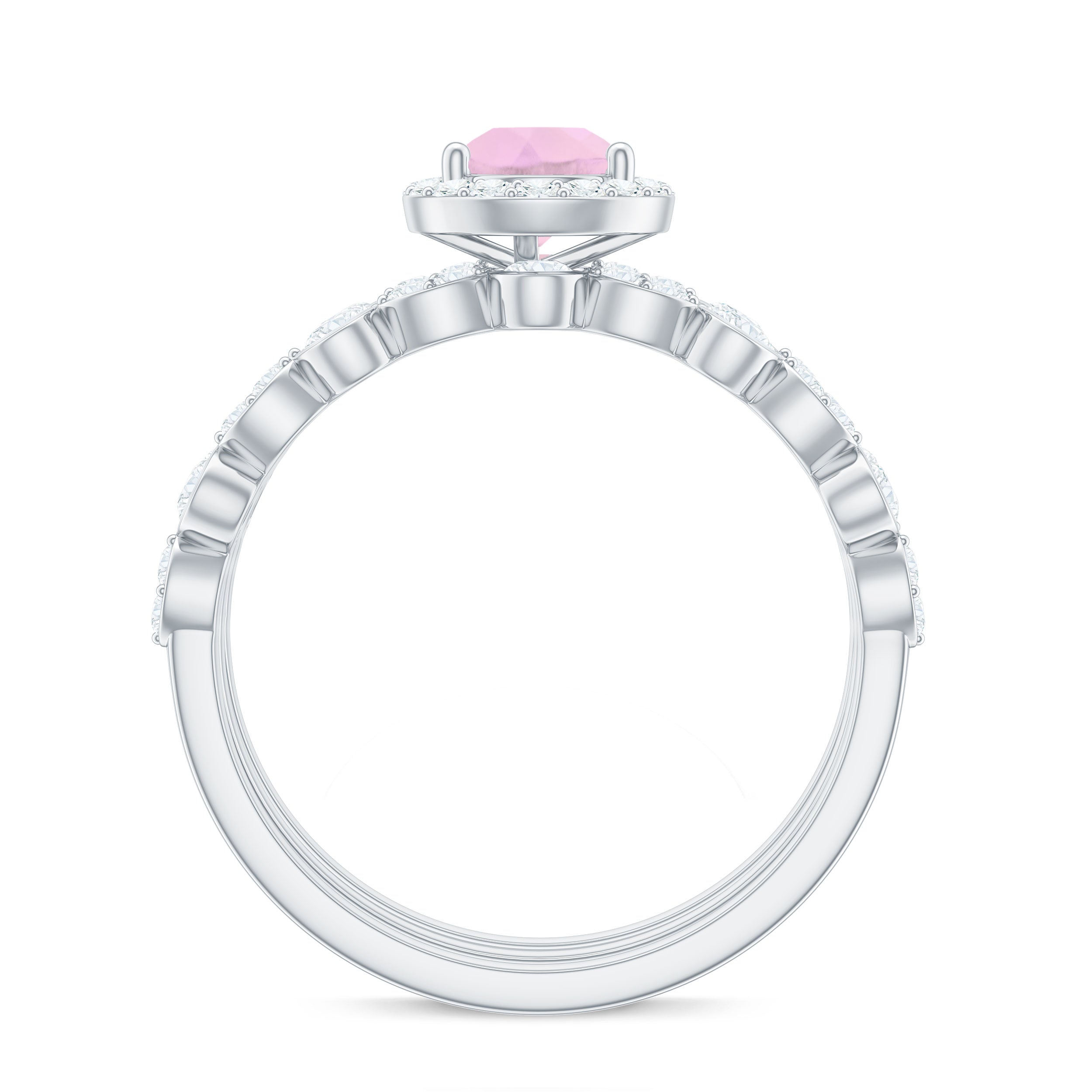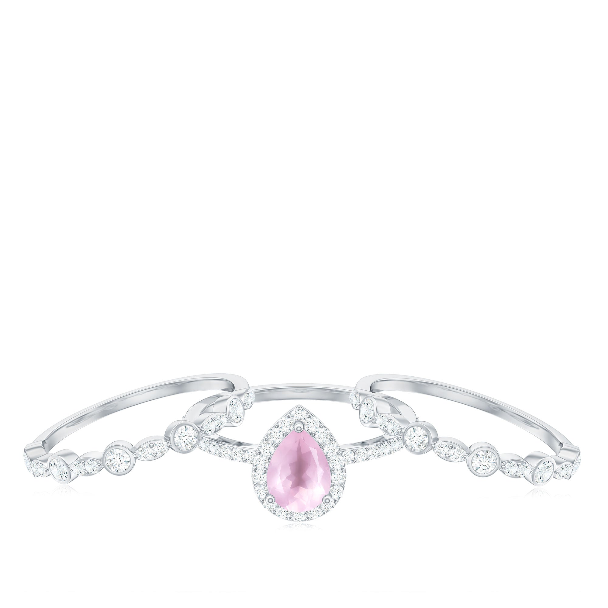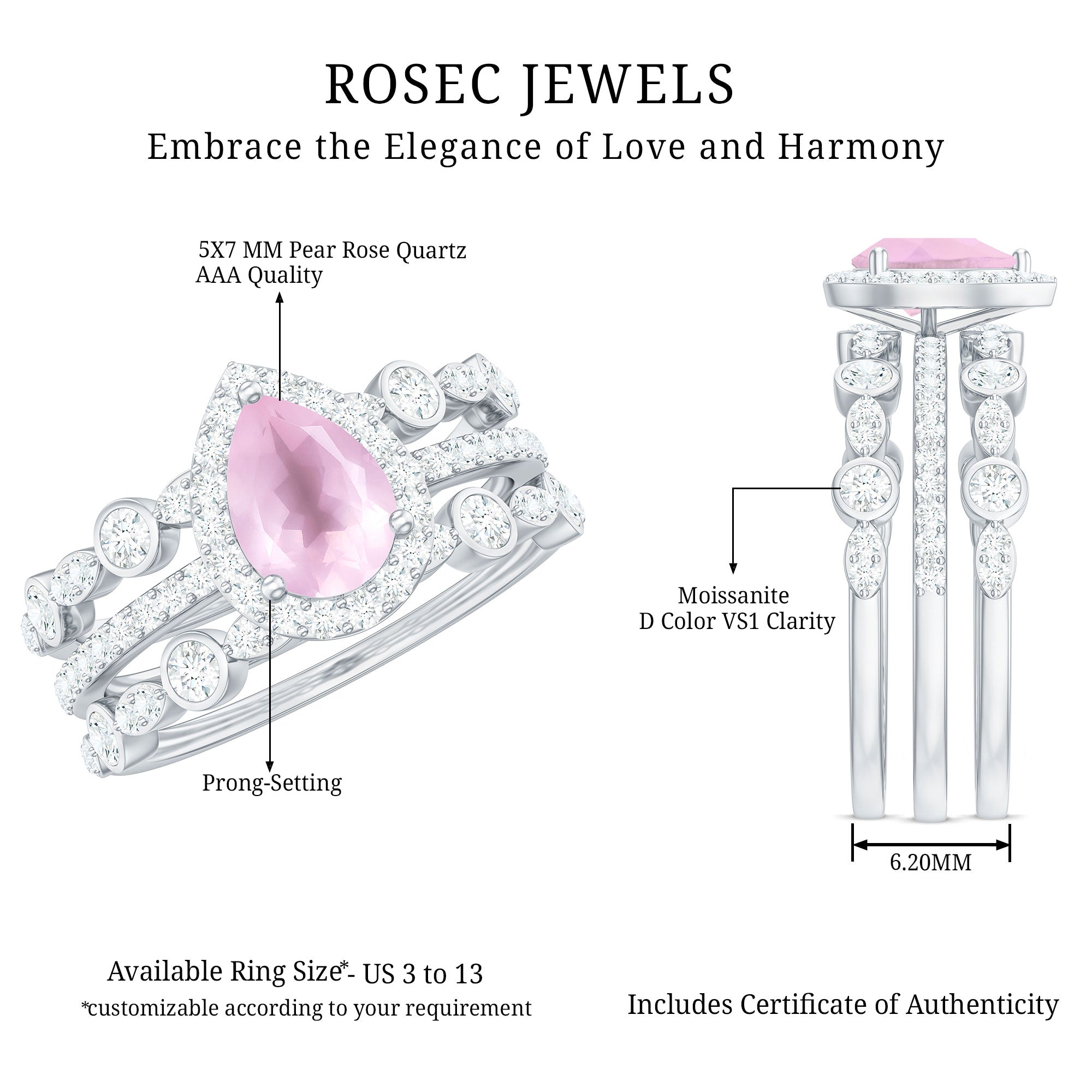 Pear Cut Rose Quartz Bridal Trio Ring Set with Moissanite Band