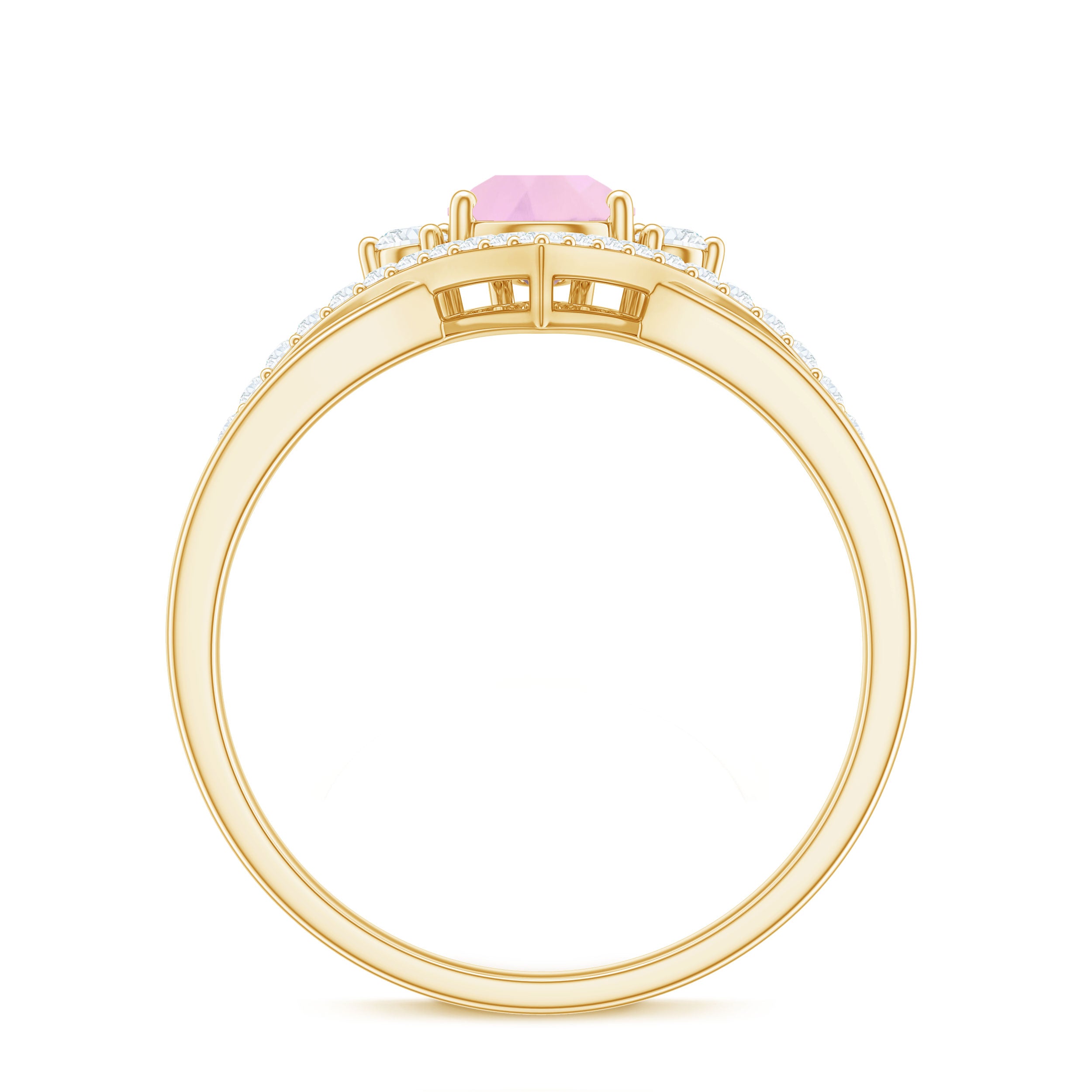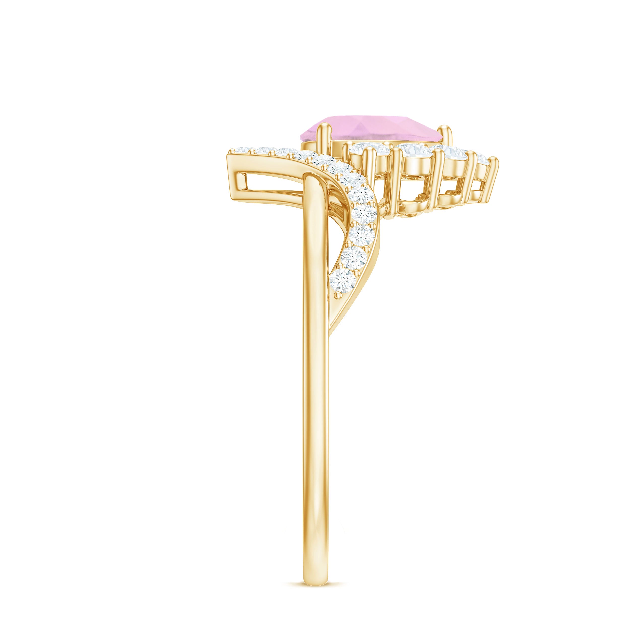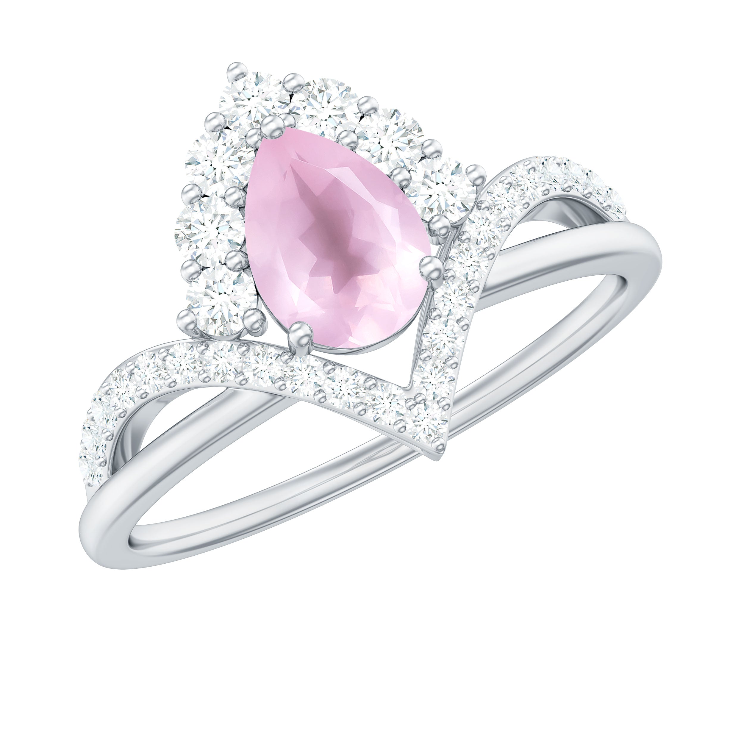 Pear Cut Rose Quartz Designer Engagement Ring with Diamond