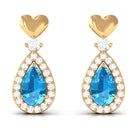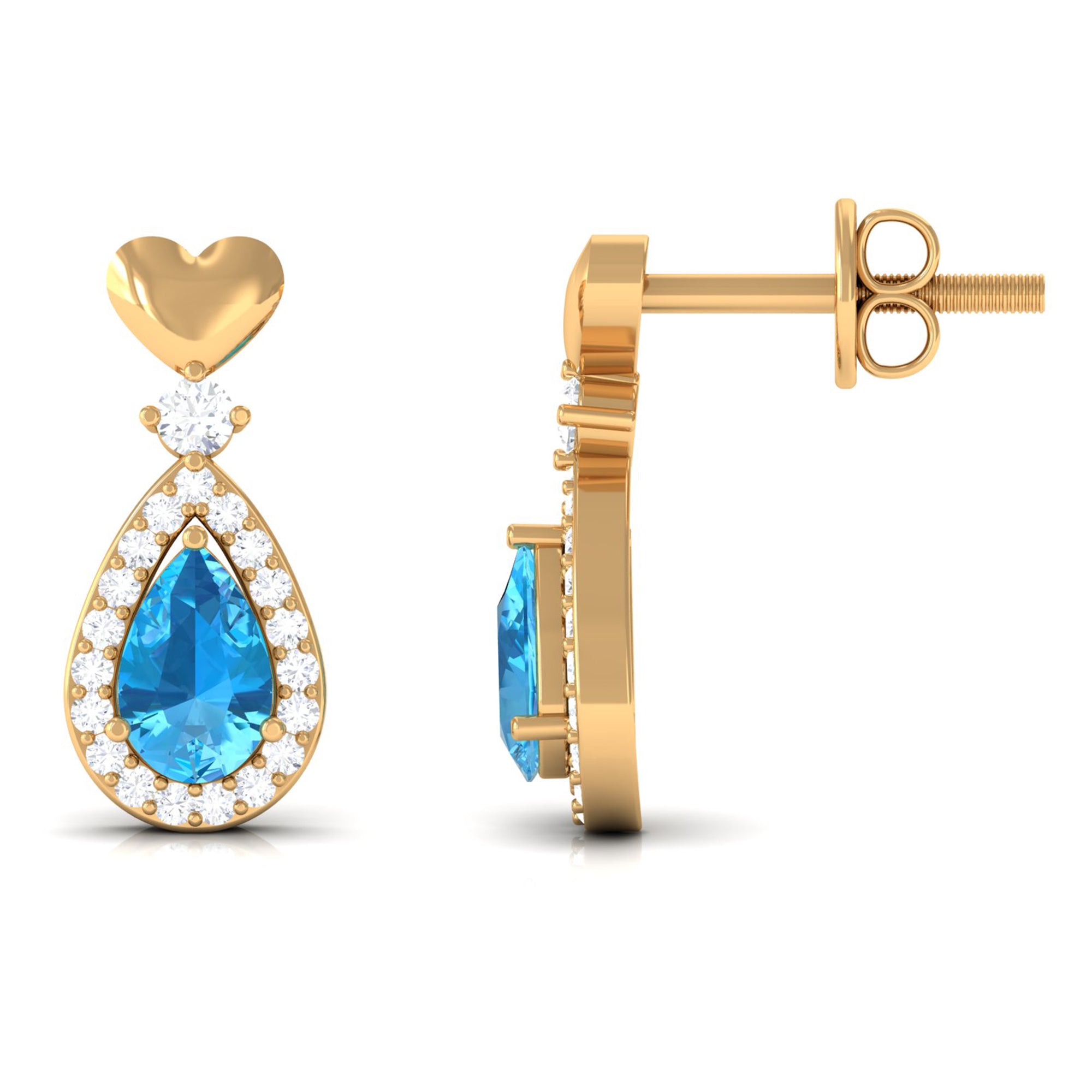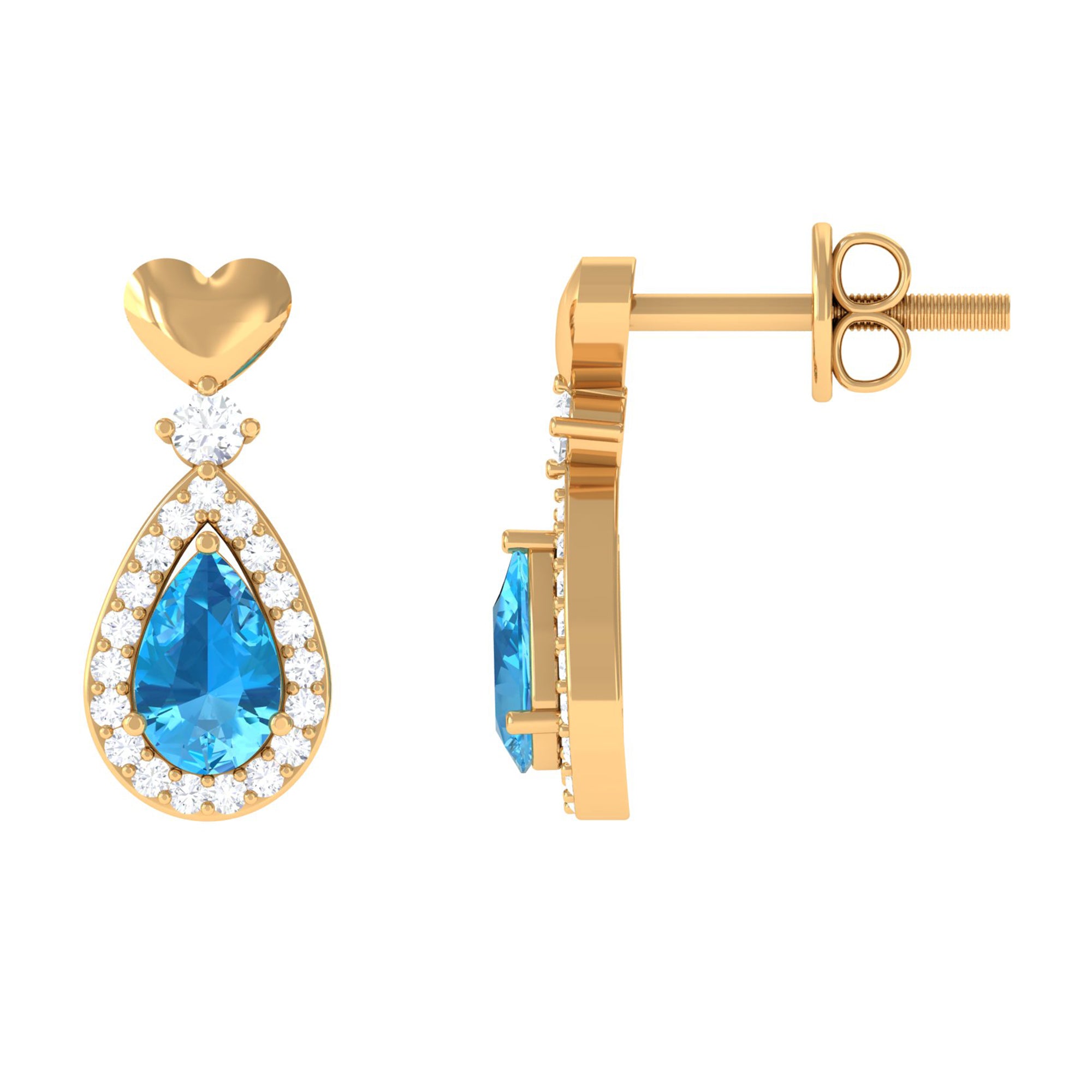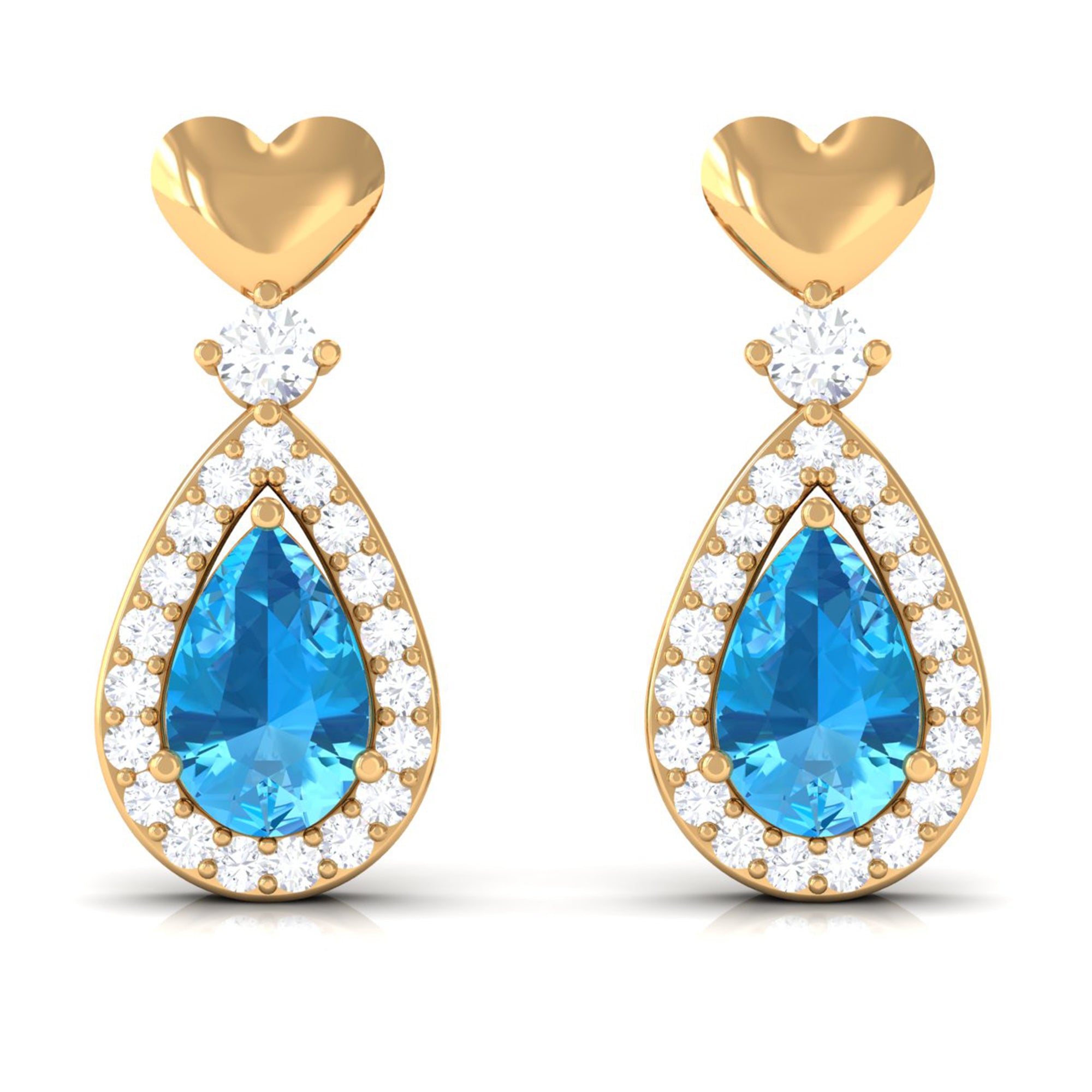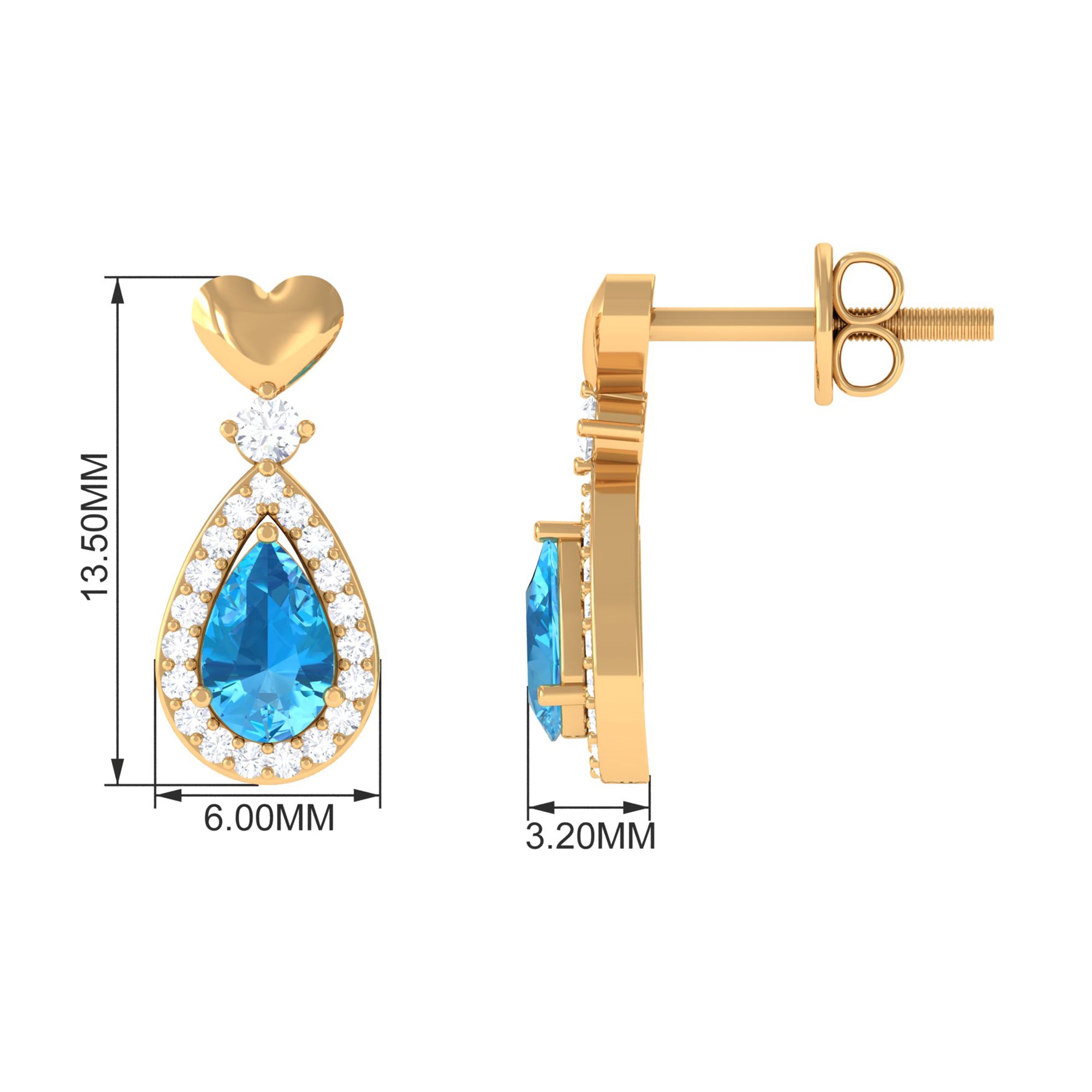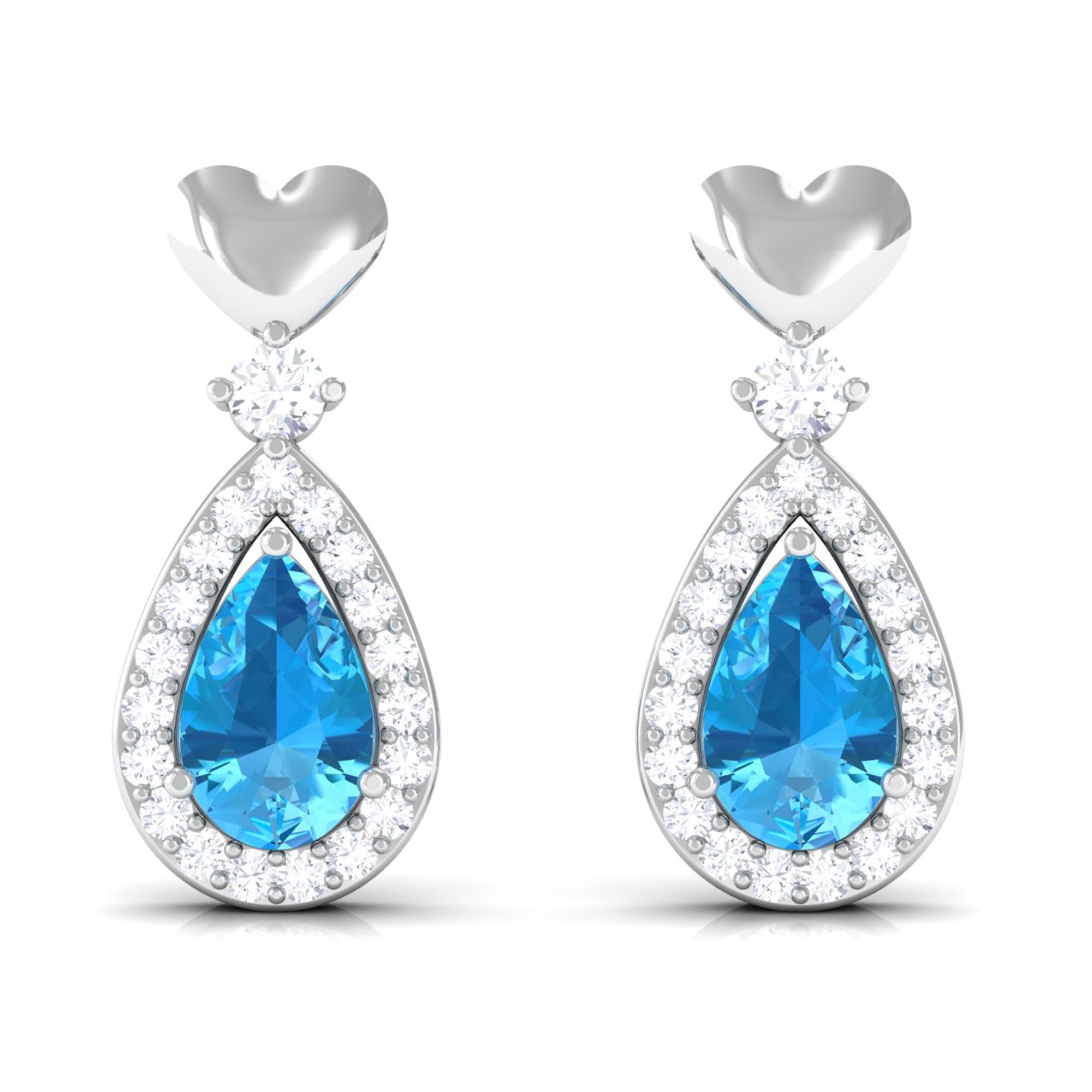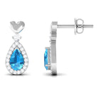 Pear Cut Swiss Blue Topaz Bridal Drop Earrings with Diamond Halo