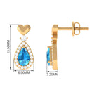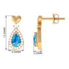 These elegantly designed drop earrings highlight a pear shape Swiss Blue Topaz enclosed in a sparkly halo of Diamond for an unmatched aura. A round Diamond on the top accentuates the shimmering pear motif and completes its exquisite look. For a playful touch, the base of the teardrop earring pair features a shiny heart motif. The pair comes with screw back closures that make them a comfortable option.