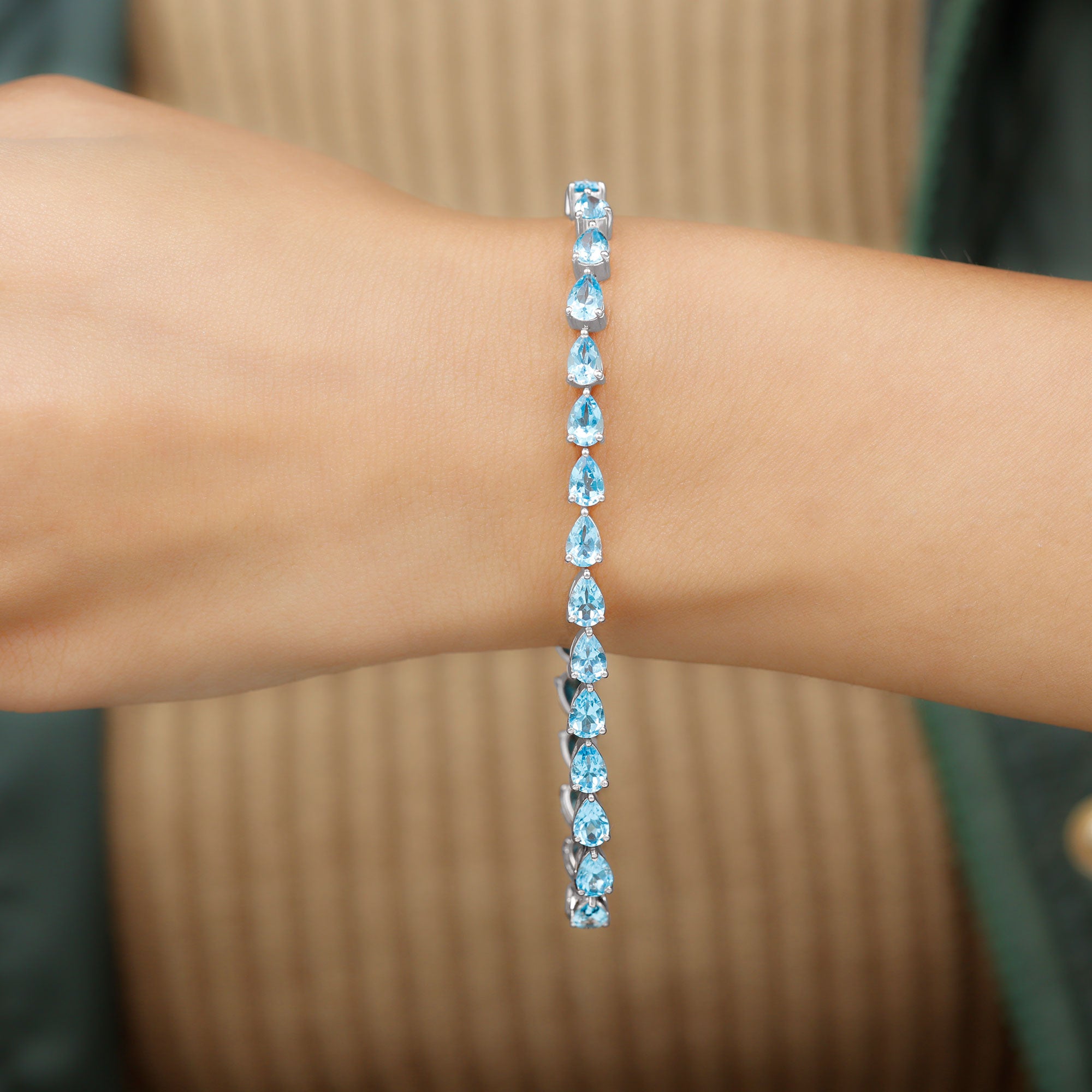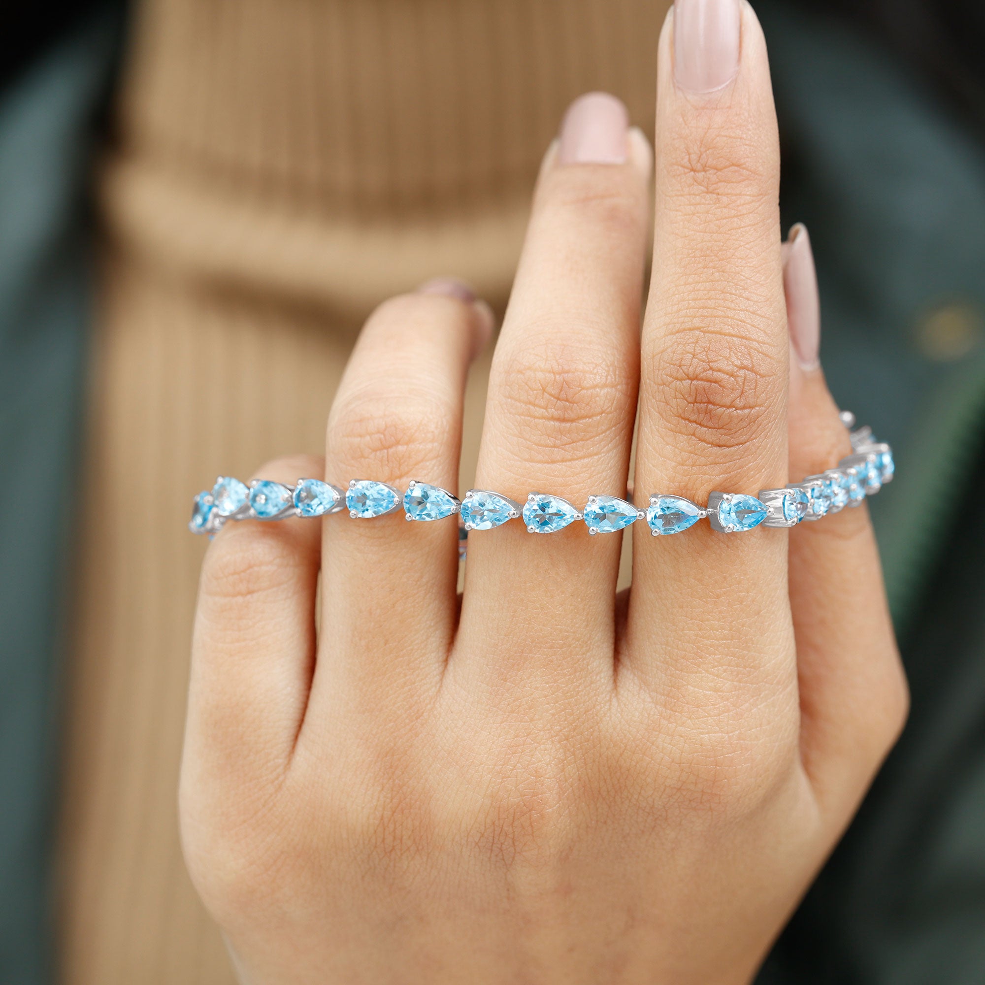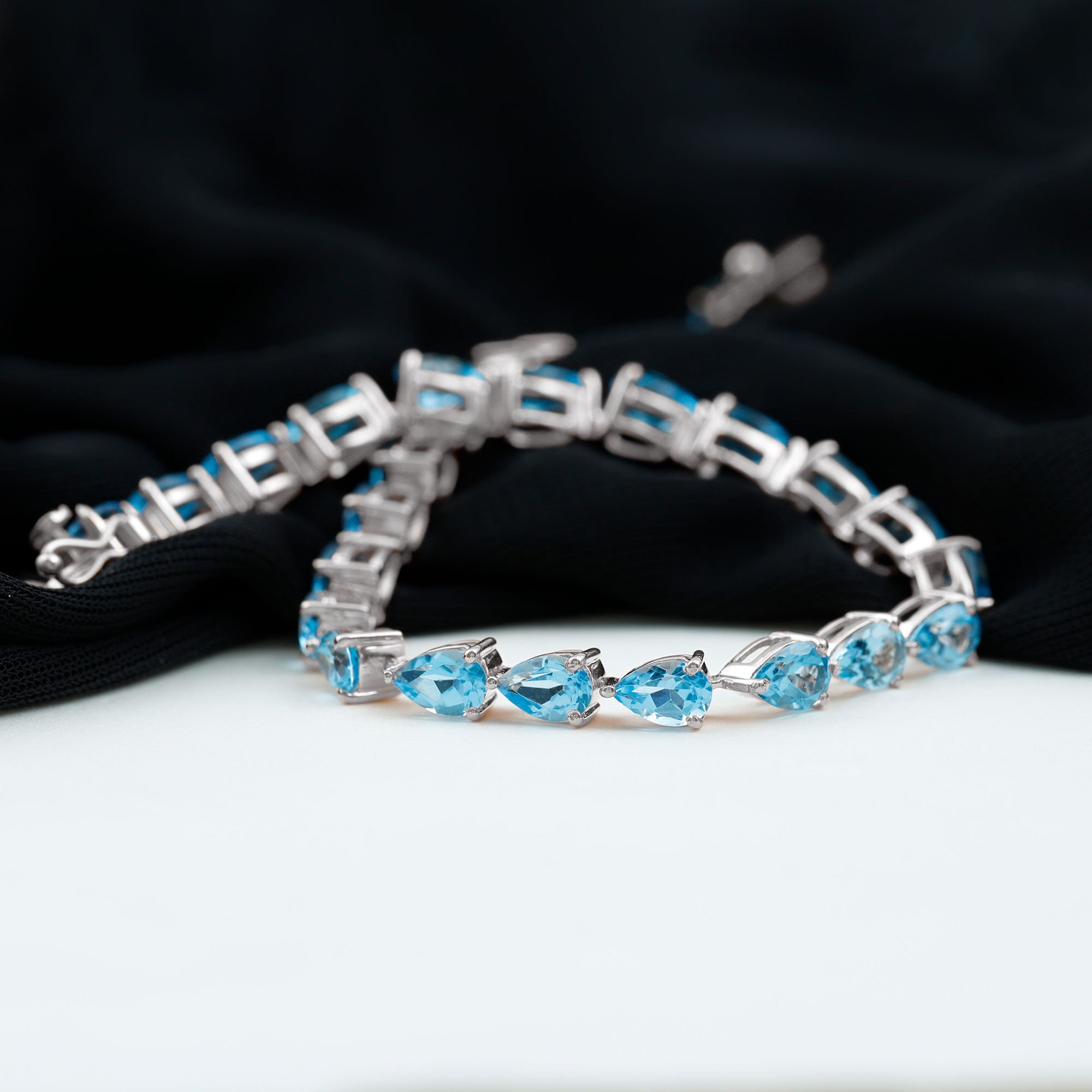 Pear Cut Swiss Blue Topaz East West Tennis Bracelet