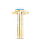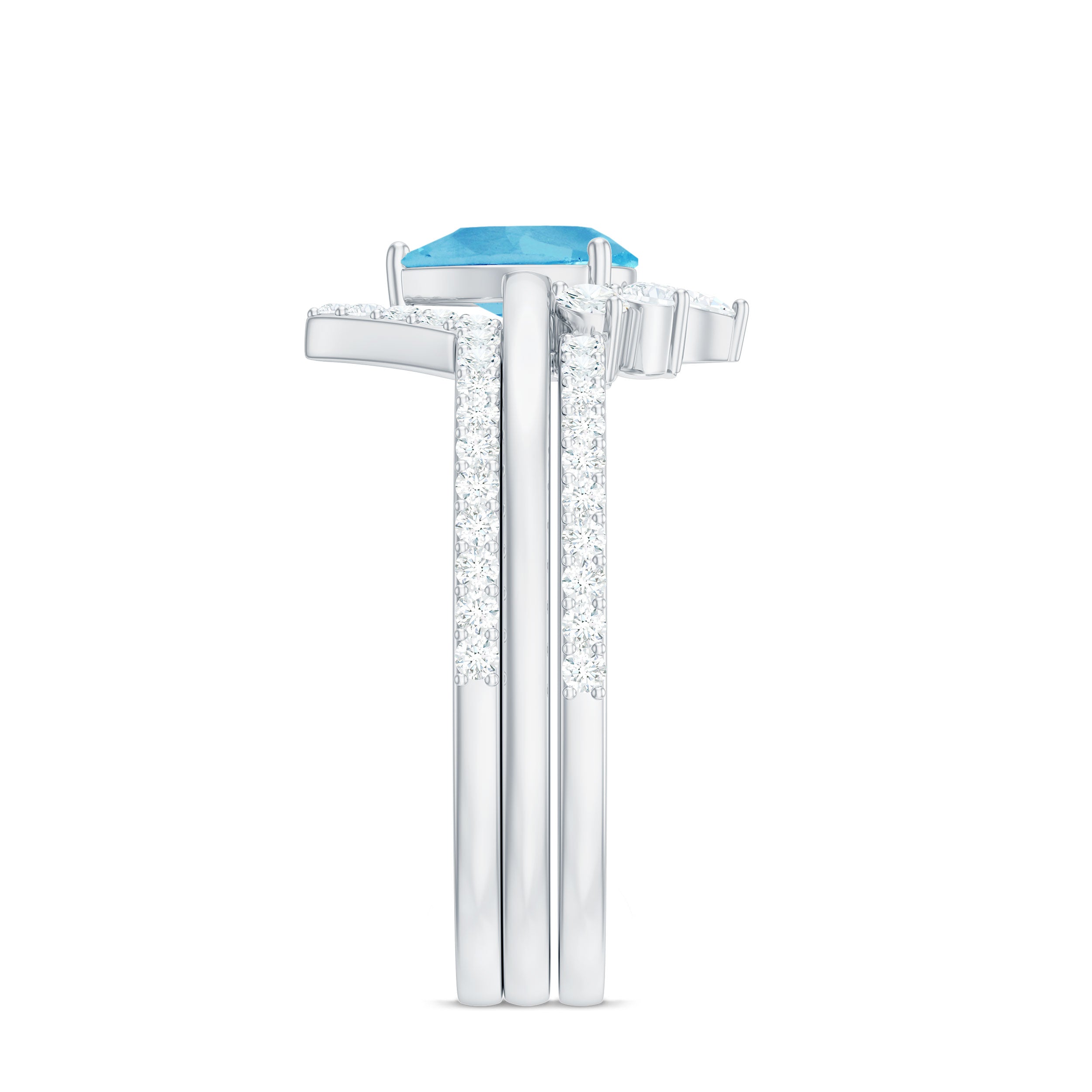 Make her big day even more memorable with this stunning Three Ring Set adorned with pear cut Swiss Blue Topaz set as Solitaire in one ring with two enhancer featuring round moissanite stones. This Bridal Ring Set is a splendid choice for any woman, exuding elegance and sophistication. Surprise your lady with this exquisite moissanite ring set and let it be a cherished piece shell treasure forever, representing the beauty of your love on her big day.
