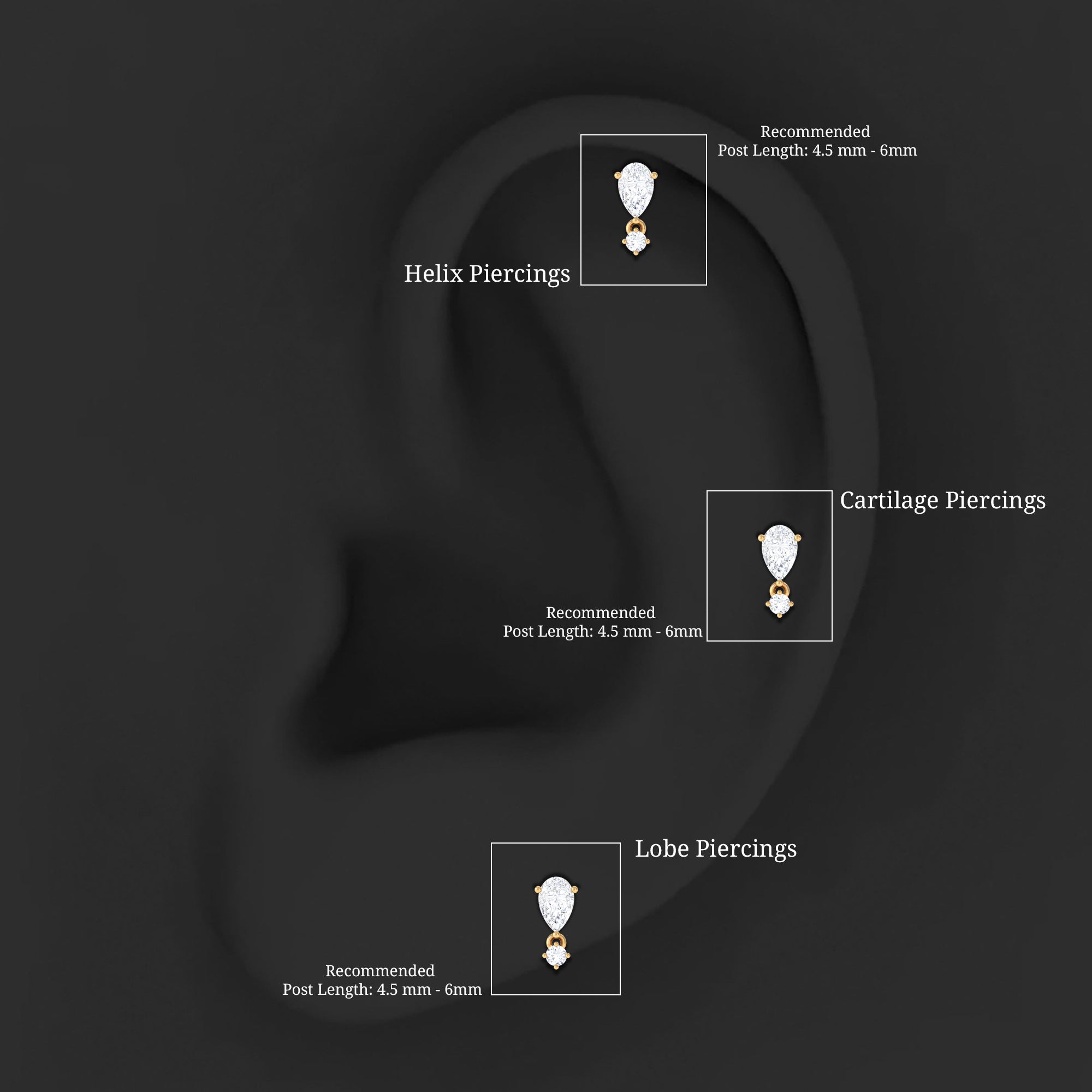 Pear Diamond Drop Earring for Helix Piercing