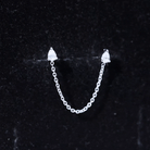 Pear Moissanite Double Piercing Earring with Dangling Chain