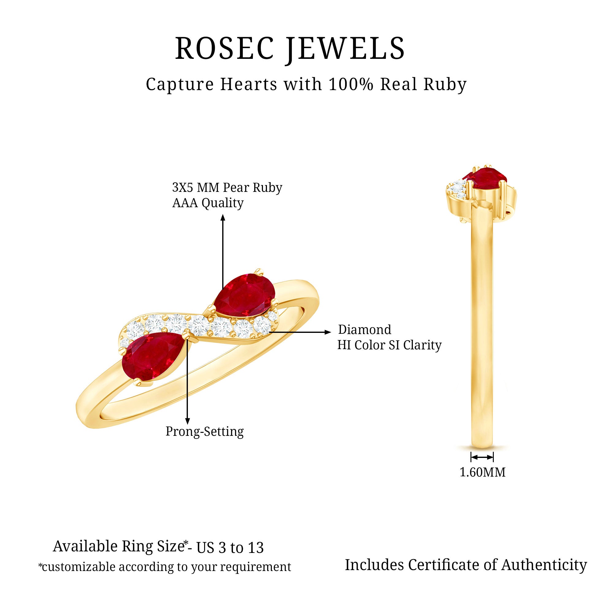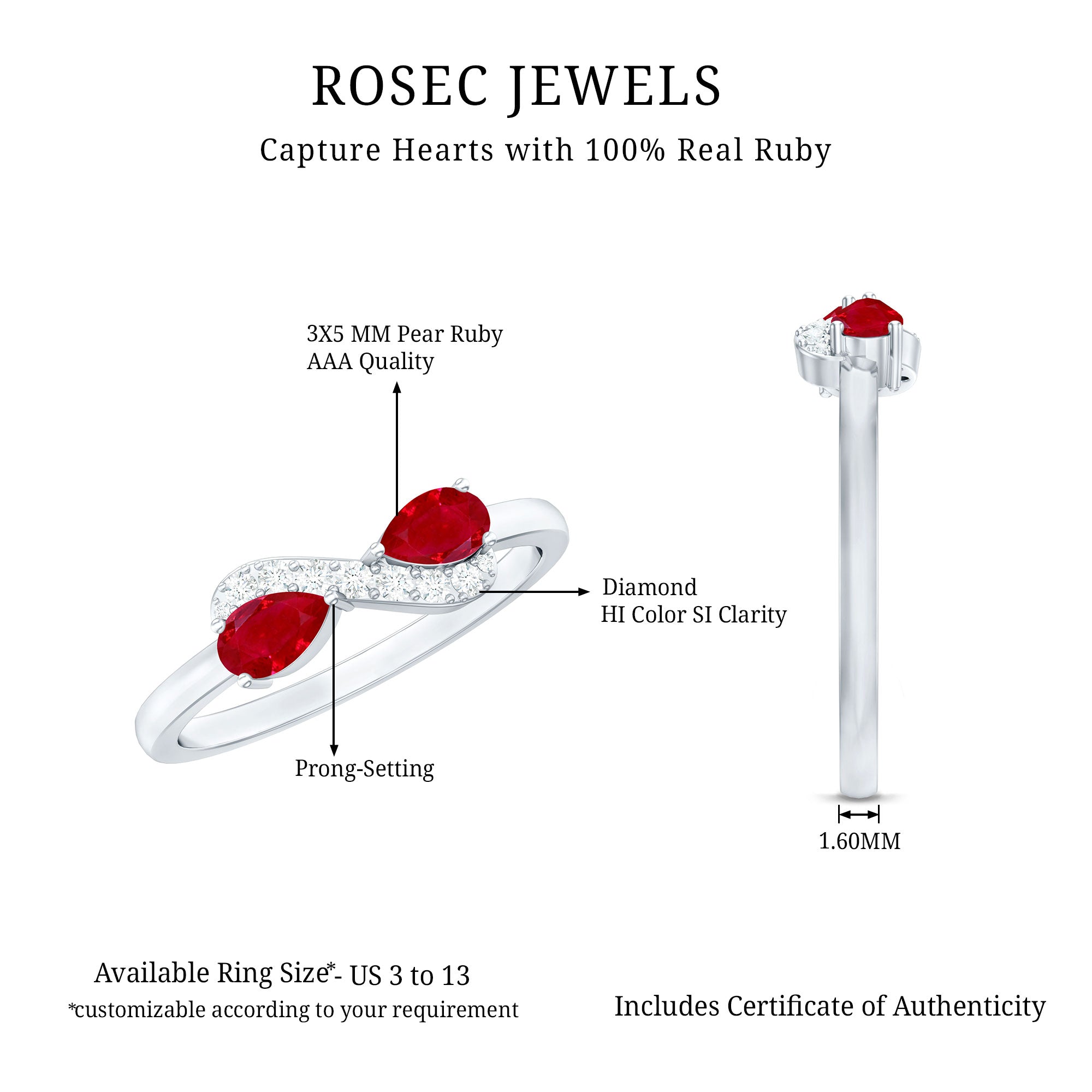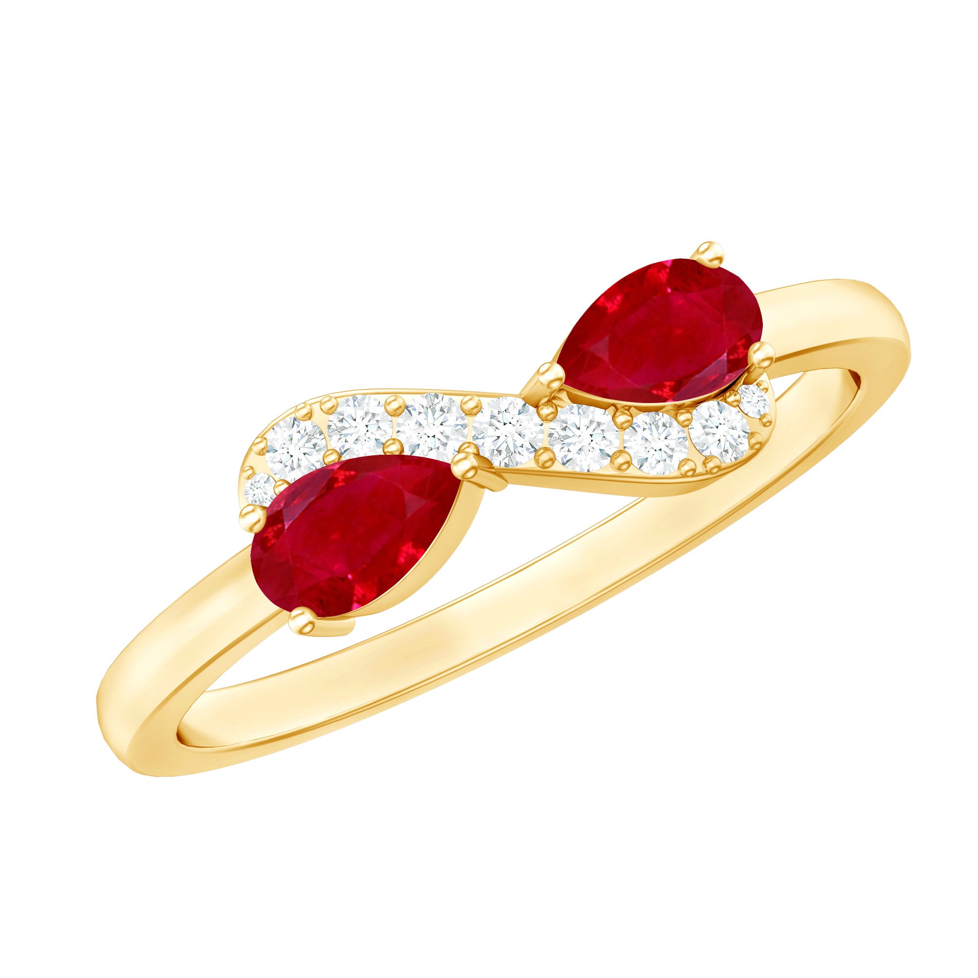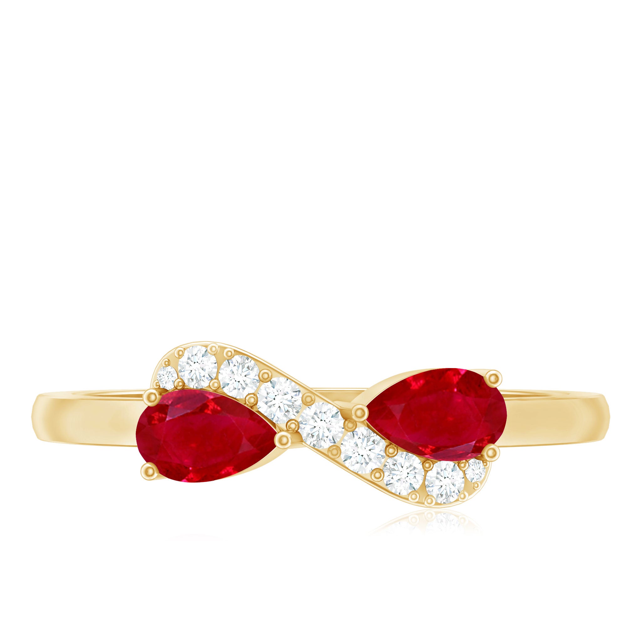 Add sparkle to your relationship by presenting this amazing Infinity Promise Ring to her. This Promise Ring is crafted with Pear Cut Ruby and Round Diamond in a prong setting which makes this ring look glamorous with every outfit, get your hands on this Infinity ring today before its too late.