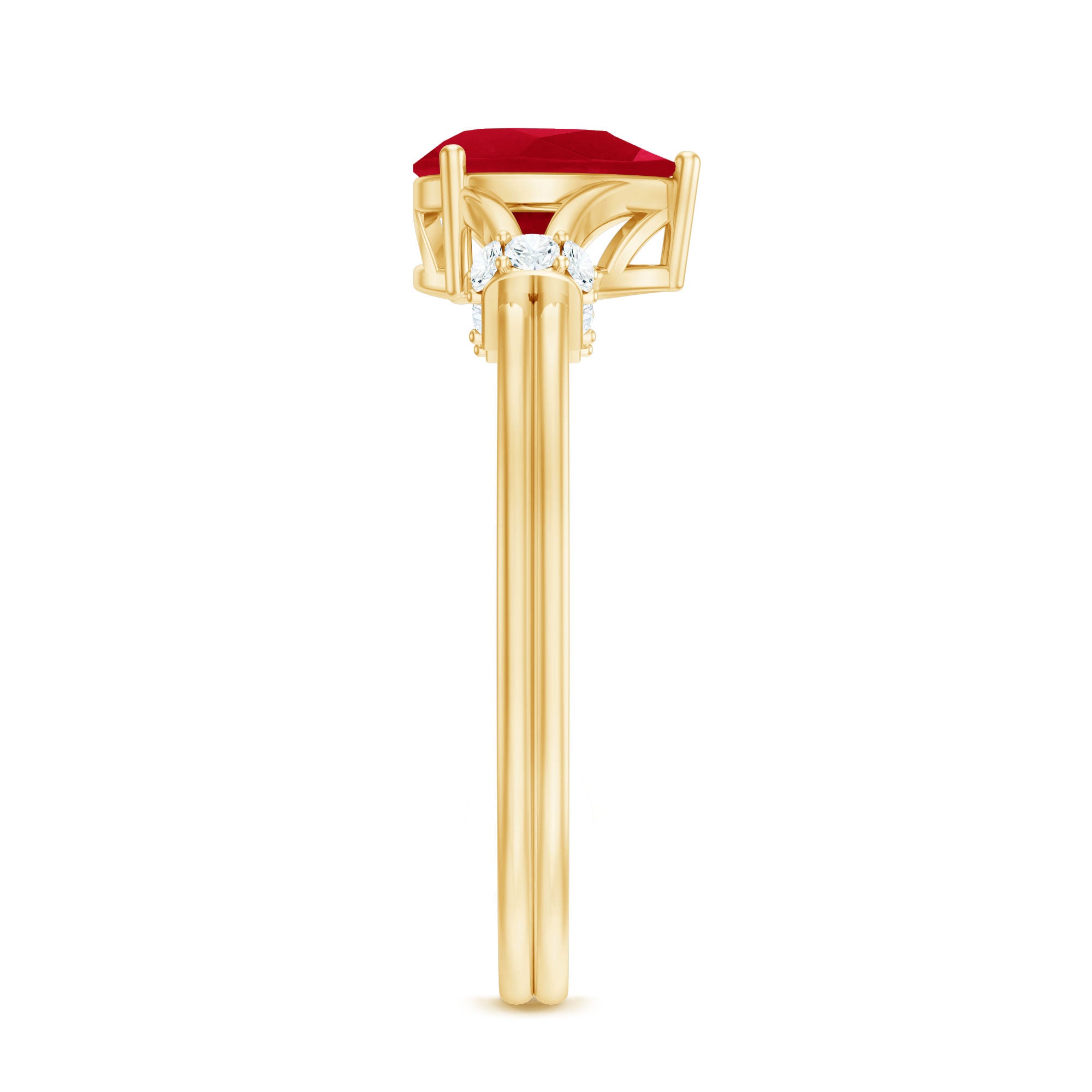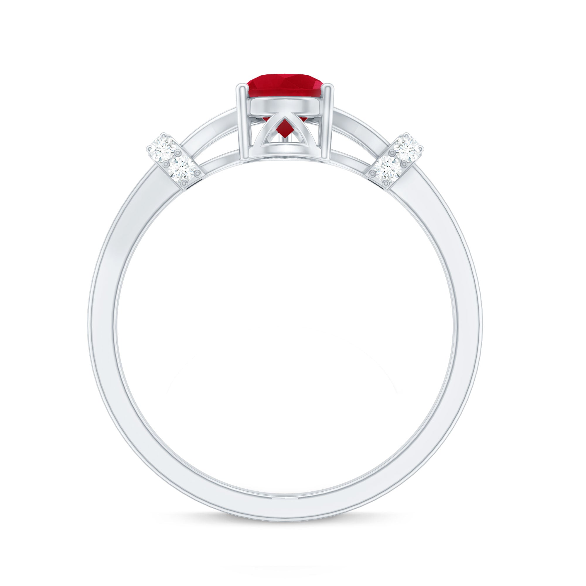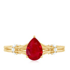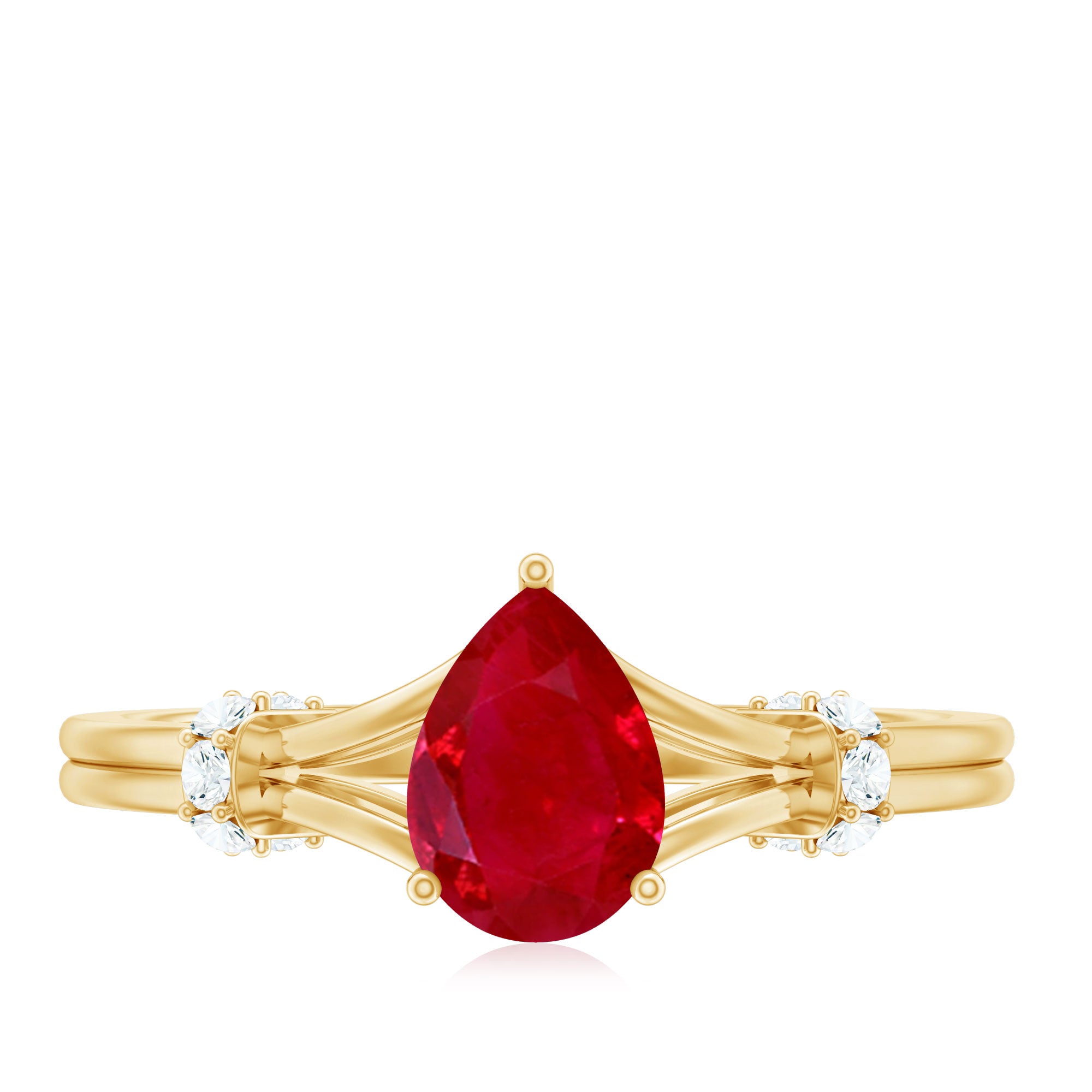 Pear Ruby Solitaire Ring with Diamond in Split Shank