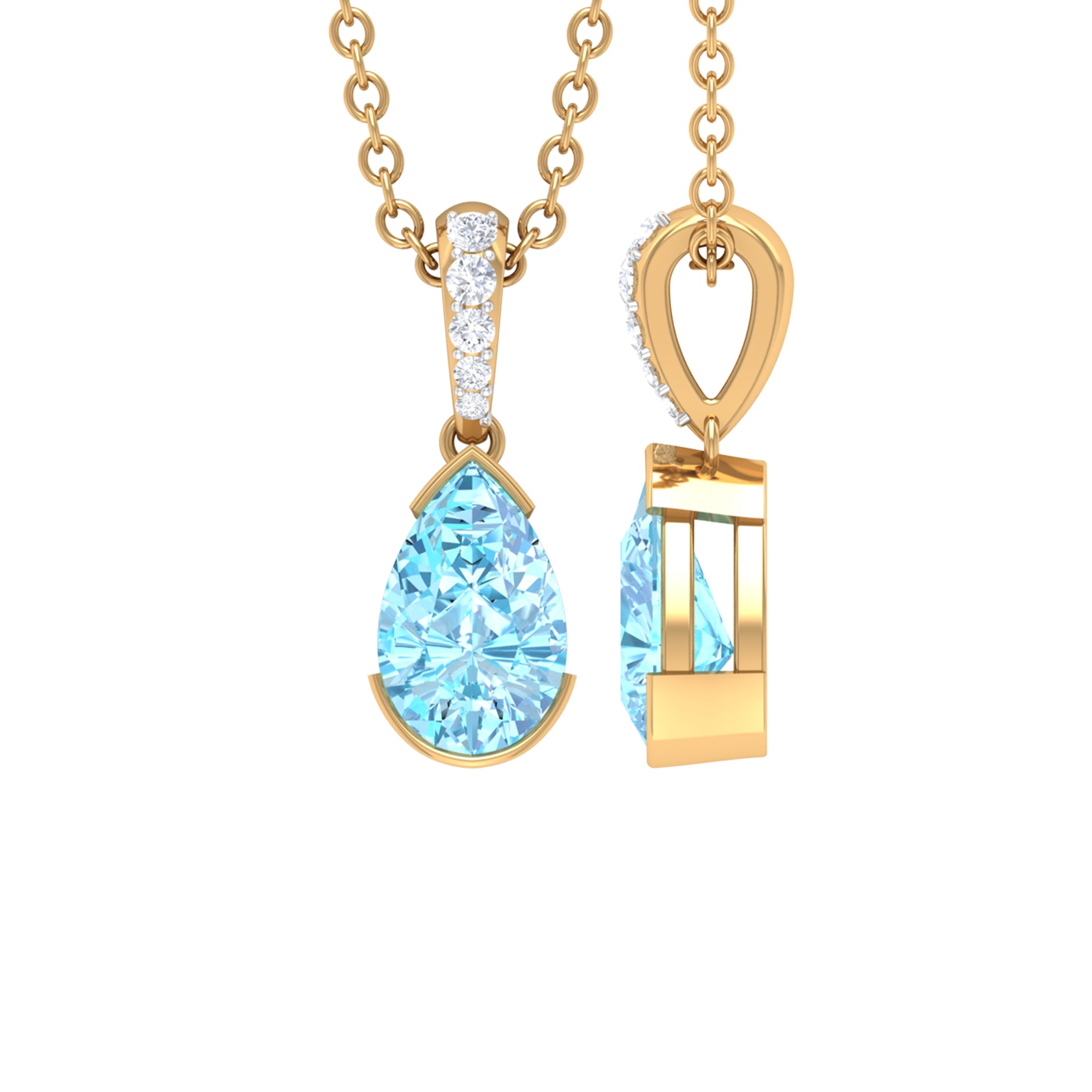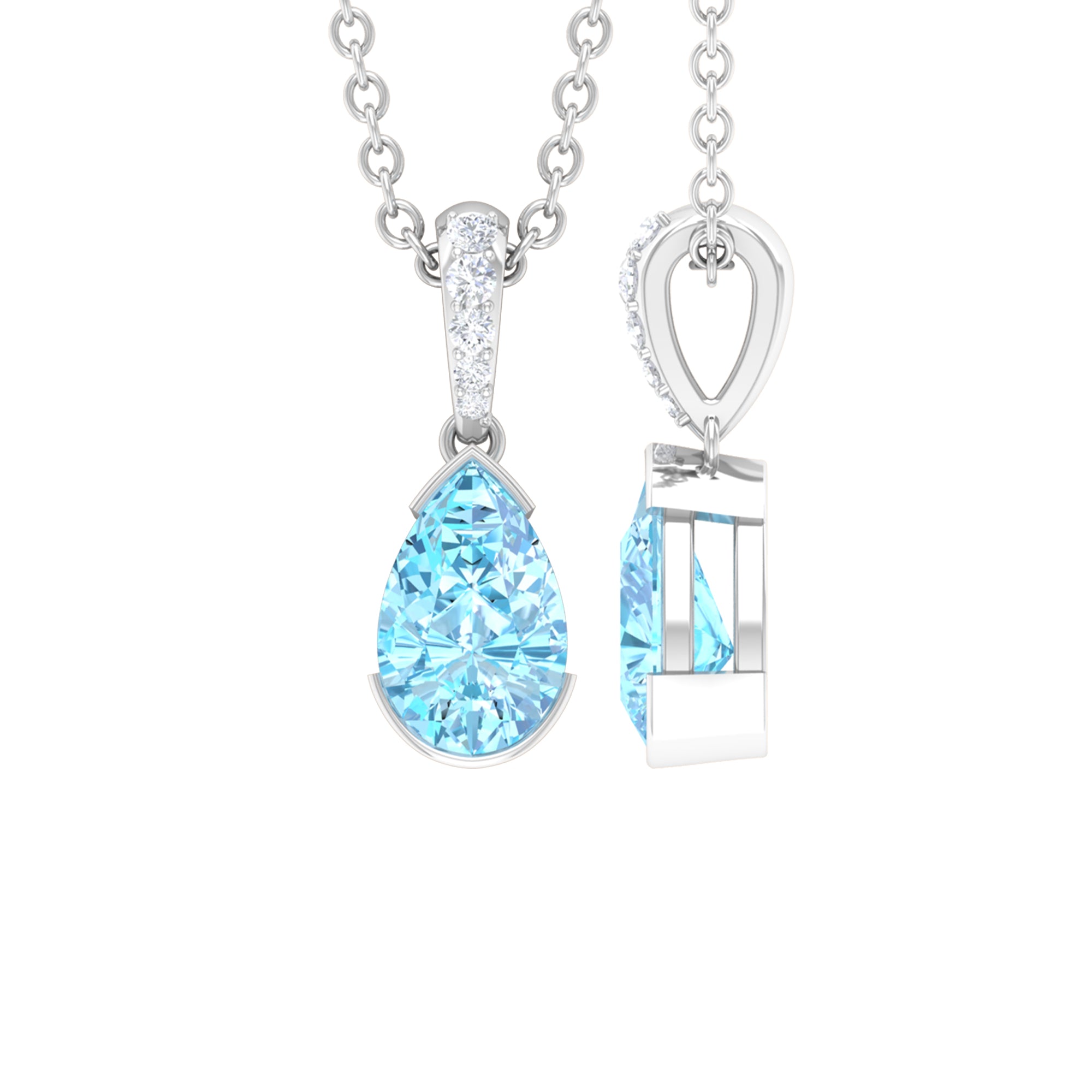 Pear Shape Aquamarine Solitaire Pendant with Diamond Bail