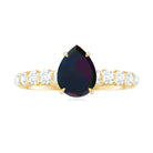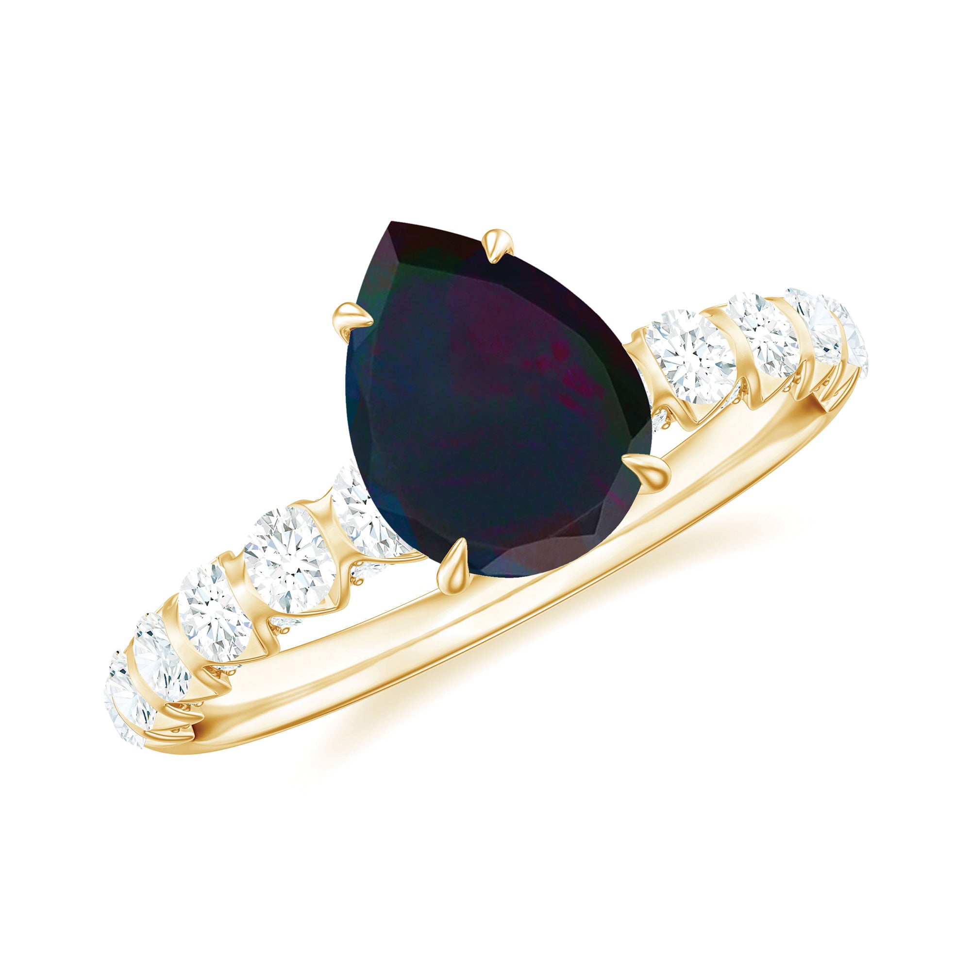 Pear Shape Black Opal Solitaire Engagement Ring with Diamond