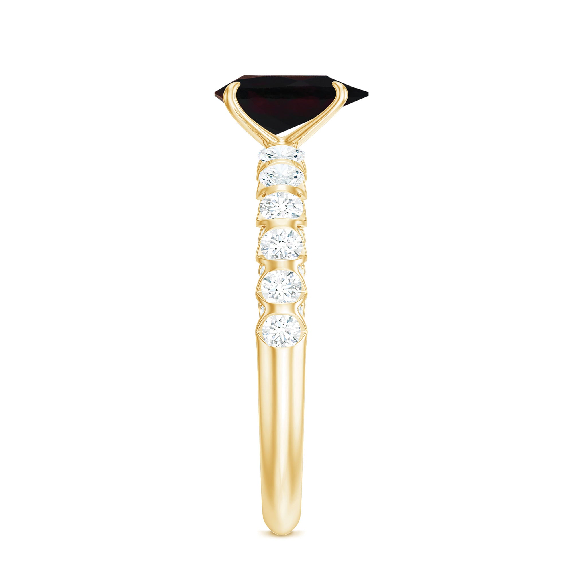 Distinguished by its unique and stylish design, this solitaire engagement ring with a captivating black opal centerpiece is a versatile piece suitable for any momentous occasion. The pear-shaped black opal gem, expertly set in a claw setting, is complemented by brilliant Diamond side stones that enhance its allure. Beyond its aesthetic charm, the black opal gem is renowned for its grounding and protective qualities, while the accompanying Diamond introduce an element of opulence and radiance. This ring serves as a tangible symbol of enduring promises and a cherished connection with your beloved.
