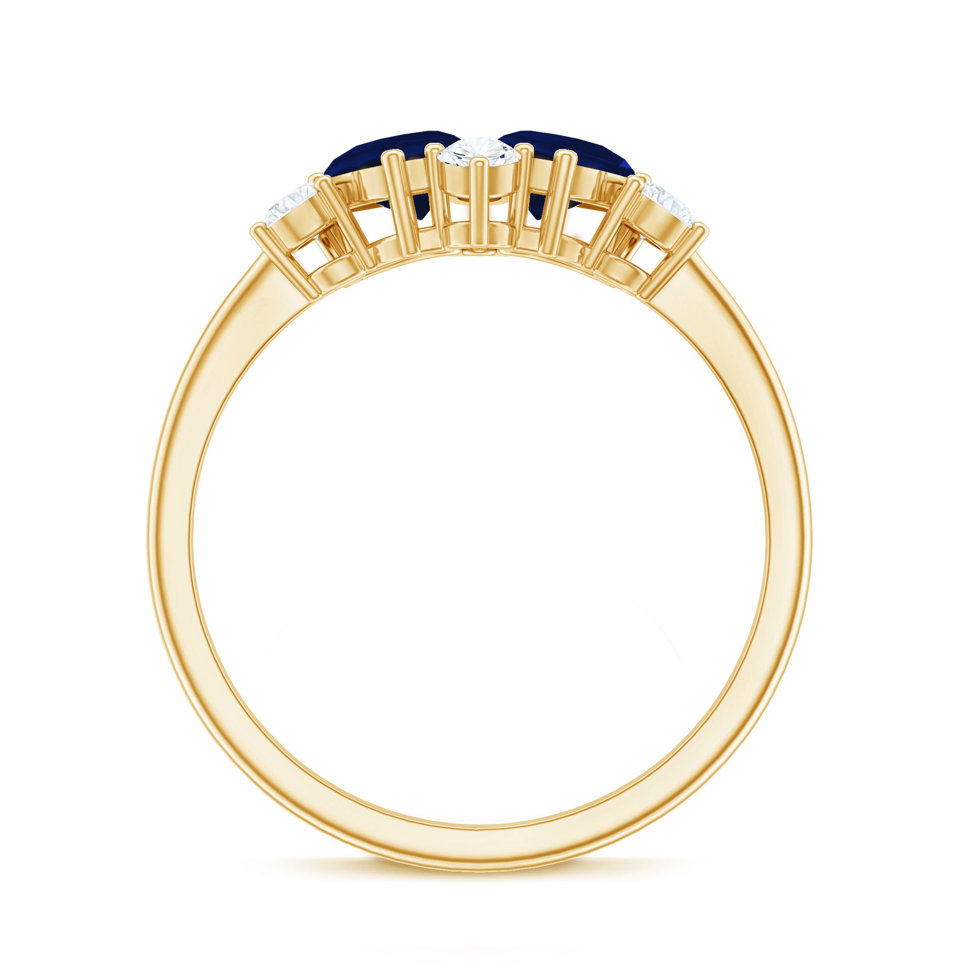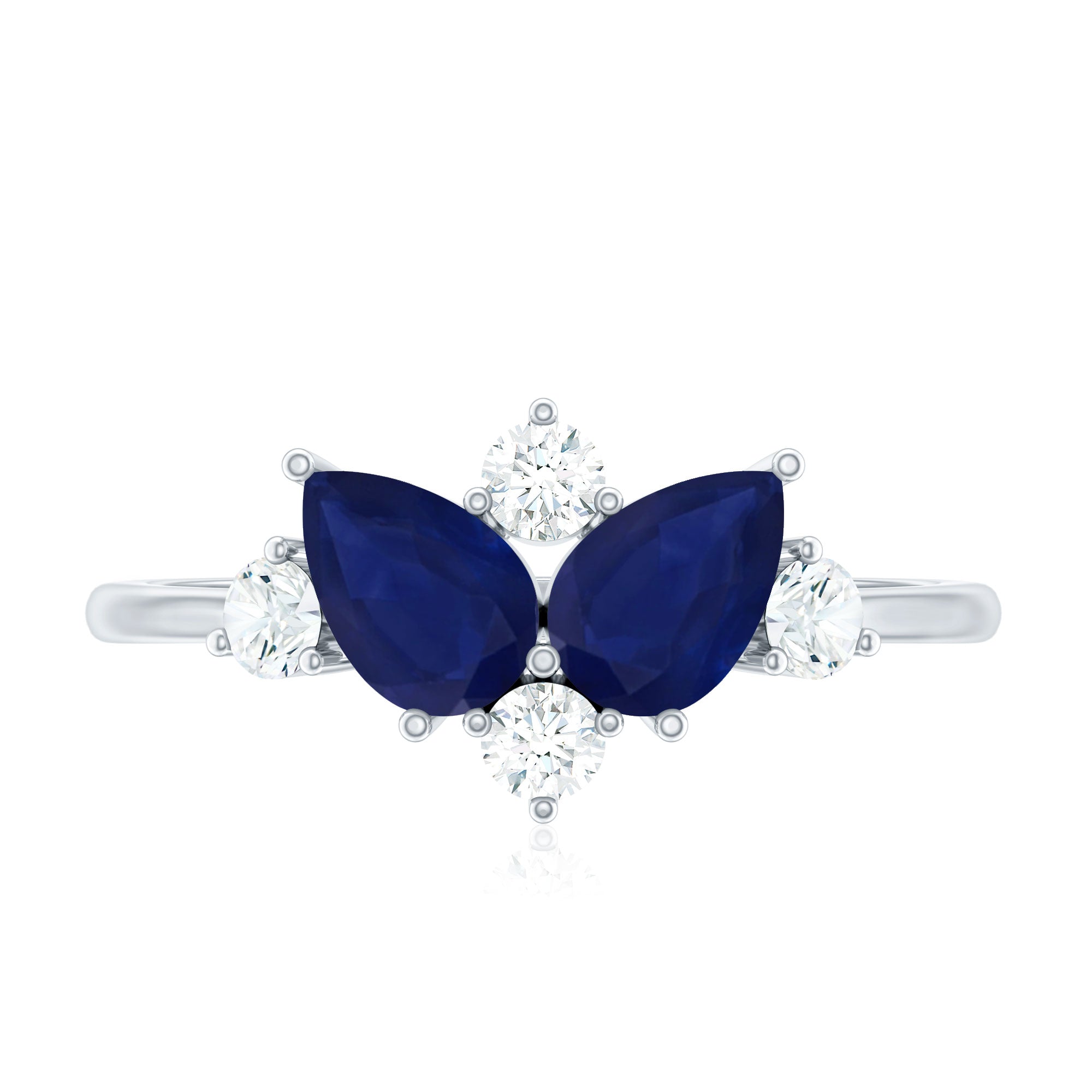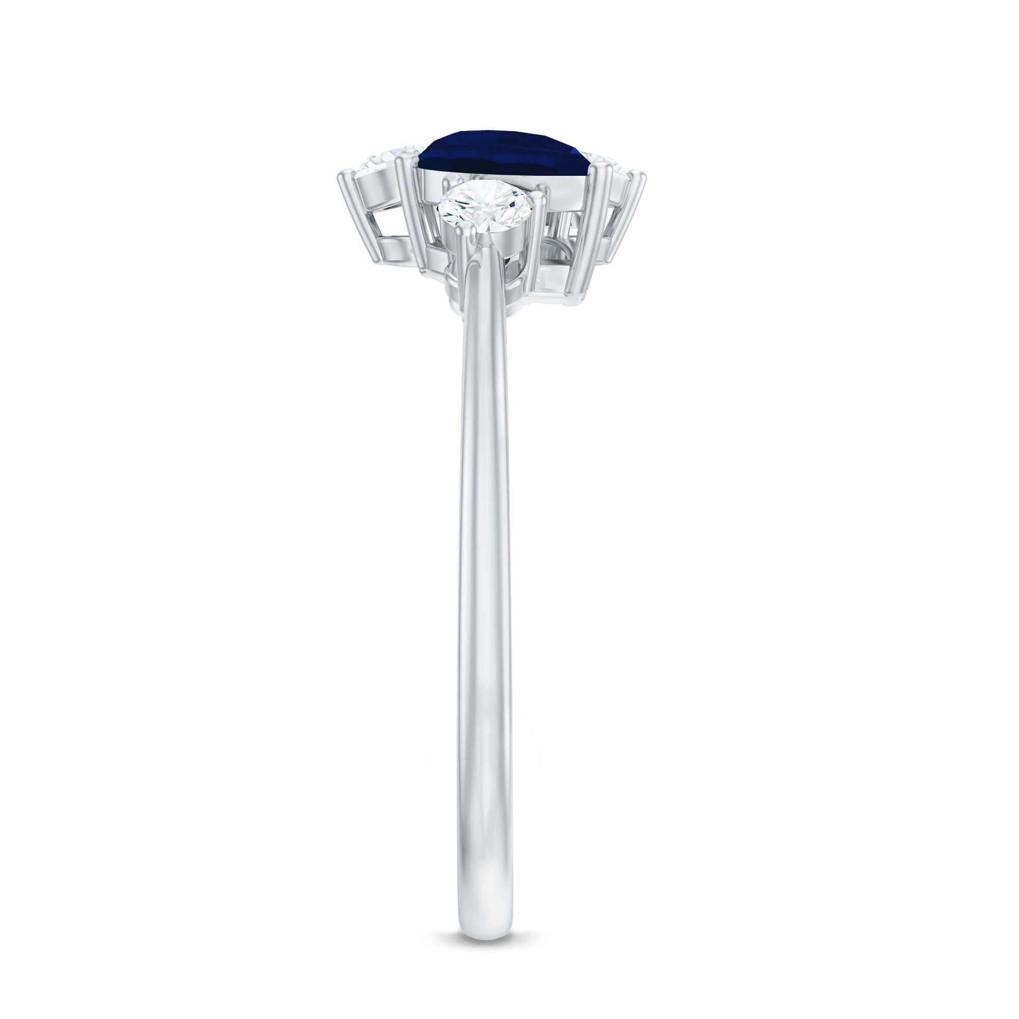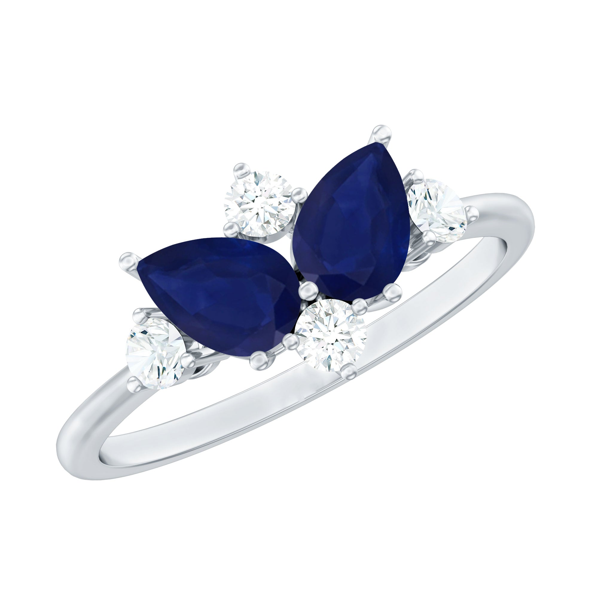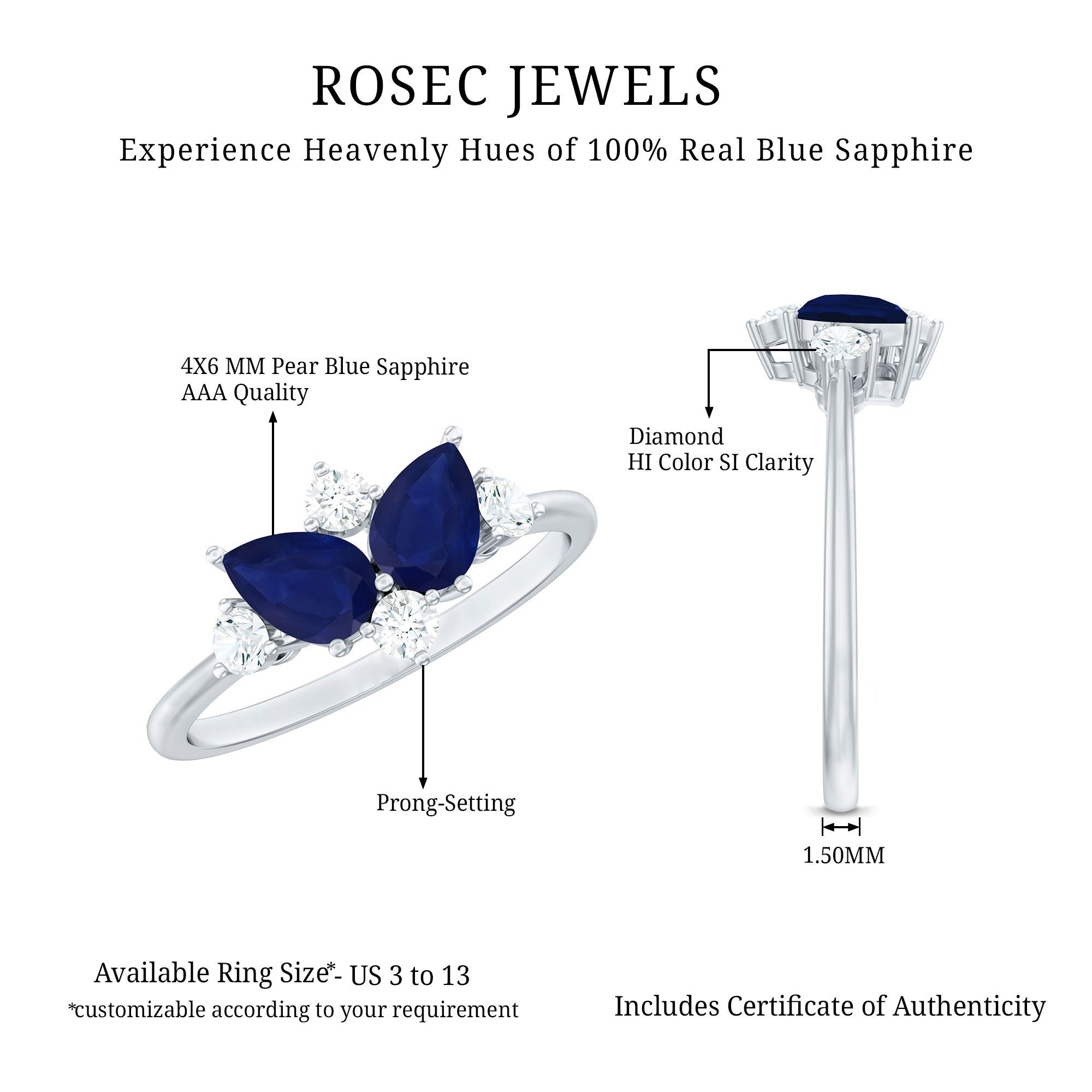 Pear Shape Blue Sapphire and Diamond Cluster Promise Ring