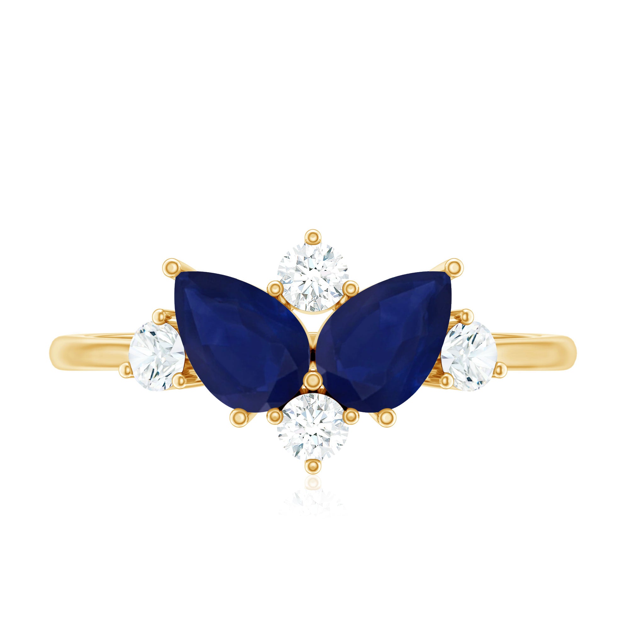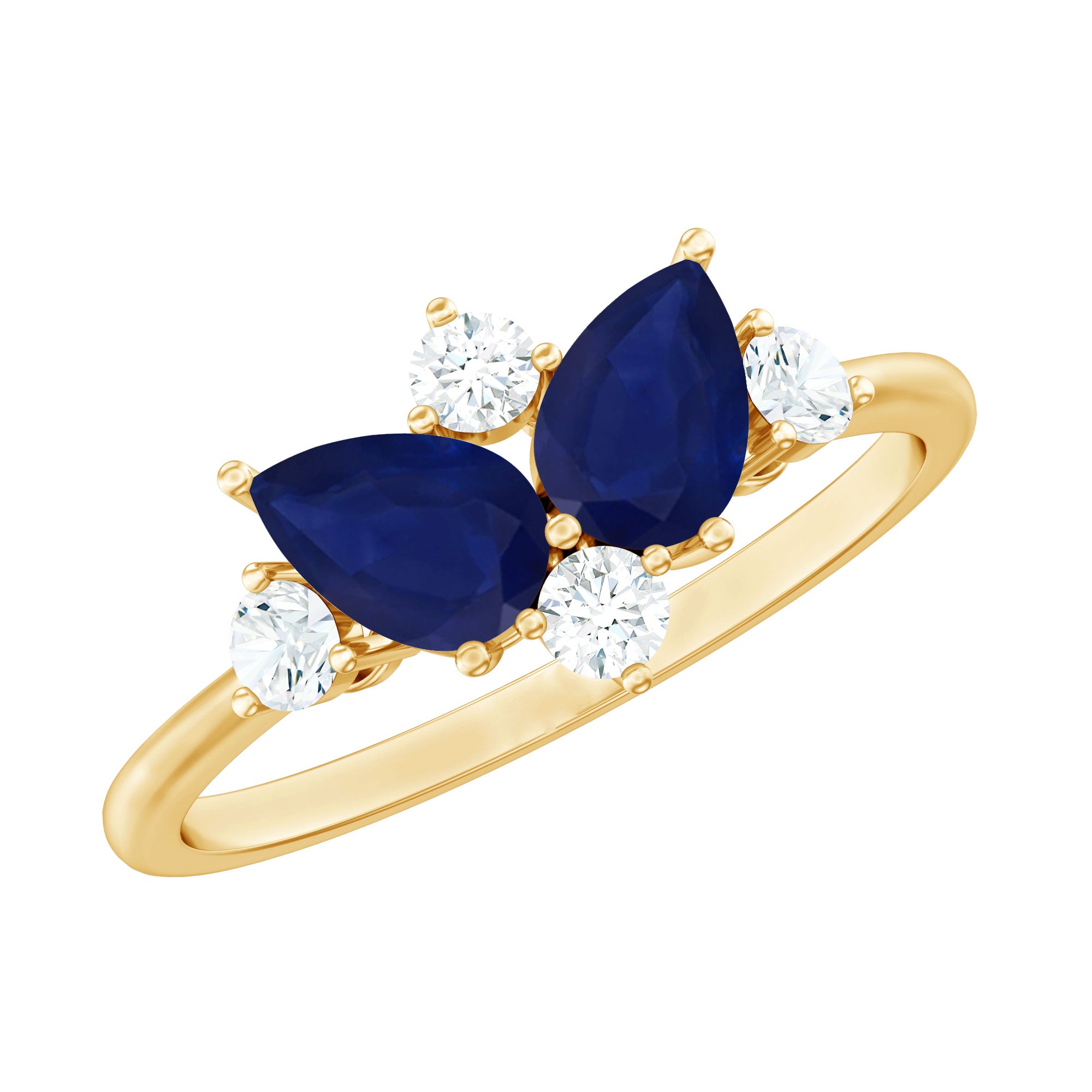 Show your commitment with this beautiful Promise Ring, made of Solid Gold. This Cluster Ring features a sparkling Pear Cut Blue Sapphire and Round Shape Diamond accents for a charming and elegant look.