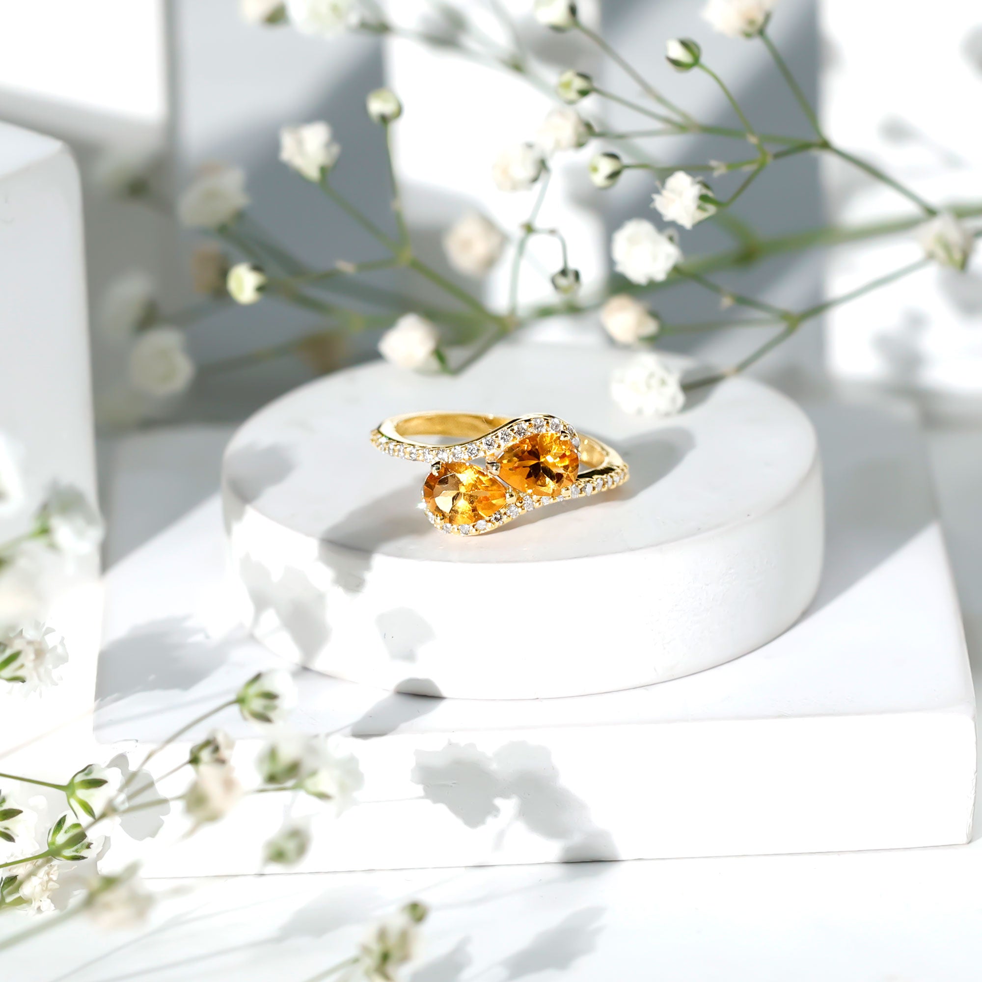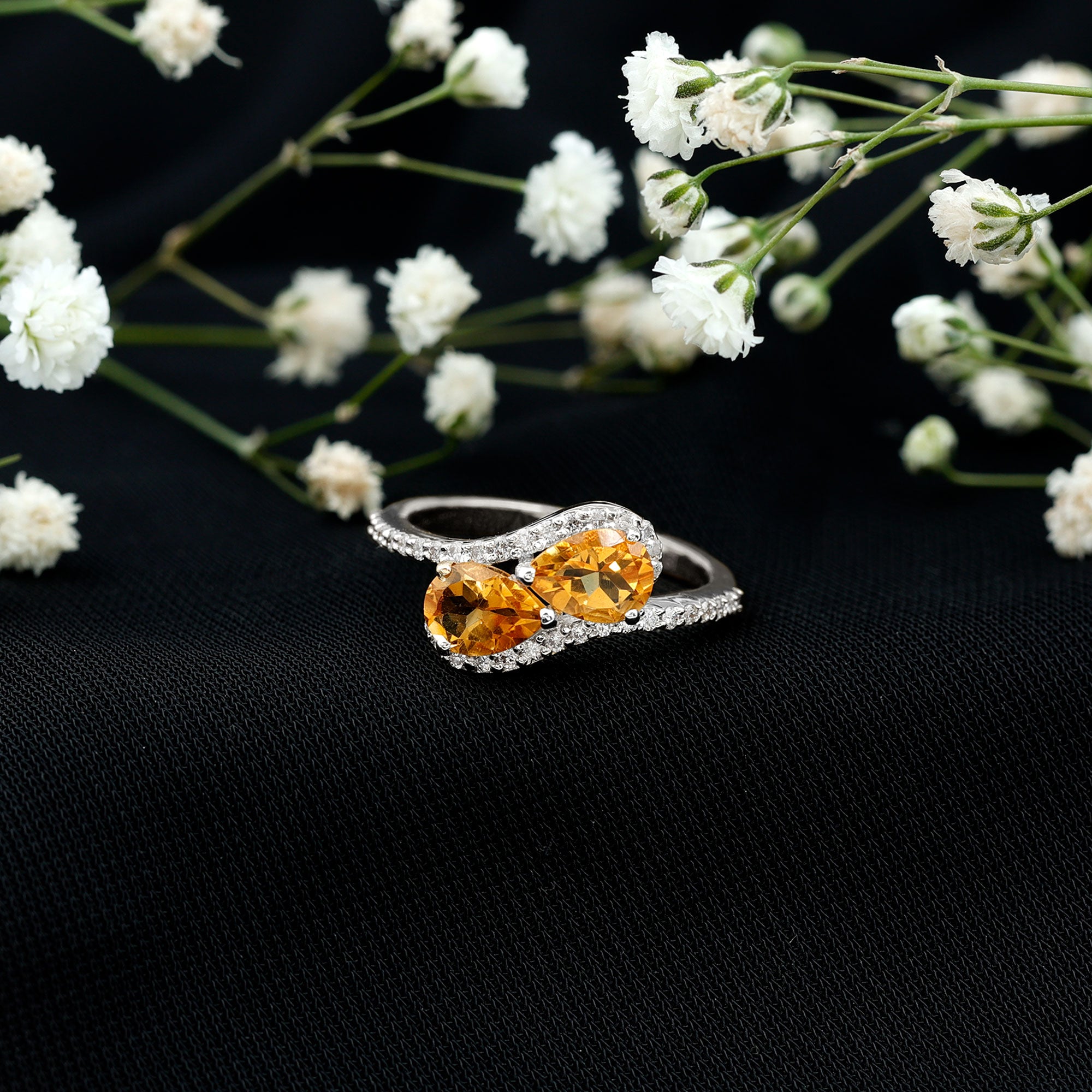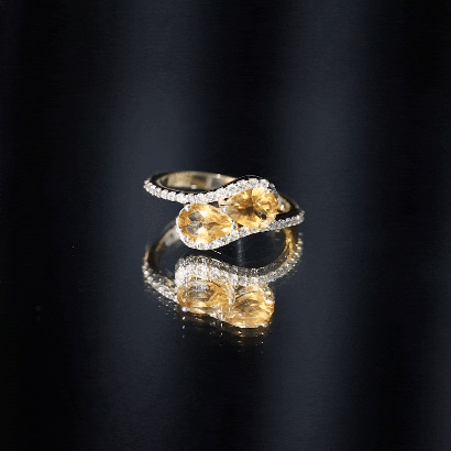 Pear Shape Citrine Two Stone Bypass Ring with Diamond