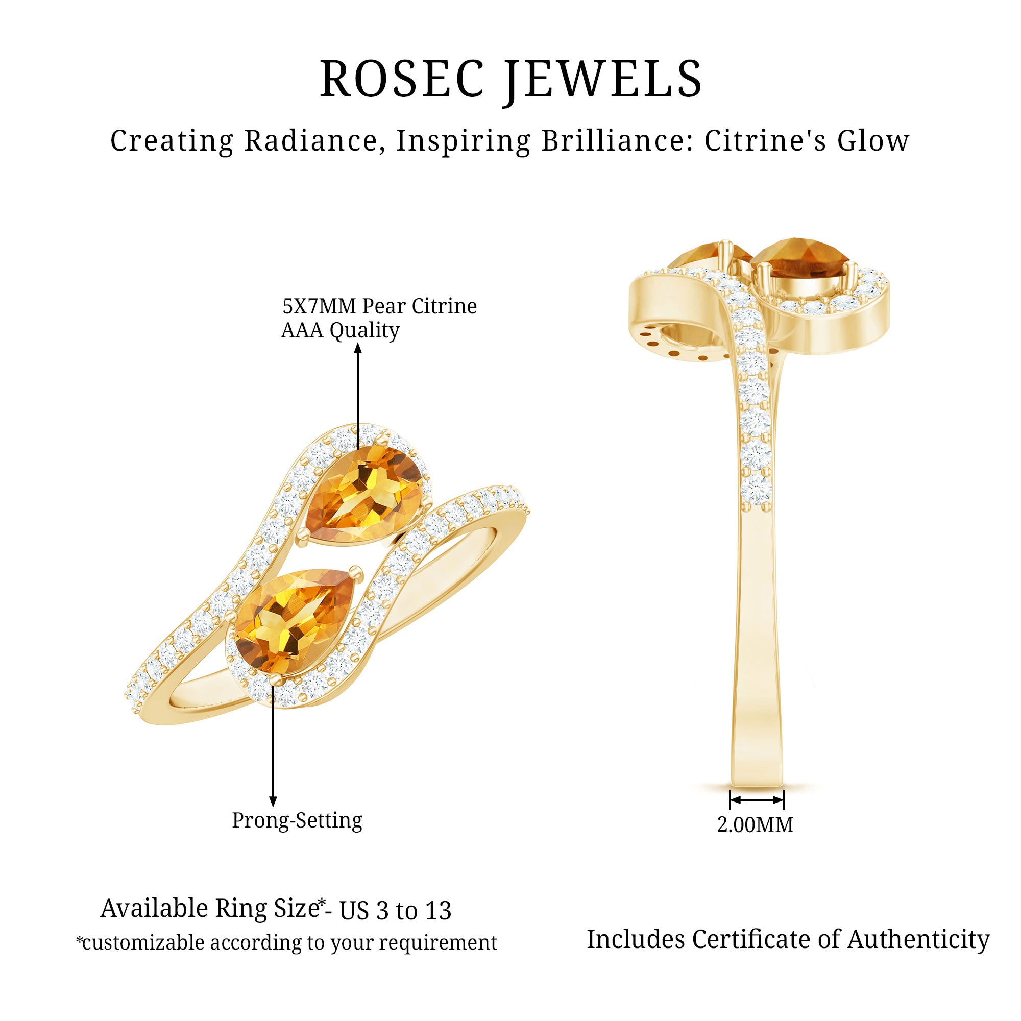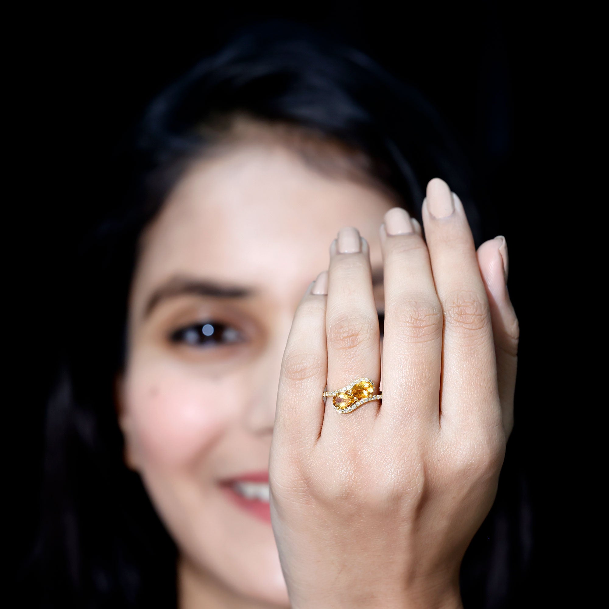 Elevate your elegance with this exquisite Two Stone Engagement Ring, adorned with a Pear Cut Citrine securely set in a Prong Setting, accompanied by Diamond on the Bypass Shank. This Vintage Inspired Ring is expertly crafted with Gold to add a touch of sophistication to your look. Surprise your loved one with this breathtaking Vintage Inspired Two Stone Ring.