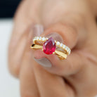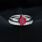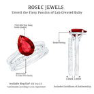 Pear Shape Created Ruby Solitaire Wedding Ring Set with Moissanite