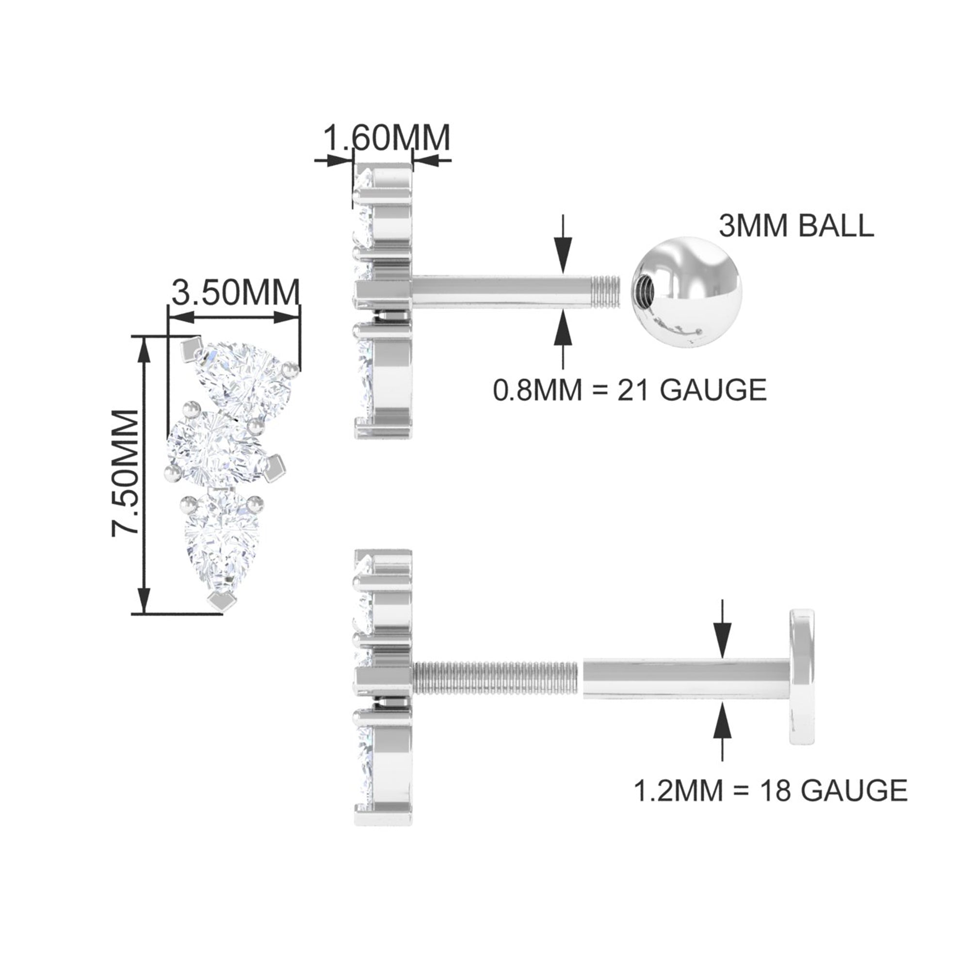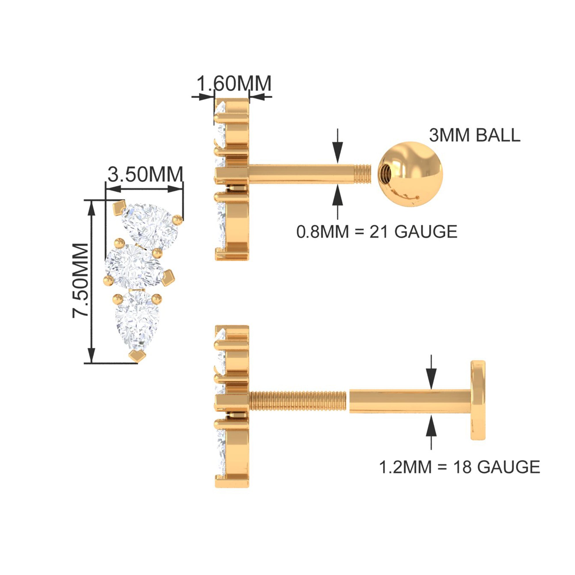 Pear Shape Diamond 3 Stone Earring for Tragus Piercing