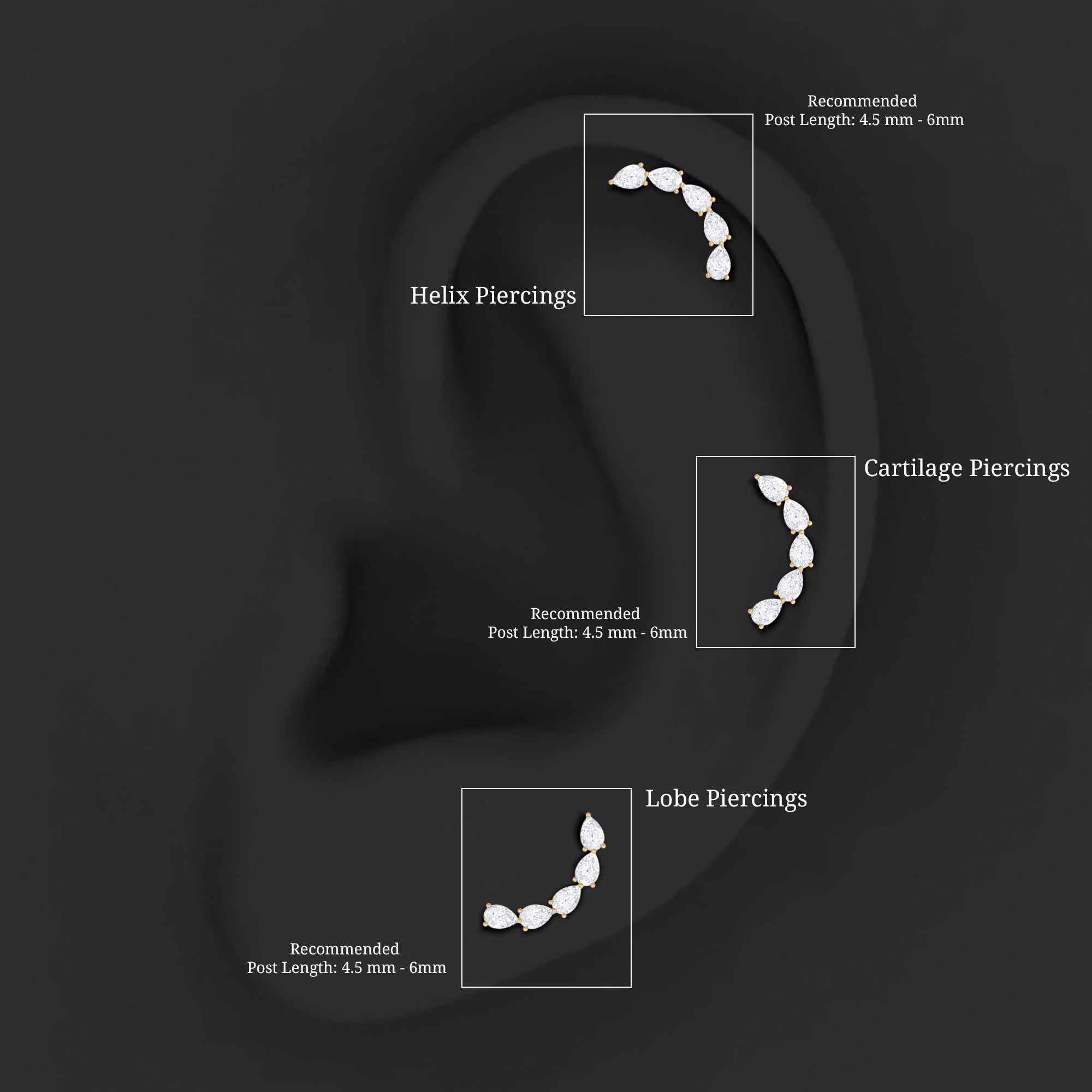 Pear Shape Diamond Crawler Earring for Cartilage Piercing