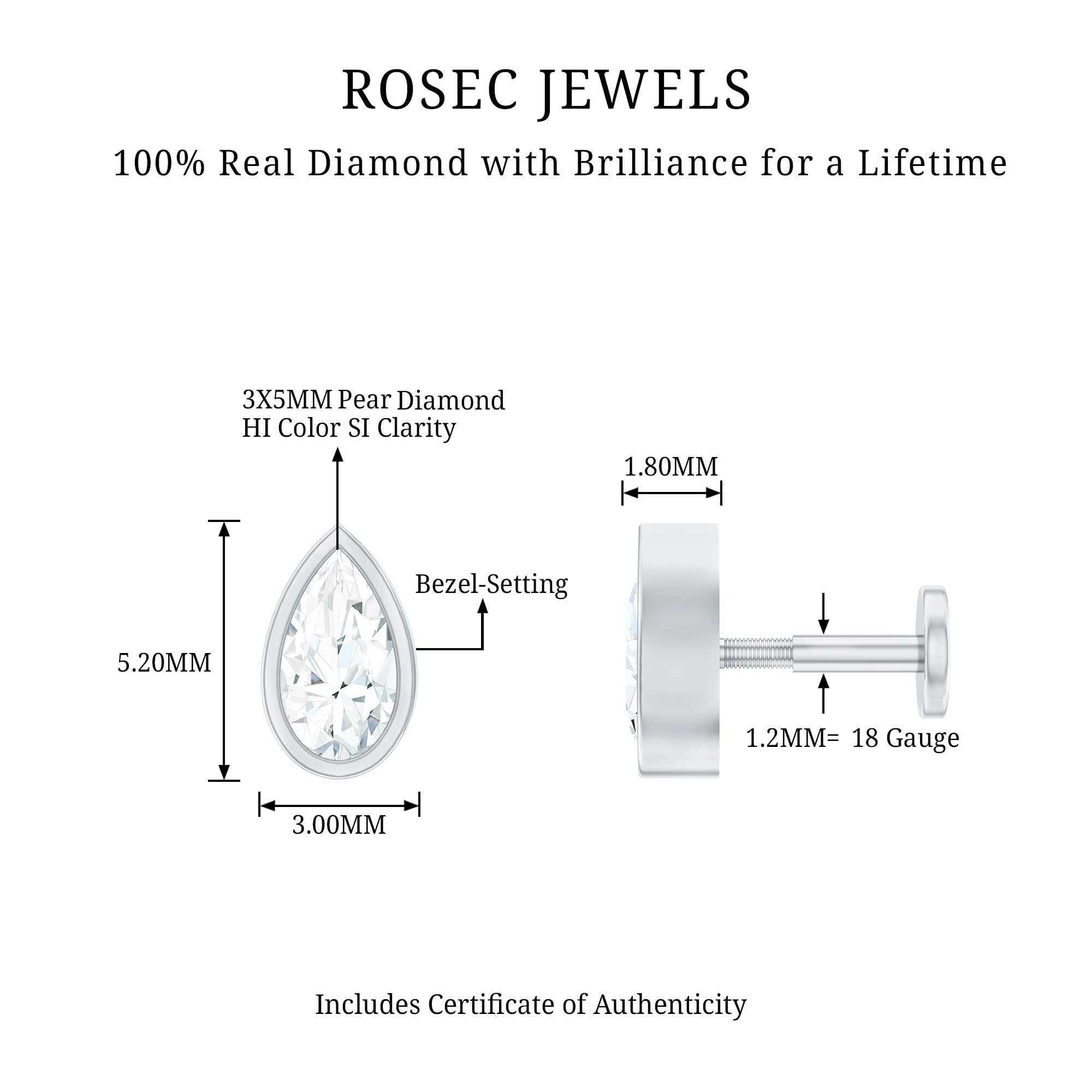 - Simple and elegant, this Solitaire Cartilage Earring you’ll never have to take out. Showcasing a certified Pear Shape Diamond in a secured bezel setting.