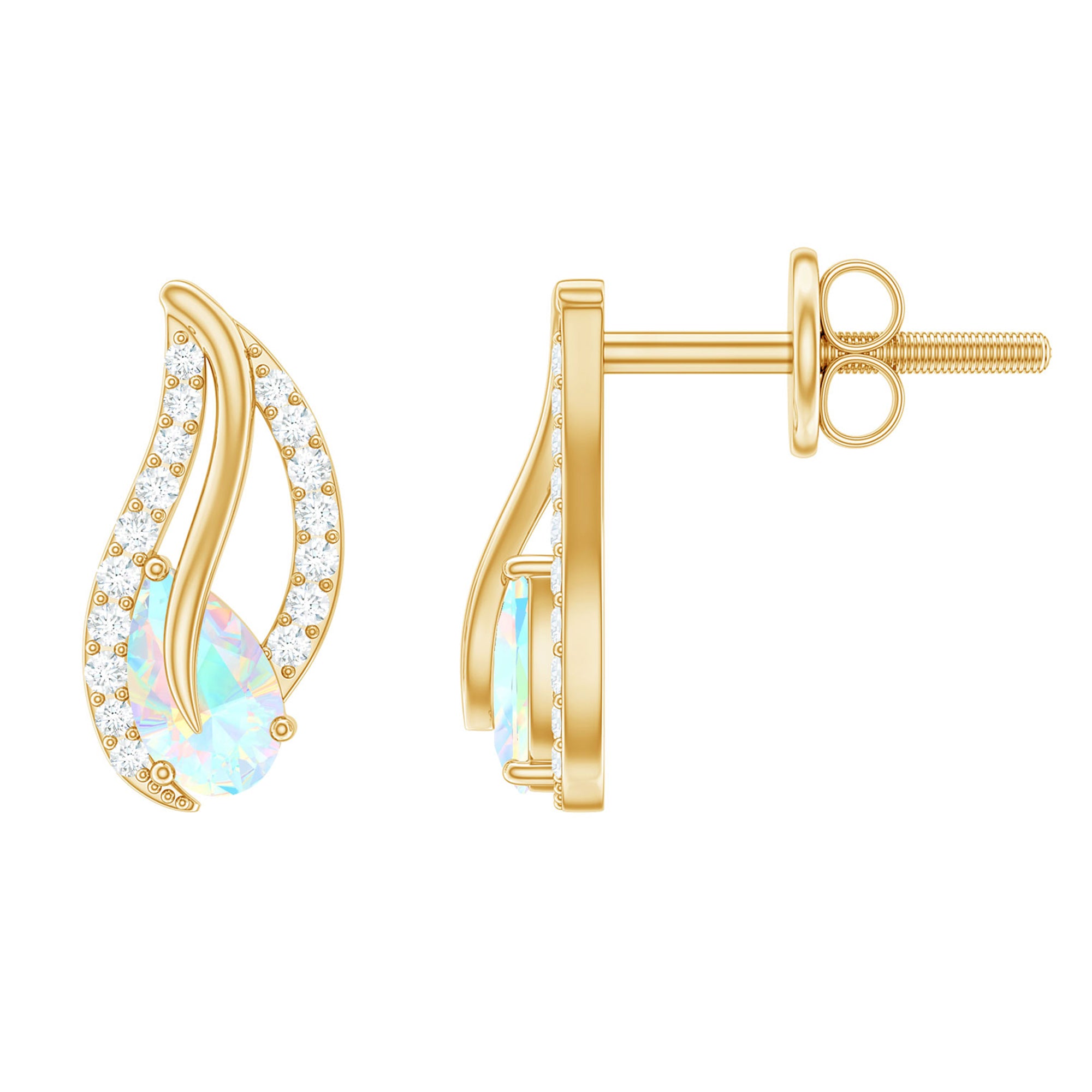 Pear Shape Ethiopian Opal Leaf Stud Earrings with Moissanite