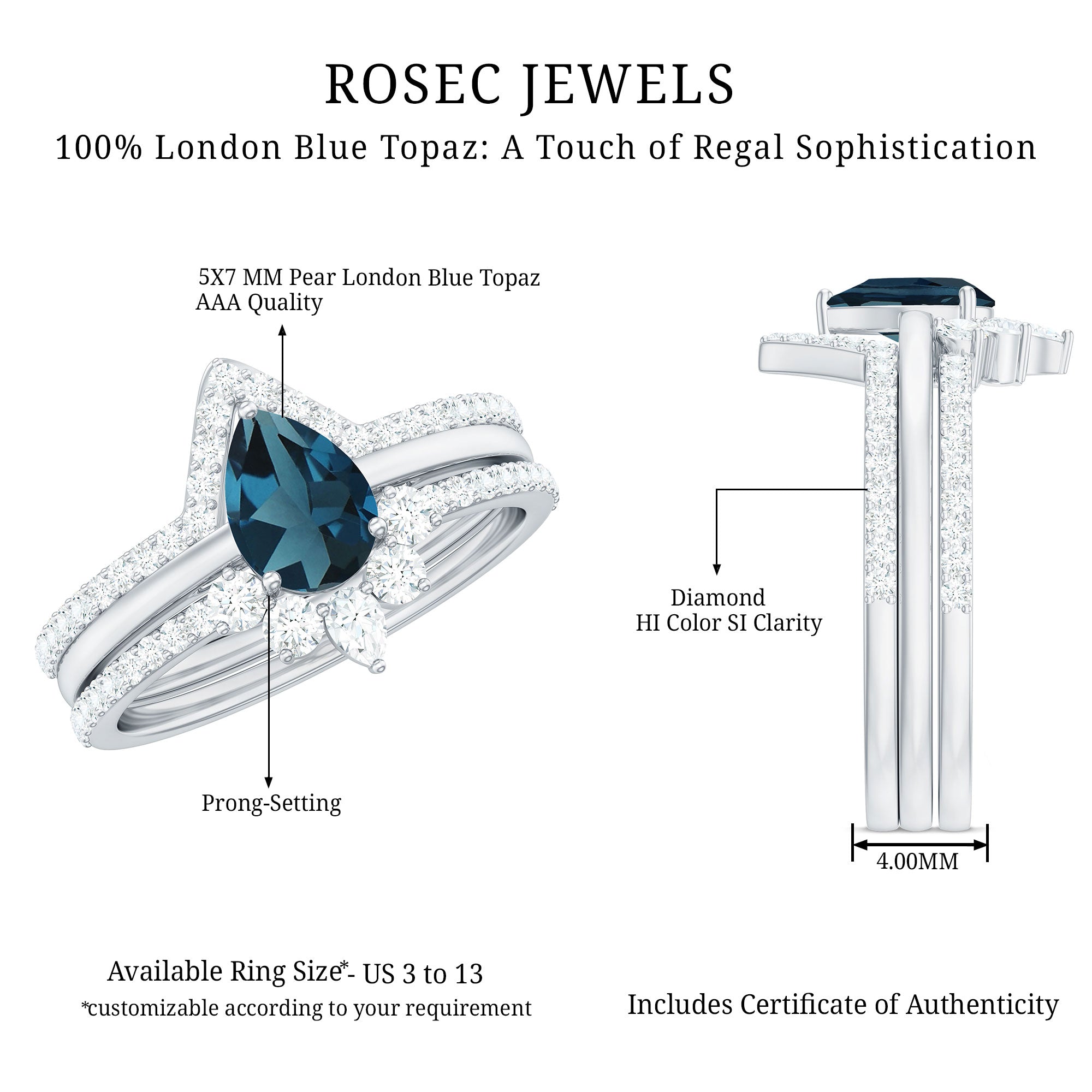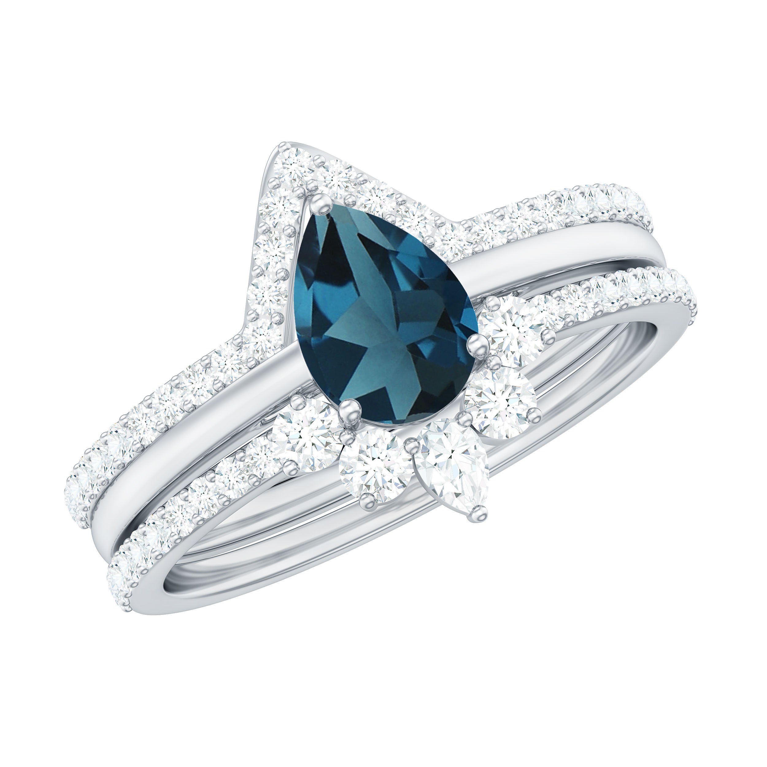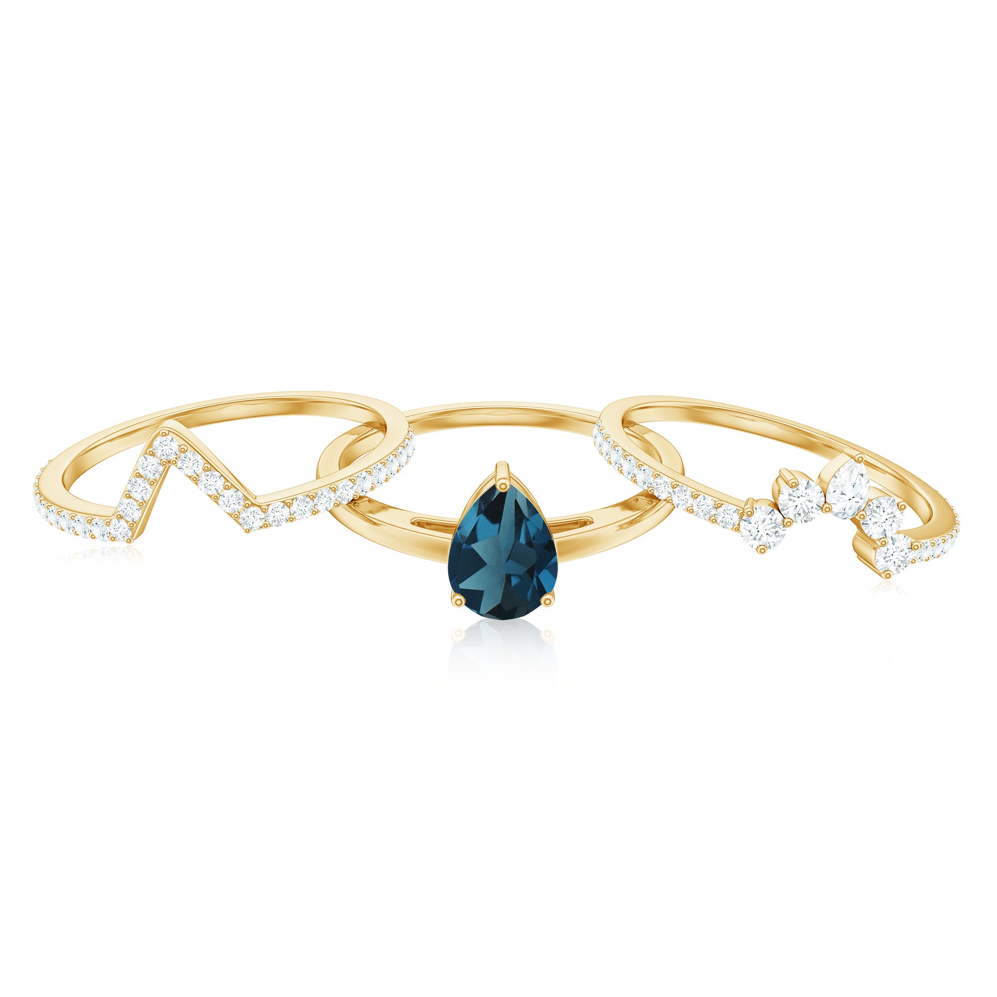 Pear Shape London Blue Topaz and Diamond Trio Ring Set