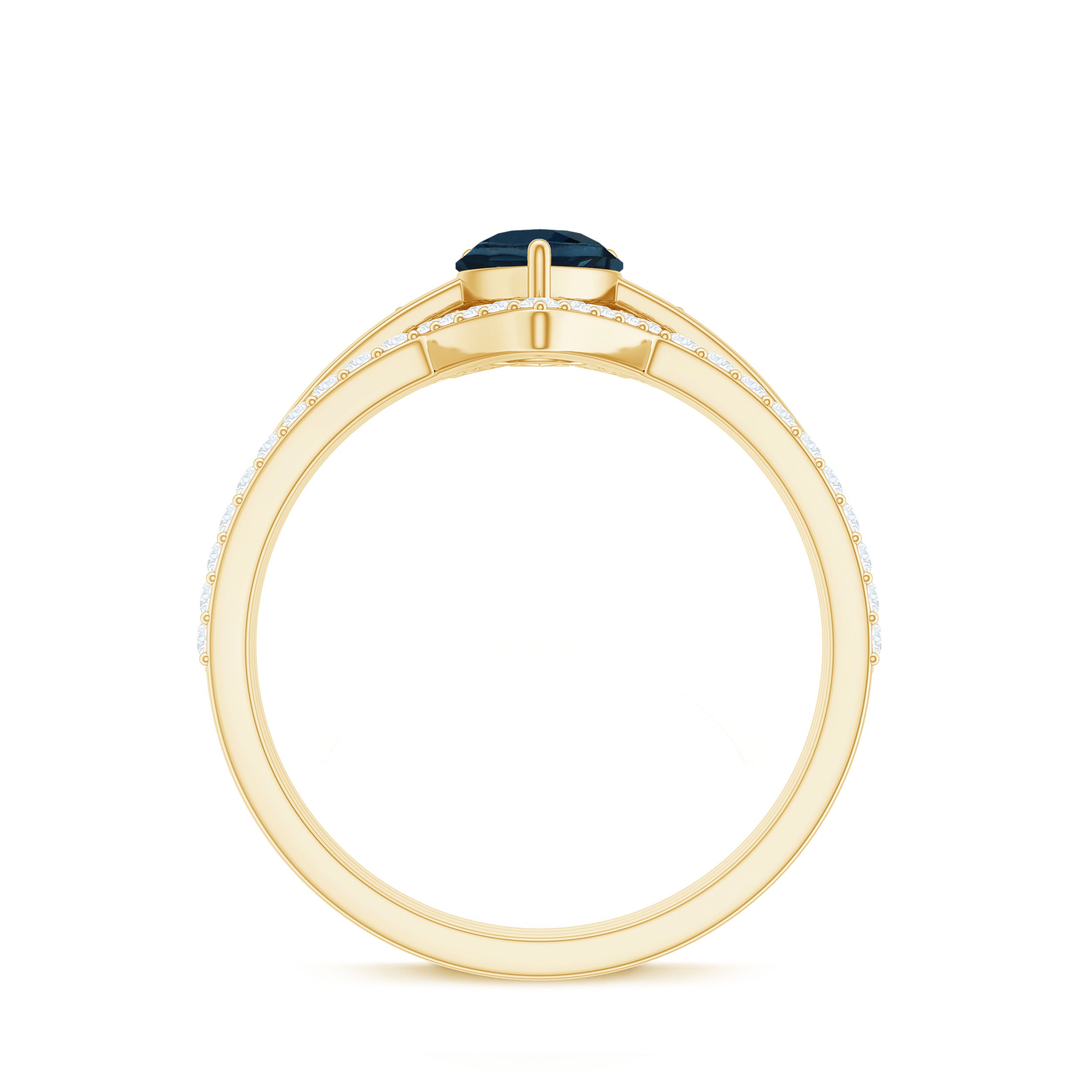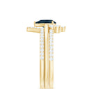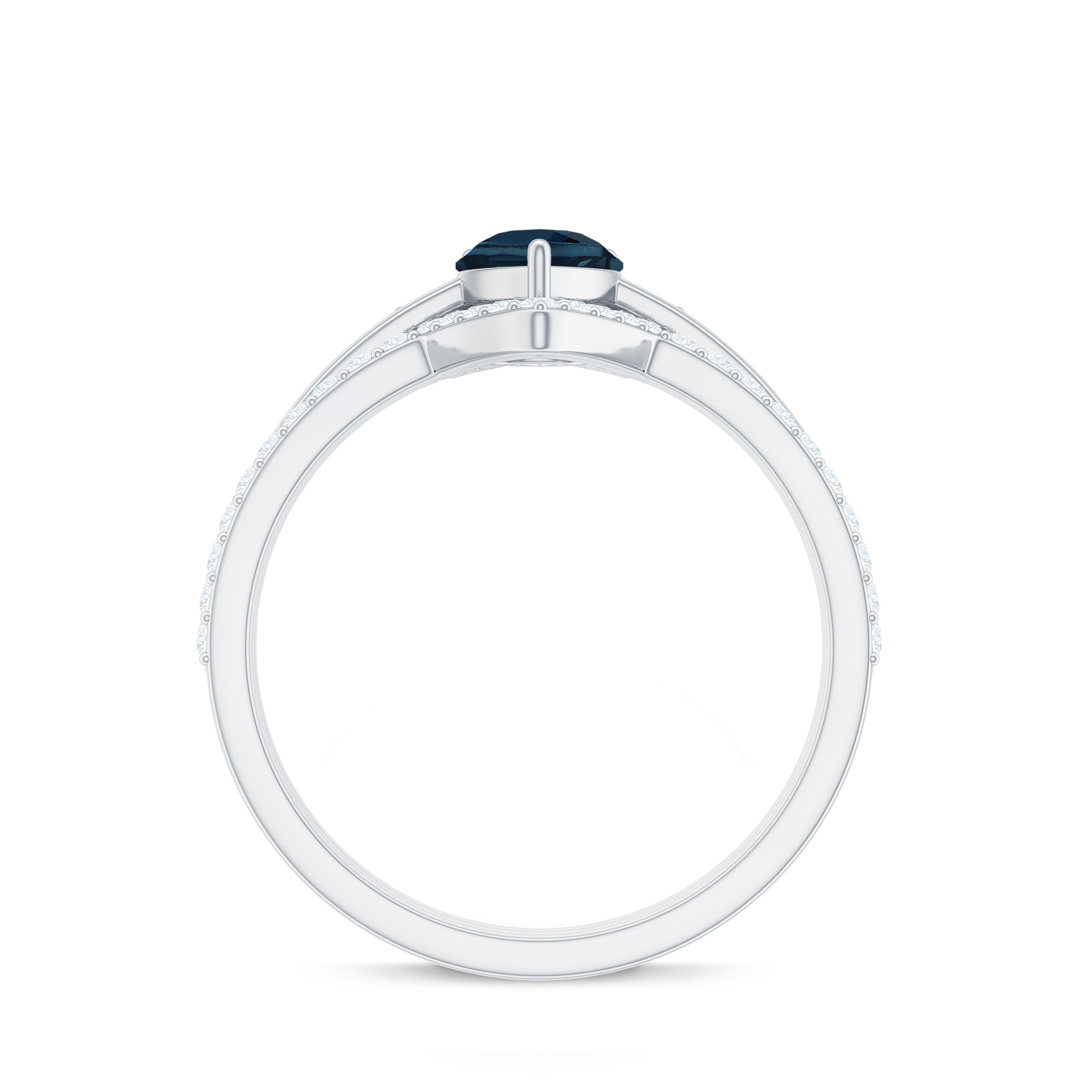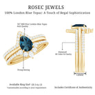 Resembling a relic from bygone days, this London Blue Topaz Ring Set narrates a tale of everlasting love and beauty. It features a 5X7 MM pear shape London Blue Topaz, securely held in a prong setting. What distinguishes this Blue Topaz Wedding Ring Set is the inclusion of two enhancer bands. One of them showcases a combination of round and pear shaped diamonds, exuding a striking sparkle that is both bold and timeless. The other band is adorned with round diamonds, adding a touch of grace. Together, they beautifully frame the central Blue topaz ring, creating a stacked appearance that is both dramatic and romantic. This Trio Bridal Ring Set is designed for brides who appreciate a modern aesthetic while desiring a hint of modernity. Whether you cherish heirloom details or simply seek a ring that makes a statement, this Engagement Ring with Enhancers offers a perfect fusion of classic elegance and contemporary sparkle. A genuine testament to love, style, and enduring beauty.
