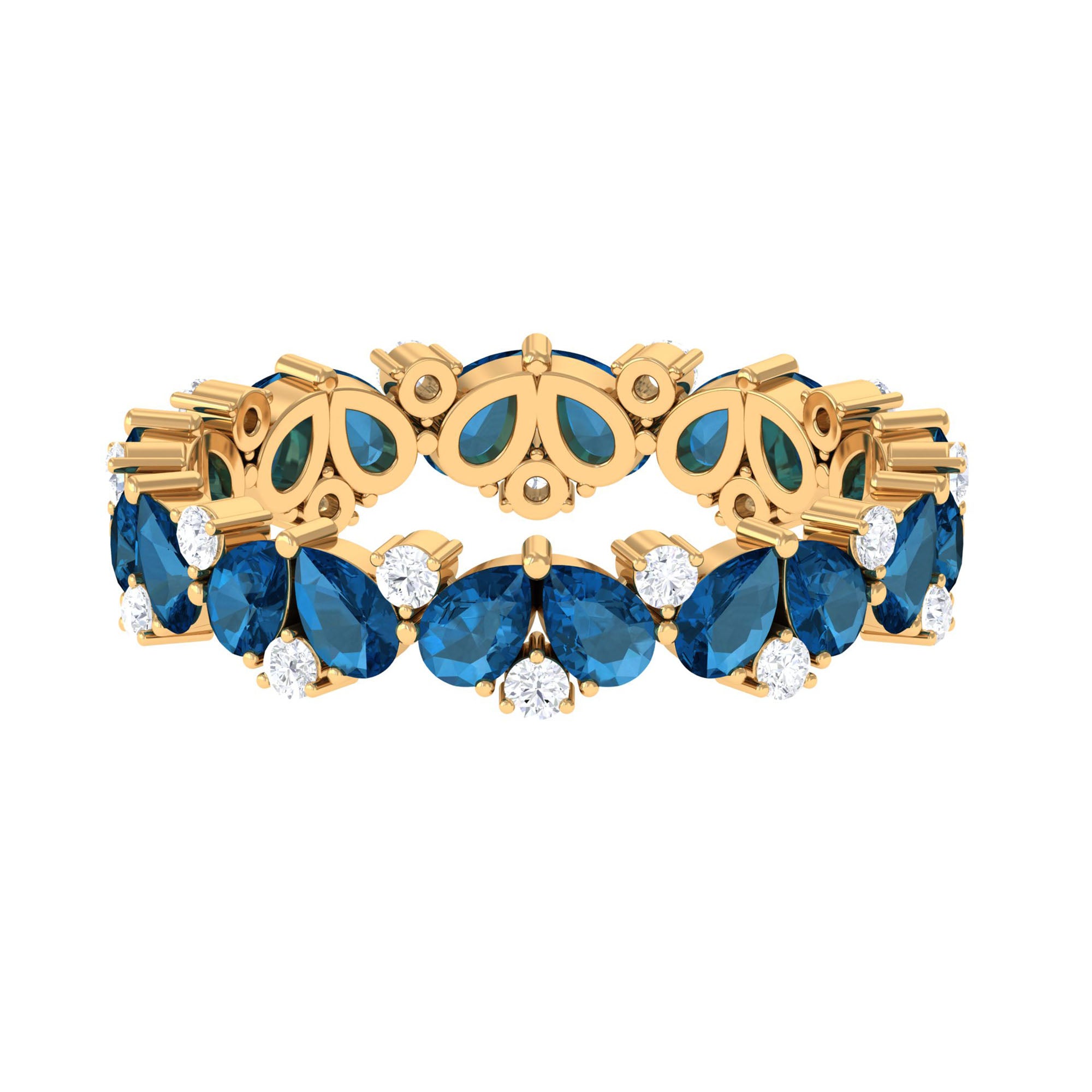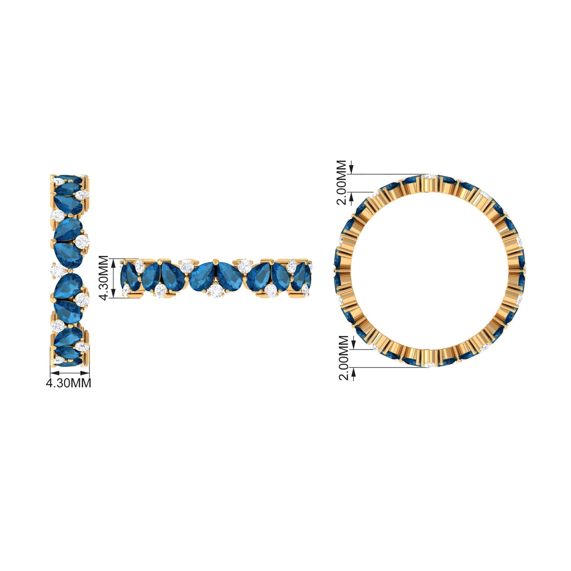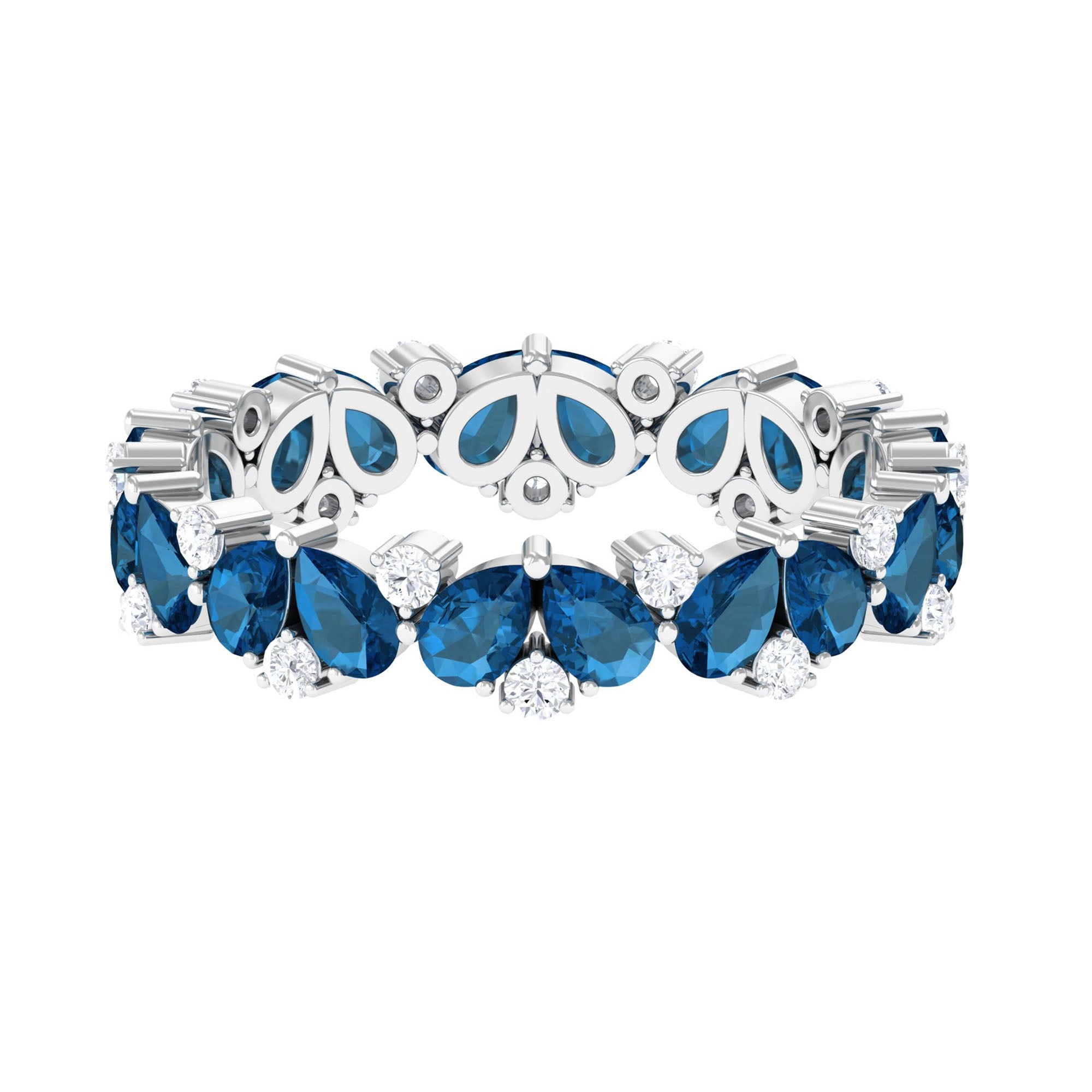 Pear Shape London Blue Topaz and Moissanite Full Eternity Band