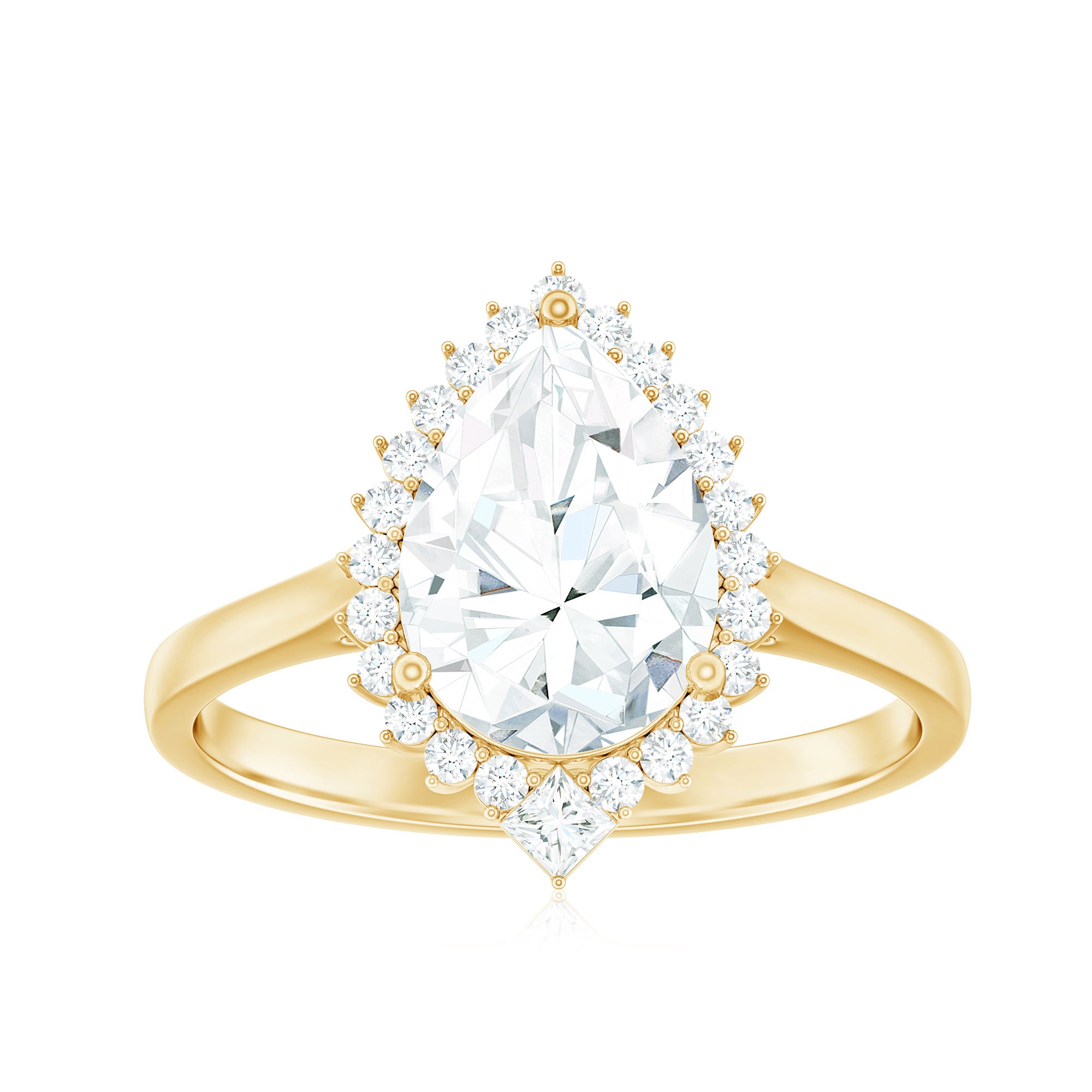 Pear Shape Moissanite Huge Engagement Ring with Halo