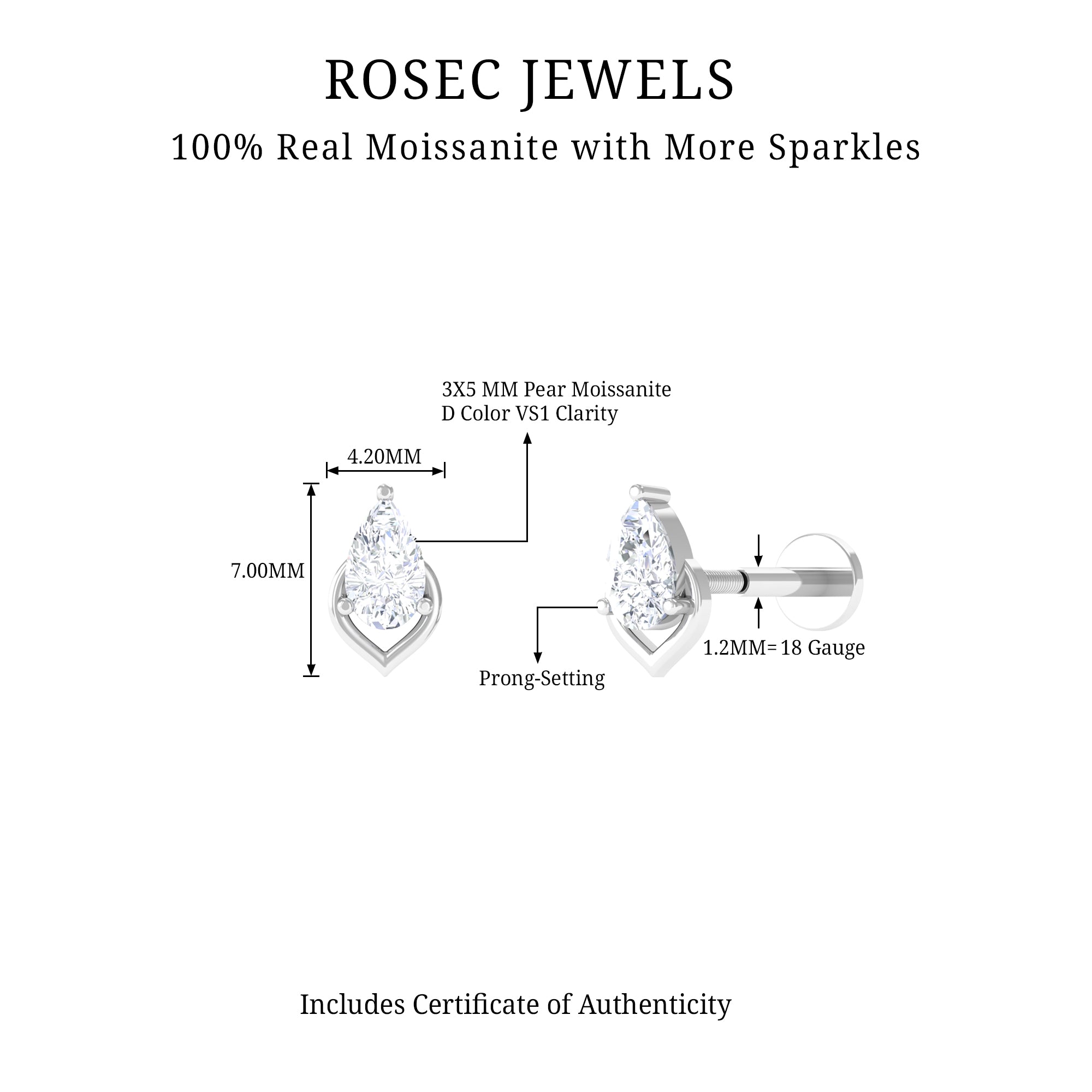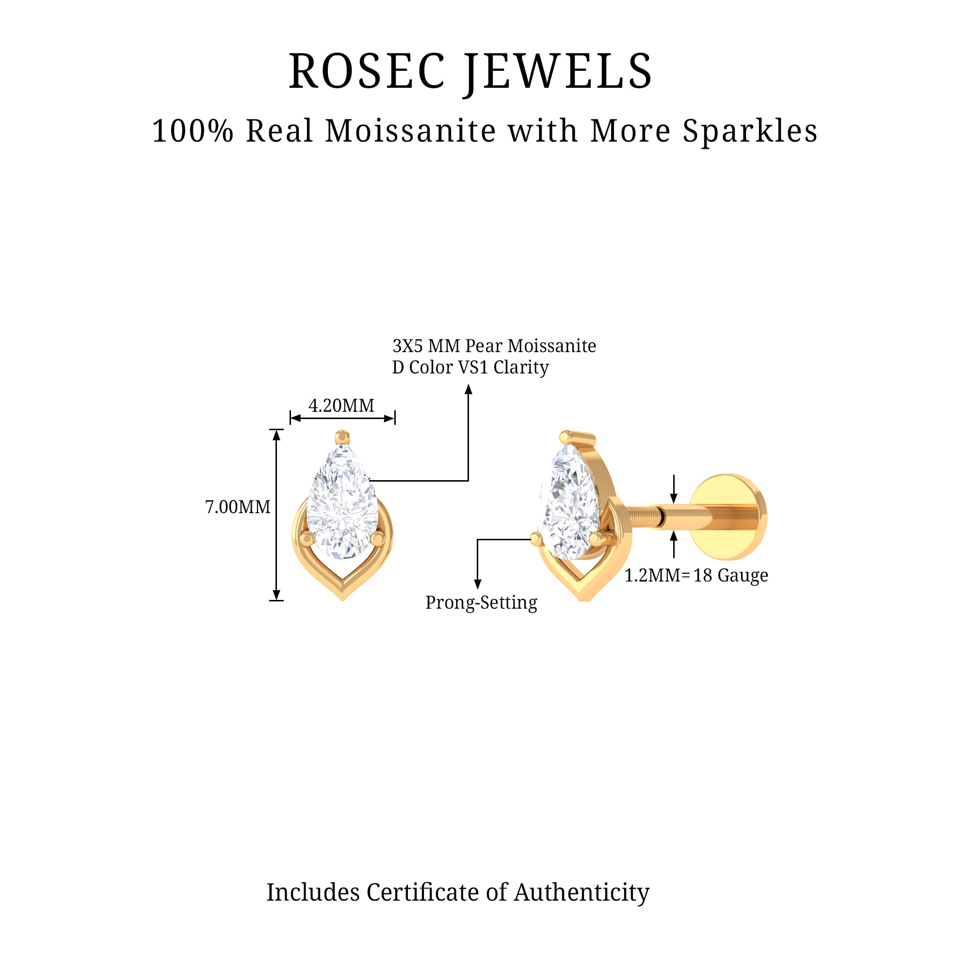 Our Moissanite Solitaire Earring is anything but ordinary. With a shimmering Pear Shape Moissanite elegantly set in 3 prong setting over Solid Metal, this earring is perfect for any occasion. You can style this Moissanite Earring on your Helix, Cartilage, Tragus, or Upper Lobe Piercing.