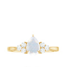 Pear Shape Moonstone Solitaire Ring with Diamond Trio