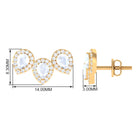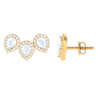 Pear Shape Moonstone Three Stone Bridal Stud Earrings with Diamond Halo