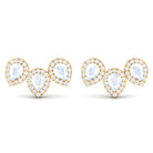 Indulge in timeless elegance with these Moonstone Stud Earrings. They feature three Pear Shape Moonstones set securely in a Prong Setting, each surrounded by Diamond Halo. These Bridal Earrings offer a trendy and stylish choice for various occasions. Seal your promise to your beloved with the beauty of Moonstone and Diamond in these Three Stone Earrings.
